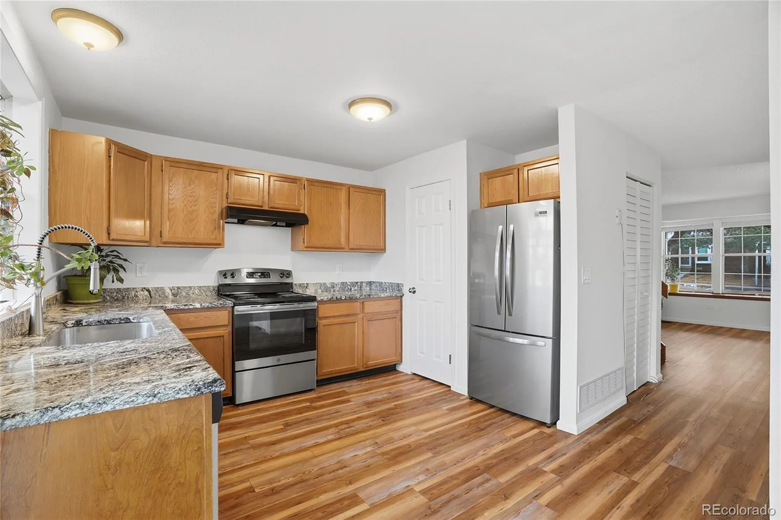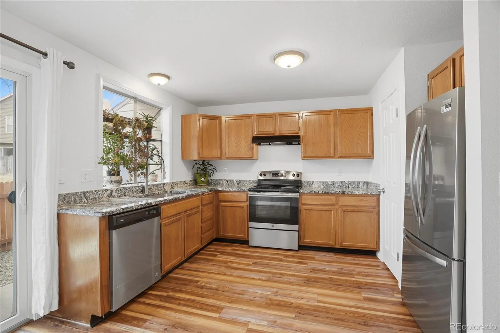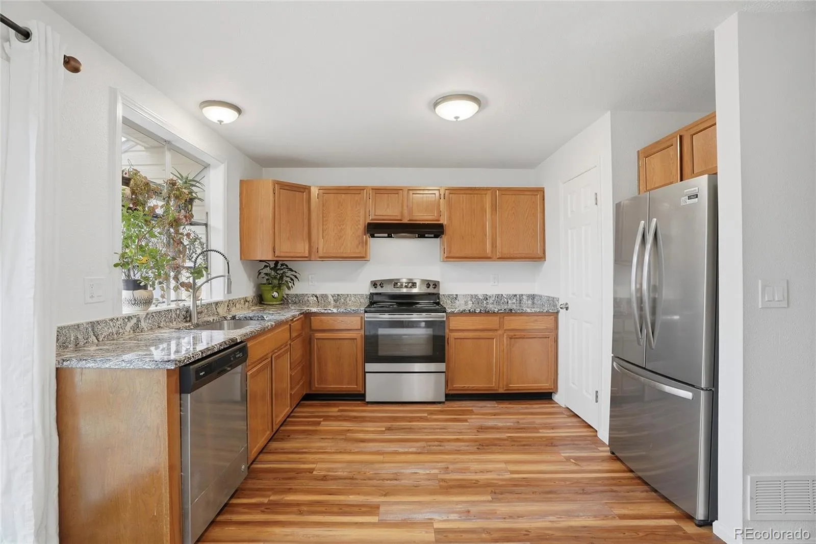 Welcome to this inviting townhouse in the desirable Discovery at Crown Point community, offering 2 bedrooms, 3 bathrooms, and 1,088 square feet of well-designed living space that blends comfort and modern convenience. The main level features a spacious living room with a cozy fireplace, perfect for chilly Colorado evenings, and a chef-inspired kitchen with newer stainless steel appliances, granite countertops, ample cabinetry, a pantry, and a sliding glass door leading to the backyard. The dining area sits just off the kitchen and is filled with natural light, while a convenient half bath and a main-level laundry room with washer and dryer included complete this level. Upstairs, the primary suite is a true retreat with views of the open space, vaulted ceilings, skylights, and an upgraded en-suite bathroom, while the second bedroom also offers vaulted ceilings and easy access to an upgraded full bathroom. Recent upgrades include new carpet, new paint, new flooring, updated showers in both bathrooms, and new bathroom vanities. Step outside to enjoy a private, fenced backyard that backs to open space—ideal for relaxing or entertaining. The home also includes one reserved parking space and additional storage. Residents enjoy access to community amenities including a clubhouse, pool, and volleyball court, along with sidewalks and a prime location close to parks, shopping, and schools, making this townhouse a wonderful place to call home and a great connection to a vibrant neighborhood.