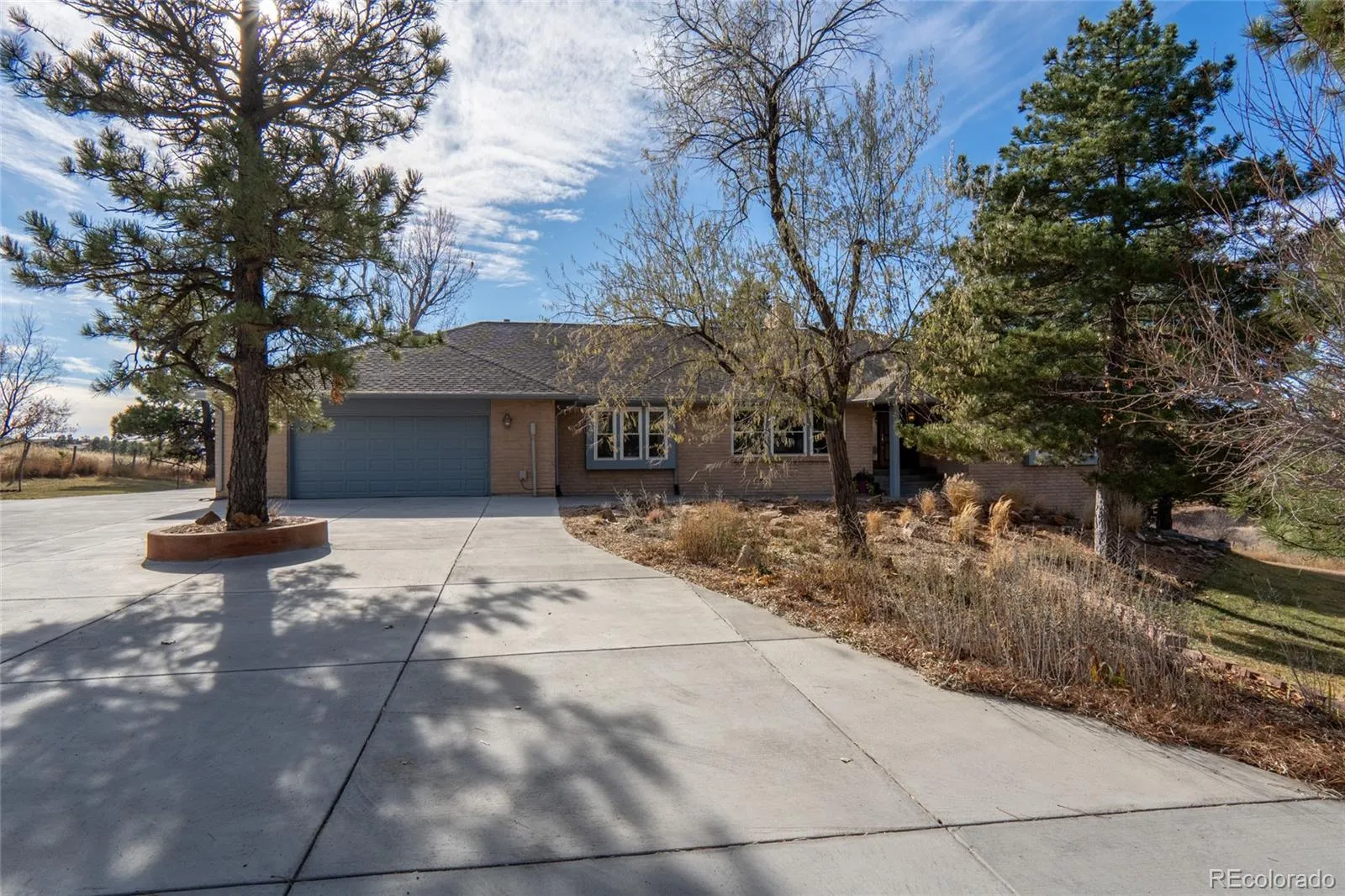 Nestled on almost 5 acres, beautifully landscaped with unobstructed views of Pikes Peak, this gorgeous brick ranch-style home offers the perfect blend of luxury, comfort, and country charm. Surrounded by mature pine trees and open meadowland, the property provides privacy, tranquility, and breathtaking Colorado sunsets—all just minutes from town amenities. Boasting 5108 square feet of living space, this spacious home features five bedrooms and four full baths. The inviting main level showcases high ceilings, gleaming hardwood floors, expansive windows, and a cozy fireplace that anchors the main living area. The open-concept living and dining spaces are ideal for entertaining, while the chef’s kitchen is equipped with premium appliances, abundant custom cabinetry, and generous workspace. The luxurious main-level primary suite offers a double-door entry, private balcony, and stunning mountain views. The spa-inspired five-piece ensuite features a bay window and is filled with natural light, creating a bright and relaxing retreat. A convenient main-floor laundry room adds everyday functionality. The finished walk-out basement offers exceptional versatility, complete with two additional bedrooms, a full bath, a second fireplace, its own laundry room, a separate entrance, and a full kitchen—making it ideal for multi-generational living, extended guests, or rental potential. Step outside to a private covered patio, creating an additional outdoor living space perfect for relaxing or entertaining while enjoying the peaceful surroundings. Outside, the beautifully landscaped acreage features mature trees, vibrant flower gardens, a charming grape-covered gazebo, and a 10-foot privacy fence. Zoned for horses and surrounded by neighboring acreage protected from development, this property preserves its serene rural setting while offering modern comforts and energy efficiency with new solar panels (2025).