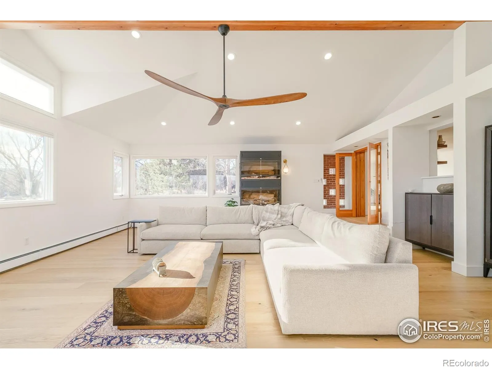 Where Boulder’s iconic outdoor lifestyle meets refined, cozy living, this beautifully remodeled Foothills East residence offers a rare sense of serenity. Set near Boulder Reservoir and miles of trails, the home feels worlds away, yet remains moments from amenities. Bathed in southern light, the open, airy floorplan showcases wide 4-inch white oak floors, vaulted ceilings and expansive windows framing mountain and open-space views. A welcoming dining area with a fireplace and oversized sliding glass doors flows effortlessly to the outdoors. The bright kitchen is thoughtfully designed with a tiled backsplash and a farmhouse sink. Three bedrooms and two beautifully finished baths feature stylish tile and modern finishes, while a functional mudroom includes a stackable washer and dryer. Outdoors, raised garden beds, lavender fields and a spacious patio with an outdoor fireplace invite year-round enjoyment. With horses allowed, this Foothills East home captures the essence of elevated Colorado living.