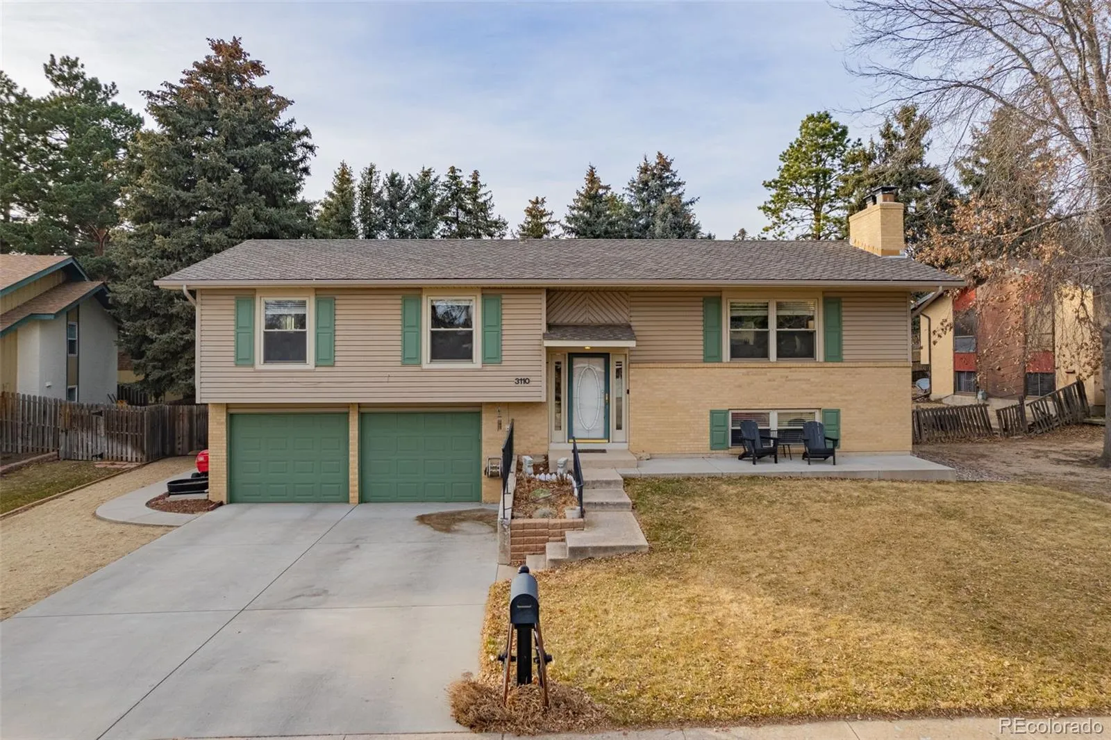 Welcome to 3110 Meander Circle — a beautifully maintained bi-level home offering 4 bedrooms, 3 bathrooms, a 2-car garage, and RV parking in an unbeatable location. Step inside to hardwood floors throughout the main level and fresh interior paint in select areas, giving the home a bright, move-in-ready feel. The spacious layout offers both a welcoming living room fireplace and a second fireplace in the lower-level family/rec room — perfect for cozy Colorado winters. The kitchen and living spaces flow seamlessly for everyday living and entertaining, while the upgraded basement bathroom sink adds a modern touch downstairs. Outside is where this property truly shines. Enjoy a private, fenced backyard with mature trees providing shade all summer long. Relax on the back patio, gather around the fire pit, or watch the kids enjoy the custom tree house — a backyard feature that makes this home extra special. The garage has been enhanced with a built-in workbench and added shelving, offering great functionality and storage. Located near shopping, restaurants, parks, schools, hospitals, and military bases, this home combines convenience with lifestyle. Just steps away, you’ll find access to the Greenway walking path — a beautifully connected trail system that ties the neighborhood to surrounding streets and communities, perfect for evening walks, bike rides, and enjoying Colorado’s outdoors. Experience the charm of mountain living while still being minutes from the heart of the city — and yes, deer sightings in the yard included. Don’t miss the opportunity to own this lovingly cared-for home in an exceptional location.