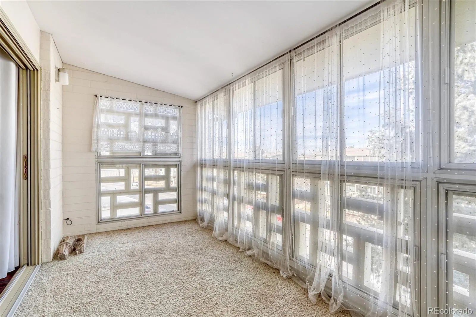 Welcome home to Windsor Gardens, Denver’s premier 55+ active adult community! This spectacular penthouse-level, remodeled 2-bedroom, 1-bath residence offers 945 square feet of beautifully updated living space in a prime location around the corner from the clubhouse — complete with a detached garage * It’s an End Unit (with a wonderful cross breeze) * The redesigned kitchen is truly the heart of the home, featuring custom cabinetry, granite countertops, subway tile backsplash, under-cabinet lighting, and new stainless steel appliances * A bright, upgraded lighting package and stylish mono-tone color scheme complement the durable water-resistant, wood-look vinyl flooring throughout * The bathroom showcases custom tile work, with extensive plumbing upgrades include new shut-off valves and shower valves * Both bedrooms offer ceiling fans, blinds, and window coverings for added comfort * A newer A/C wall unit help keep the home cool during warm summer months * Relax year-round in the north-facing enclosed lanai, complete with a new sliding door, electric fireplace, and heating element — the perfect spot to enjoy your morning coffee * The monthly HOA fee includes property taxes (paid by the Association), heat, water, sewer, grounds maintenance, building insurance including roof, and more. Residents are responsible for electricity, cable, WiFi, and phone. The garage is just out the end of the building in LOT 12, garage is #141 * Life at Windsor Gardens means resort-style amenities including a golf course and pro shop, restaurant, indoor and outdoor pools, fitness center, auditorium, 24/7 community patrol, community center, billiards parlor, library, art studios, meeting rooms, woodworking shop, and countless social activities * Conveniently located near Lowry, grocery stores, restaurants, retail shopping and Cherry Creek Mall * This vibrant community offers an exceptional opportunity to enjoy low-maintenance living in one of Denver’s most sought-after 55+ neighborhoods.