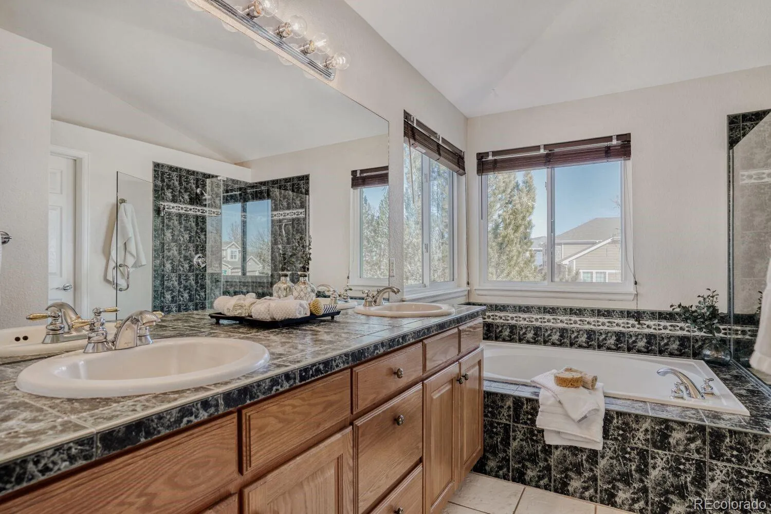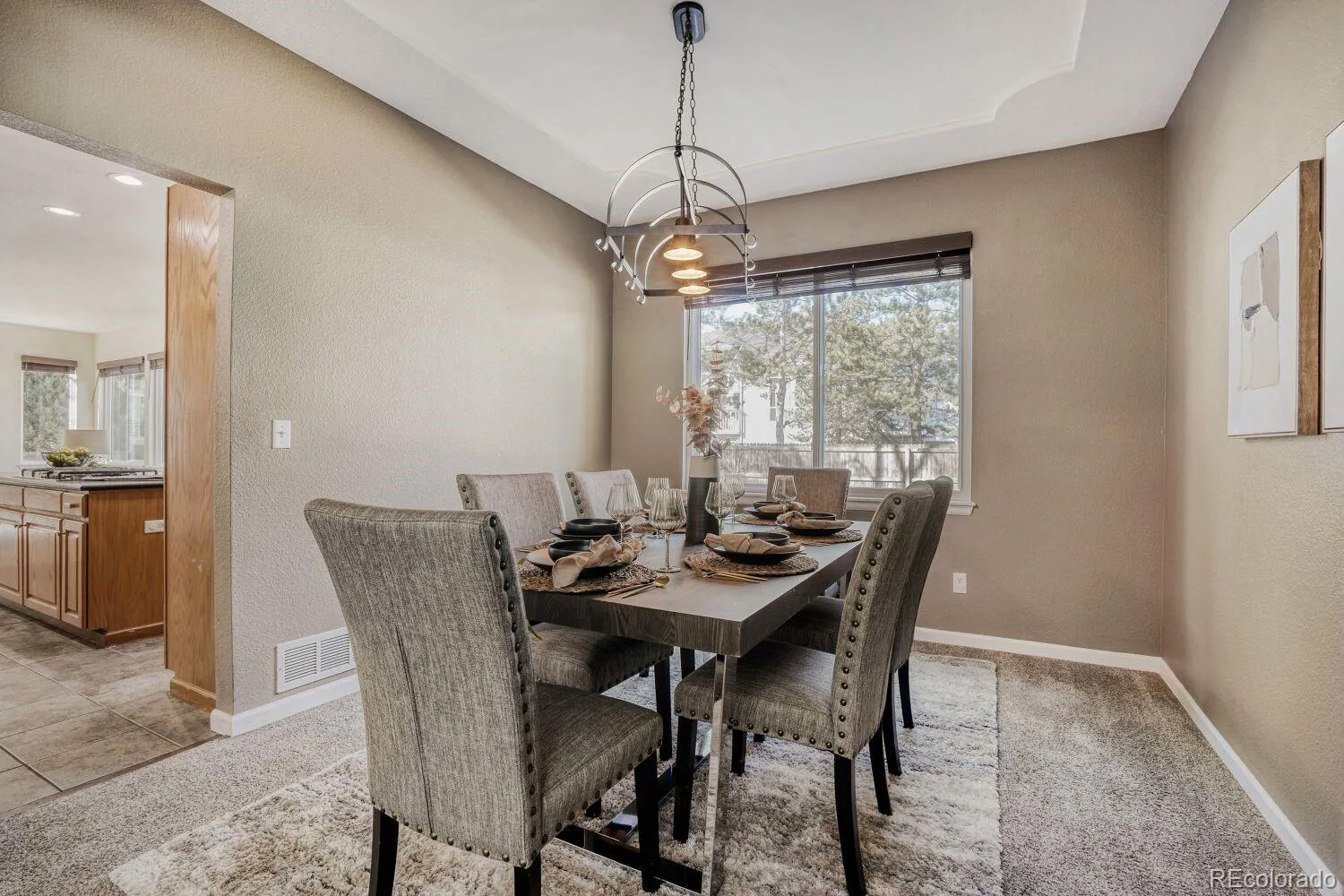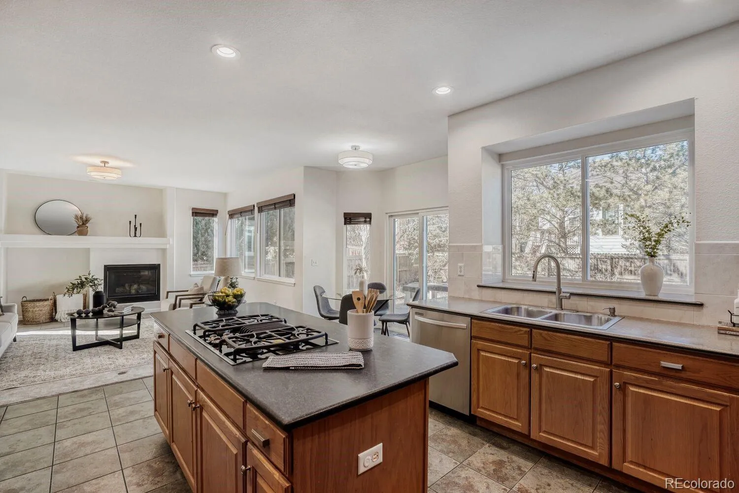 Beautifully updated & filled with natural light, this 5-bedroom, 4-bath home is nestled in the highly sought-after South Pointe neighborhood. Thoughtfully designed for both elegant entertaining & comfortable family living, the open floor plan offers a spacious main-level study & a custom 3/4 bath-perfect for guests, work-from-home, or multigenerational needs.The updated kitchen features newer appliances & flows seamlessly to a large, newer deck, creating an ideal setting for outdoor dining, gatherings, & playtime in the expansive, fenced backyard.A stunning spiral staircase with iron balusters leads to the private primary retreat, complete with a see-through fireplace & inviting sitting area-an ideal space to unwind at the end of the day. Three additional generously sized bedrooms complete the upper level, offering room for family, guests, or creative spaces.The finished basement provides exceptional versatility with a bedroom, 3/4 bath, wet bar, & large recreation room-perfect for movie nights, game days, or hosting overnight guests while maintaining privacy & separation of space.Ideally located with easy access to Denver International Airport, downtown Denver, and Boulder, and just moments from shopping, top-rated schools, parks, a community pool, and miles of scenic open-space trails. Recent updates include a newer deck, appliances, roof, windows, and HVAC system-offering peace of mind and modern comfort.