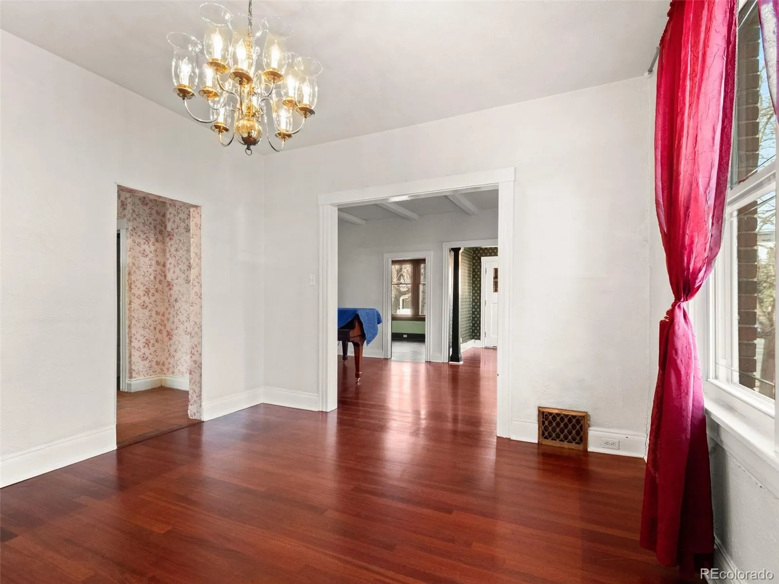 Historic half duplex with stunning original details in Capitol Hill with NO HOA, just a few blocks from Cheesman Park and close to museums, restaurants, and shopping. This home lives like a standalone residence, beginning with a welcoming front porch that leads into a generous living room, anchored by an incredible original fireplace with a tile surround, a wood mantel, and a built-in mirror. Lots of newer windows on the north side add charm while filling the space with natural light. The living and dining rooms connect through a beautifully framed opening that highlights gorgeous built-in storage. The kitchen is bright, with clean countertops, Stainless Steel Appliances, and ample storage. One bedroom sits just off the living room with a large window and original hardwood floors, while the primary bedroom is privately located toward the back of the home. The Primary was originally two bedrooms that could be easily converted back. The basement offers excellent storage and bonus space ideal for a bedroom, home gym or office. Enjoy a private backyard and patio perfect for grilling or relaxing. The backyard backs to the alley, offering potential for off-street parking or a future garage. Full of natural light and original character, this beautifully updated 2-bedroom (potentially 3), 1-bath home blends historic charm with modern convenience in one of Denver’s most desirable neighborhoods. Located minutes from Cheesman Park, the Capitol, great restaurants, and downtown Denver—this is a rare opportunity you won’t want to miss.