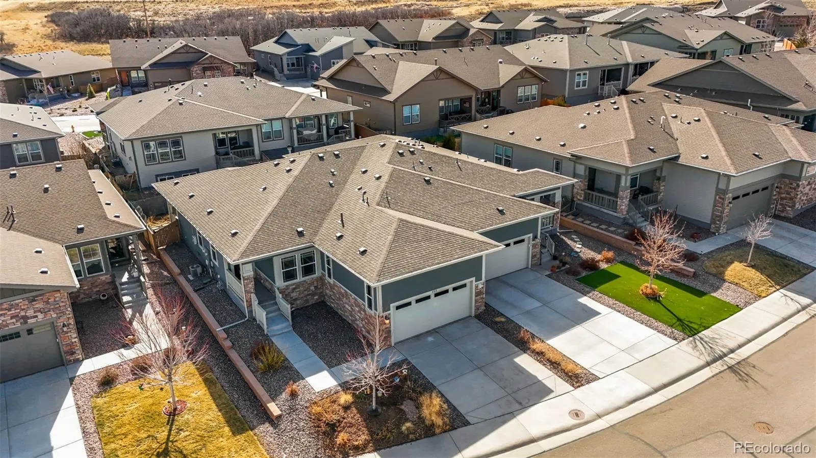 Experience effortless Colorado living in this stunning, ranch-style paired-patio home. Welcome to the beautifully designed, low-maintenance home where modern elegance meets everyday comfort. This thoughtfully crafted ranch floorplan offers true main-level living with an open-concept layout filled with abundant natural light. The spacious kitchen is the heart of the home, featuring Corian countertops, a large center island perfect for gathering, solid wood cabinetry, and modern light fixtures that elevate the space. Whether entertaining or enjoying a quiet evening in, this layout flows seamlessly for easy living. Retreat to the generous primary suite—your private haven—complete with a spa-inspired walk-in shower showcasing double vanities, and an expansive walk-in closet. Additional highlights include: A large crawl space for abundant storage–Xeriscaped front yard for easy upkeep–Spacious covered back patio ideal for morning coffee or evening gatherings–Snow removal included to your front door–Solar panels included—helping reduce monthly electric costs! Located in the highly sought-after Terrain community, residents enjoy access to scenic parks, winding trails, sparkling pools, and a community clubhouse—all designed to enhance your Colorado lifestyle. Low maintenance. Energy efficient. Community focused. This is the lifestyle you’ve been waiting for. Schedule your private showing today!