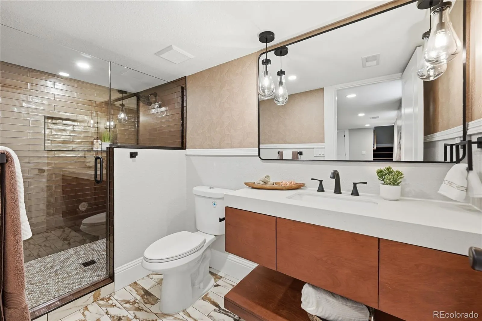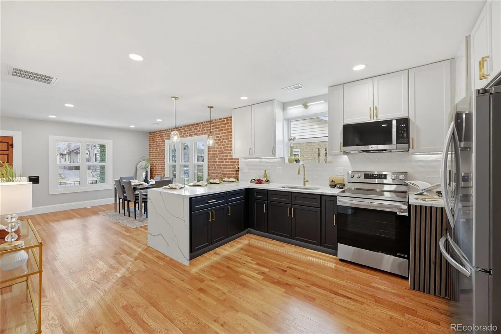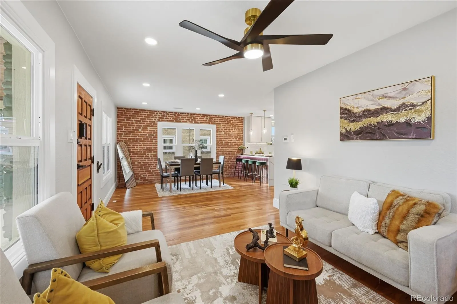 Welcome Home! Step into a complete remodeled cozy yet modern bungalow home. Upon entering, you will find a bright and inviting main floor with two bedrooms, a full bathroom, and a cozy family room with a fireplace. The formal dining area features exposed brick walls, while the spectacular kitchen boasts elegant two-tone cabinetry, under-cabinet lighting, and a breakfast bar. Sleek quartz countertops with an exquisite waterfall that cascades to the floor add to the kitchen’s charm. The home also features refinished original 100-year hardwood floors. Downstairs, you will discover a spacious living room, a great primary suite with a walk-in closet, and a large full bathroom with a walk-in shower. Additionally, the home is located two blocks from City Park and offers beautiful downtown Denver views from its own backyard. The property has undergone several renovations, including a new roof, gutters, furnace, air conditioning, sewer line, tankless water heater, and much more. Come see it today!!!