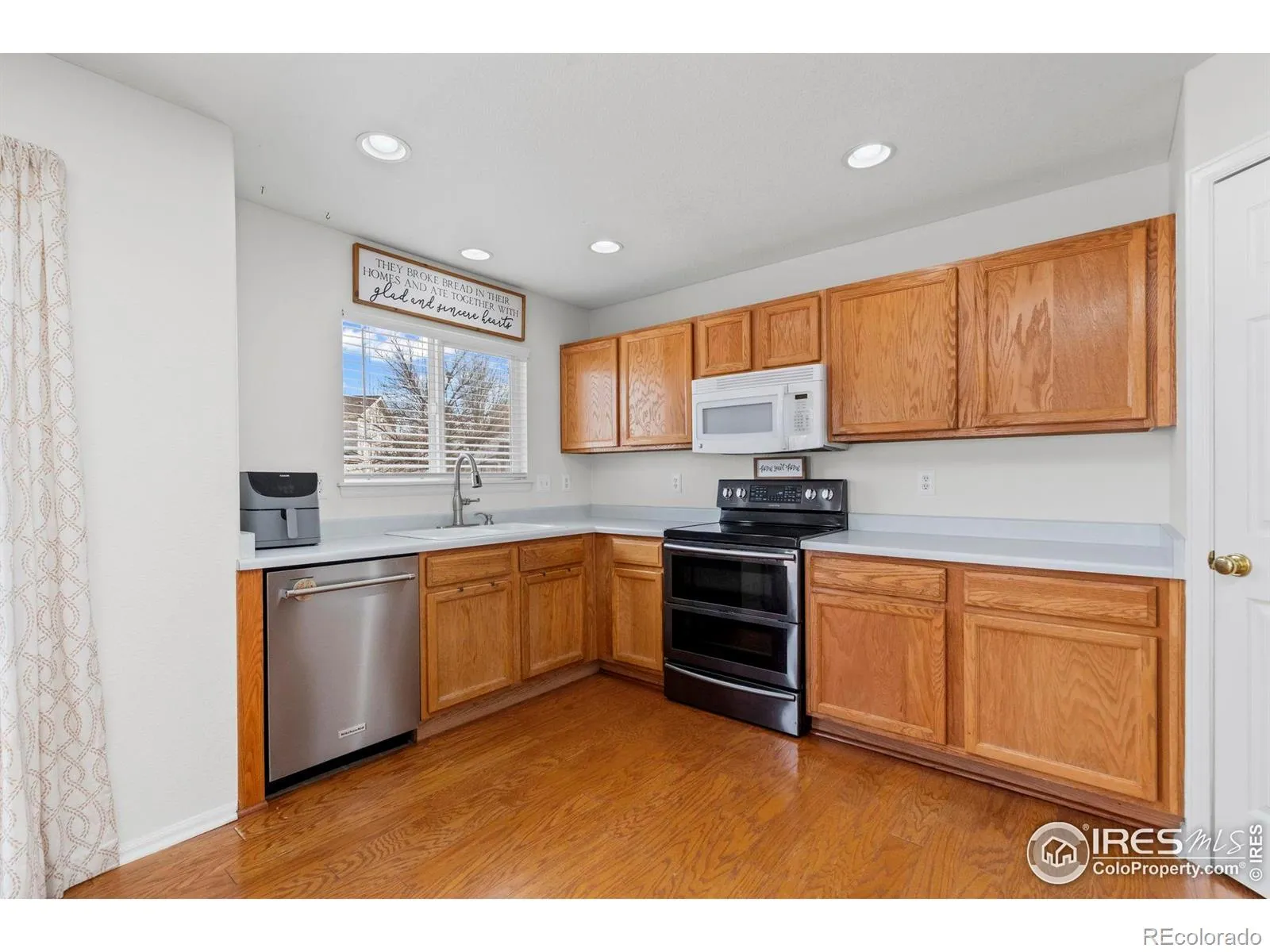 Welcome to this spacious 5-bedroom, 4-bath home nestled on a corner lot in desirable northwest Loveland. With a fully fenced yard and multiple living areas, this home offers comfort, functionality, and room to grow. The main level features formal living and dining rooms, perfect for entertaining, along with a generous family room centered around a cozy gas fireplace. The kitchen includes hardwood floors, stainless steel appliances, and convenient access to the backyard-ideal for indoor-outdoor living. Upstairs, the primary suite offers a peaceful retreat with an en suite bath. Three additional bedrooms and a large loft provide plenty of space for family, guests, or a home office. The finished basement expands your living options with a spacious rec room, three-quarter bath, and a private fifth bedroom-perfect for visitors or multi-generational living. With three distinct living areas-the living room, family room, and upstairs loft-this home offers flexibility for everyday living and entertaining. Conveniently located near parks, schools, and all that Loveland has to offer, this home combines space, style, and a sought-after location. NEW roof being installed 2/25/26