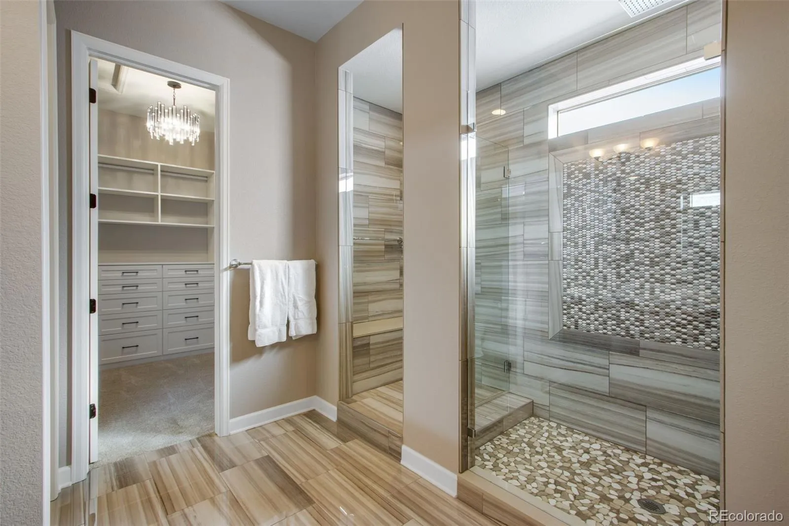 The primary suite is a true retreat, highlighted by the bay window that fills the space with natural light. A spa-like primary bathroom offers dual sinks and a gorgeous oversized shower with rainfall showerhead, along with a walk-in closet featuring custom built-in storage. The main level still has room for two generously sized secondary bedrooms with large closets, plus a dedicated office space perfect for working from home.