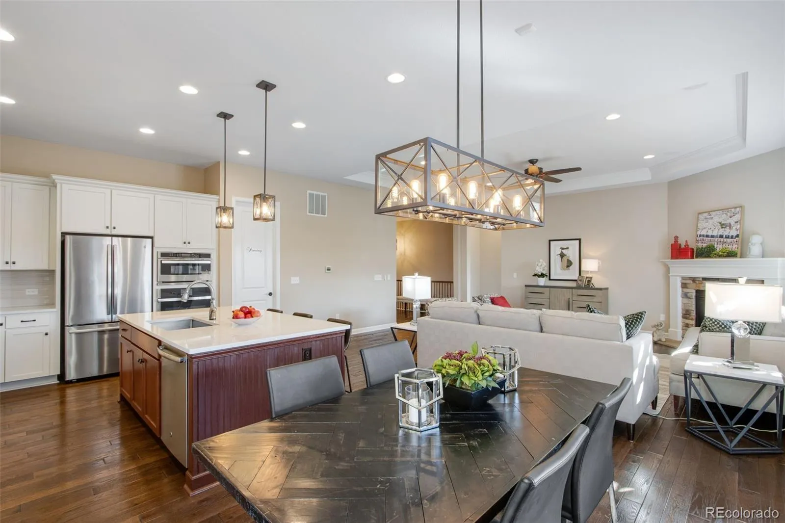Step outside to enjoy low-maintenance Colorado living in the private backyard, featuring a custom pergola, stamped concrete patio, decorative stone wall, and artificial turf for year-round beauty without the upkeep. Completing the home is a spacious 3-car garage with built-in storage and an epoxy-coated floor for easy cleanup. Located in Colliers Hill, where residents enjoy access to 2 neighborhood pools, numerous parks and over 15 miles of scenic trails with easy access to the charm, dining, and events of Old Town Erie.