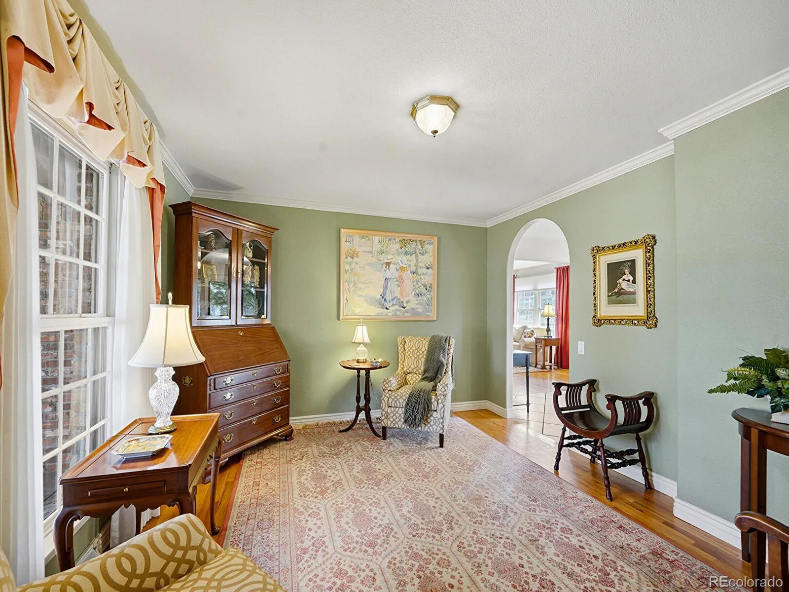 Entertainer’s dream home in Willow Creek backing to HOA green space, featuring a Chef’s kitchen, plentiful living space, and a backyard designed for hosting! Set on a quiet, tree-lined lot, this 4-bed, 3-bath single-owner home has been meticulously maintained, with upgrades and custom touches throughout. A classic Colonial exterior and new faux slate roof create a polished first impression, leading into warm oak hardwood floors and arched doorways that set a refined tone. The formal living room flows into a vaulted family room designed for lively gatherings or cozy movie nights, anchored by a granite-surround gas fireplace. Casual dining connects to the kitchen with glass sliders that open to the covered patio for easy indoor–outdoor hosting. The chef’s kitchen is made for easy weeknight dinners or feeding a crowd with an oversized island, cherry cabinetry, granite countertops, and high-end appliances. The adjacent butler’s pantry connects to the formal dining room, where a five-panel bay window elevates every occasion, with a convenient nearby powder bath. Upstairs, the airy primary suite offers a walk-in closet and spacious en suite with dual sinks, generous storage, and an oversized walk-in shower. Three additional bedrooms with custom closets share a full hall bath. The finished basement extends living space with a large rec room and wet bar—ideal for game nights, movie marathons, or hobbies. Laundry and unfinished space (stubbed for future expansion) provide flexibility, plus a large crawl space for storage. A covered masonry patio with a built-in firepit anchors a backyard designed for gathering, gardening, and play, while a private gate opens directly to park space. Residents of Willow Creek enjoy pools, clubhouses, trails, and sport courts, all just minutes from the Denver Tech Center, South Suburban Golf Course, and Park Meadows. Classic, curated, and exceptionally well cared for, this is Willow Creek living at its finest!