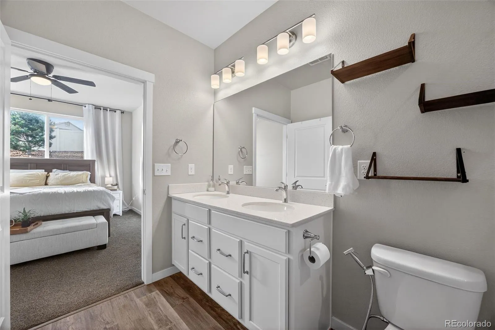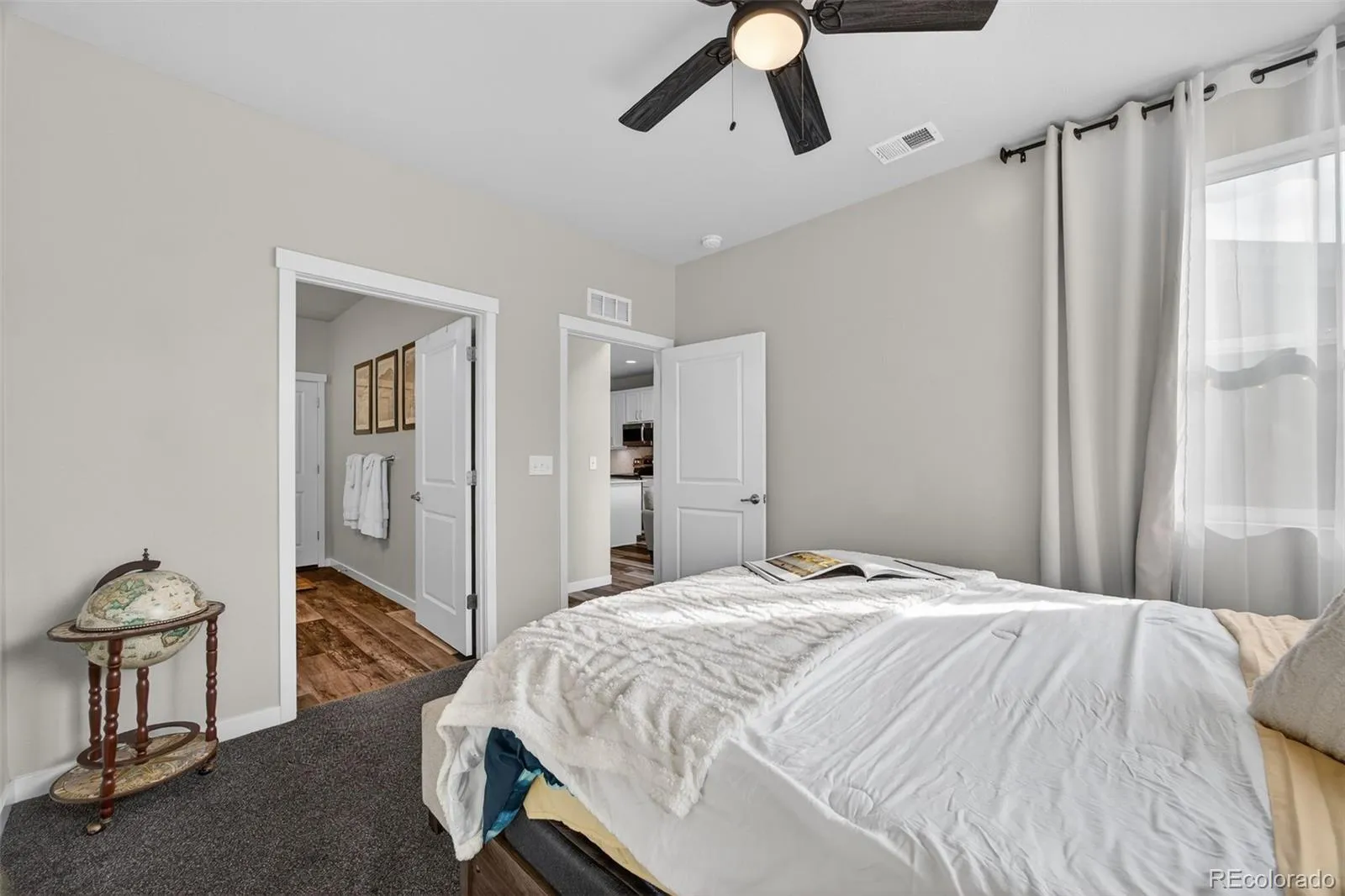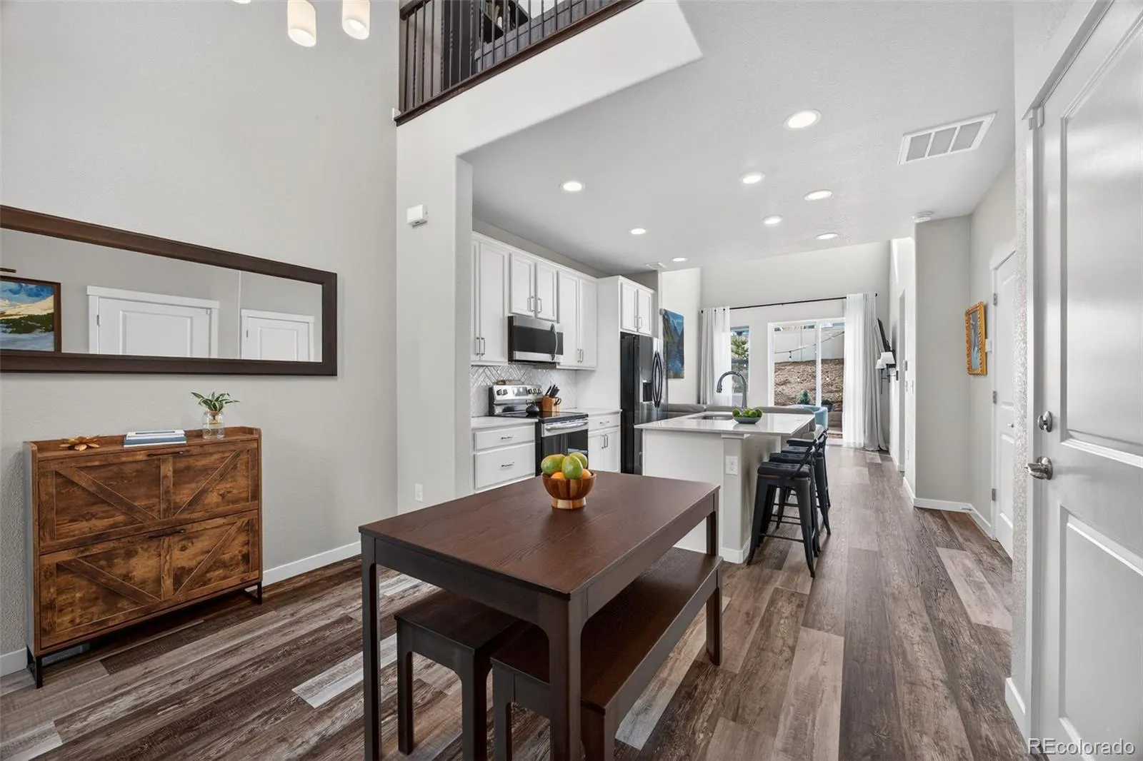 Move-in-ready two-story townhome in the River Valley Village community of Thornton! Enjoy a low-maintenance lifestyle with modern finishes and smart features. This thoughtfully designed home features an open-concept main level with a convenient main level primary suite, tall ceilings, quartz countertops and stainless steel appliances. The spacious primary suite includes a large ensuite bath and walk-in closet, providing comfortable everyday living.