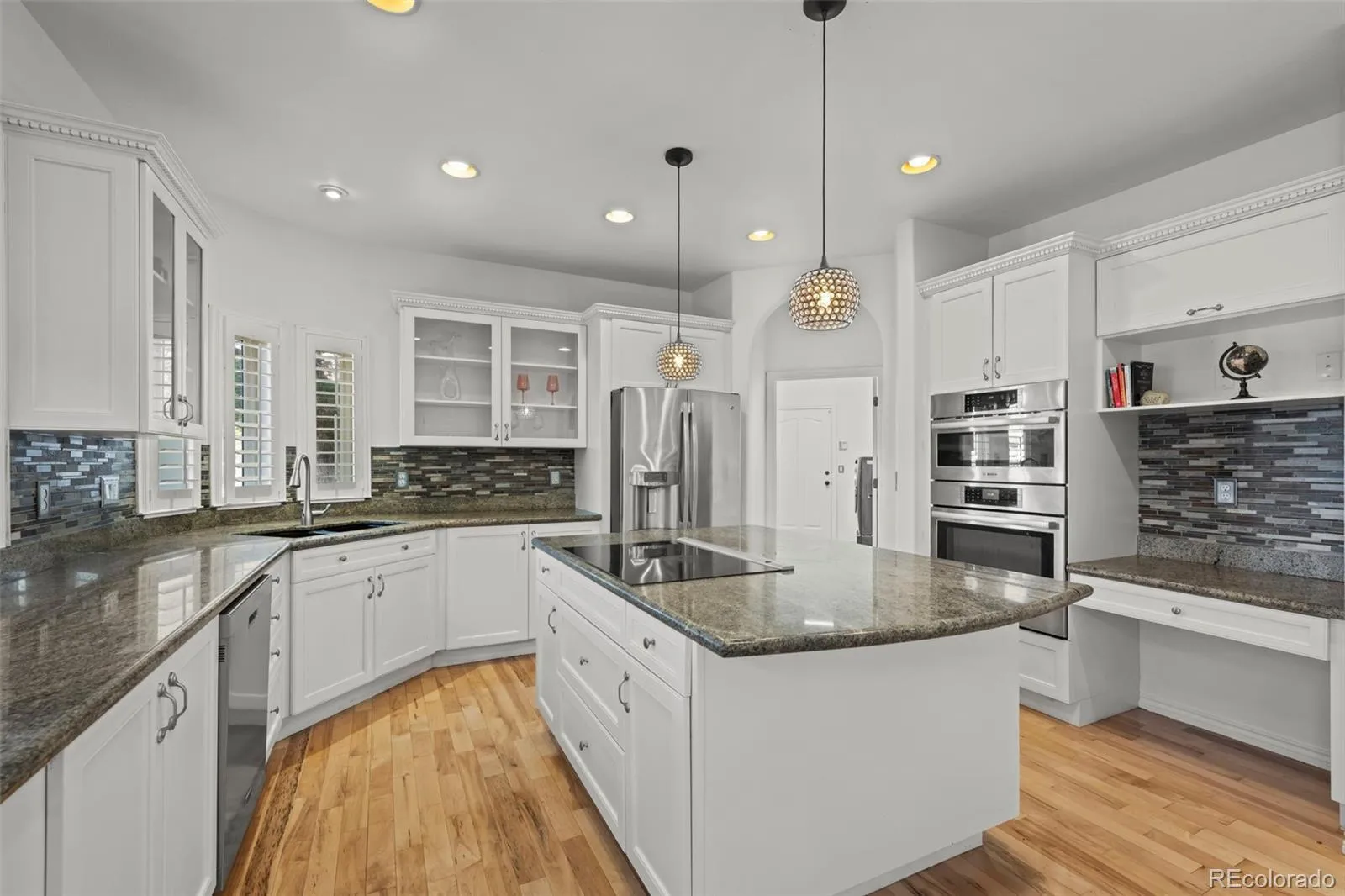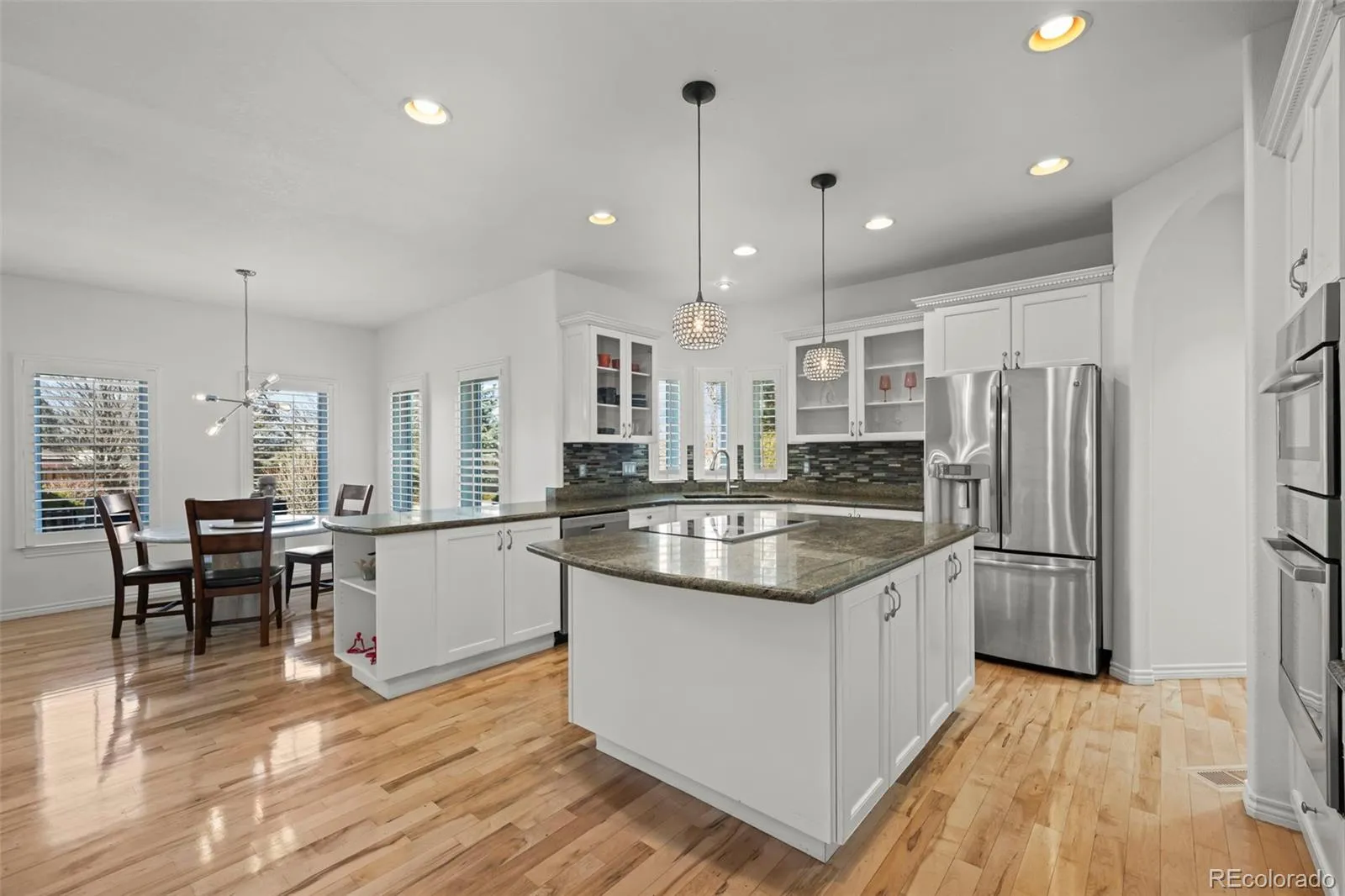 Welcome to 7 Sandpiper Circle, located in the highly sought-after Lake Avery Estates. This exceptional five-bedroom, seven-bathroom residence offers over 5,130 square feet of thoughtfully designed living space on a beautifully landscaped half-acre lot. A circular concrete drive creates a striking first impression, complemented by elegant white stucco & extensive exterior lighting. Two tranquil water features, connected by a stamped concrete walkway & charming bridge, really set the tone. The backyard is designed for relaxation, recreation, and unforgettable gatherings, featuring a covered patio, pergola, basketball area & a third fountain that adds to the peaceful ambiance. Inside, rich hardwood floors extend throughout the main level, enhanced by plantation shutters & soaring ceilings. Expansive windows fill the home with natural light, creating a bright and inviting atmosphere. The chef’s kitchen showcases granite countertops, crisp white cabinetry, a mosaic tile backsplash, and stainless-steel appliances. The kitchen and eat-in nook flow seamlessly into the main living areas. Each of the five generously sized bedrooms includes its own private en suite bath, providing comfort & privacy. The main floor bedroom/full bath is perfect for multigenerational living or a second primary. A front-facing office with French doors offers the perfect space for productive workdays or quiet moments with a book. The finished basement is an entertainer’s dream with a built-in wet bar, kegerator, pool table, game area, & movie room. Weather your entertaining for the big game or curling up to binge your favorite shows, this is the spot! With easy access to I-25, HWY 7, and HWY 36, this home offers a convenient commute to Denver, Boulder, Lafayette, & Louisville. Shopping & dining are just minutes away at Denver Premium Outlets & The Orchard Town Center, along with a wide variety of restaurants, cafés, and entertainment options. Additional highlights include a newer roof and gutters.