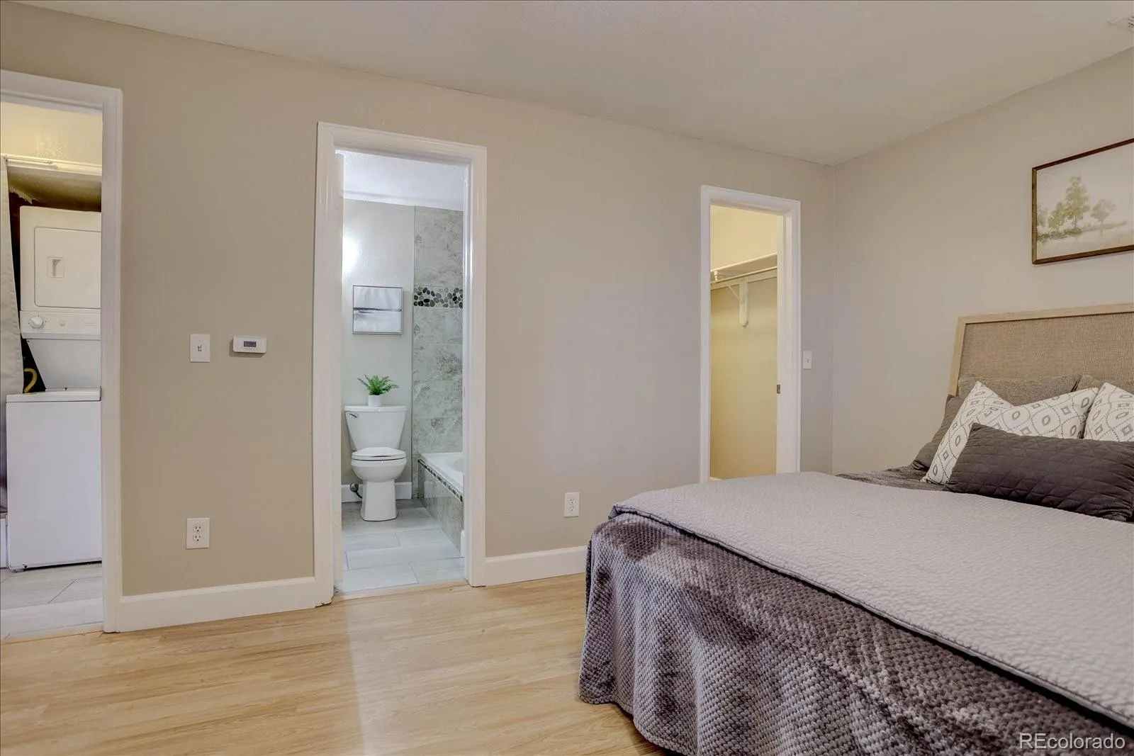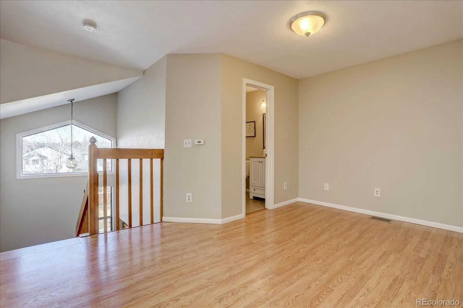 Welcome to this exceptional top-floor residence that captures your attention from the moment you arrive. The recently uprgraded building showcases fresh siding, new paint, and new stair rails, setting the tone for the quality that awaits inside. Thoughtfully designed main space where pergo floors flow throughout, complemented by a designer paint palette and soaring sky-story ceilings. Oversized windows flood the home with light, creating an inviting atmosphere perfect for everyday living and entertaining.The expansive family room is anchored by a dramatic wood-burning fireplace framed in stone that reaches an impressive 20 feet. This architectural feature creates a warm and sophisticated focal point. The open-concept layout connects the family room to a well-appointed kitchen and dining area.The kitchen offers abundant cabinet and counter space, pantry, and a center island with built-in sink that overlooks the living space. Stylish subway tile flooring adds contemporary flair and timeless appeal. Down the hall is the main-level primary bedroom with wood floors, walk-in closet, and access to a remodeled full bathroom boasting custom tile work, vanity, and clever built-in storage solutions. Stackable washer and dryer is tucked into a hall closet. Step out onto a private balcony, ideal for morning coffee or evening relaxation. The loft-style upper level provides a completely separate living area, perfect as a second bedroom, office, exercise room, or flex space. There is a 3/4 bath, walk-in closet, and secondary exterior entrance. Enjoy the amenities of an outdoor pool, clubhouse, and tennis/pickleball courts across the street. Lake Arbor is just two blocks away. One assigned parking space and ample off street parking. Easy access to major highways serving Denver and Boulder. Minutes from groceries, shopping centers, dining options, quality schools, and convenience that make daily life effortless. This rare find combines style, space, and location. Make it Yours!