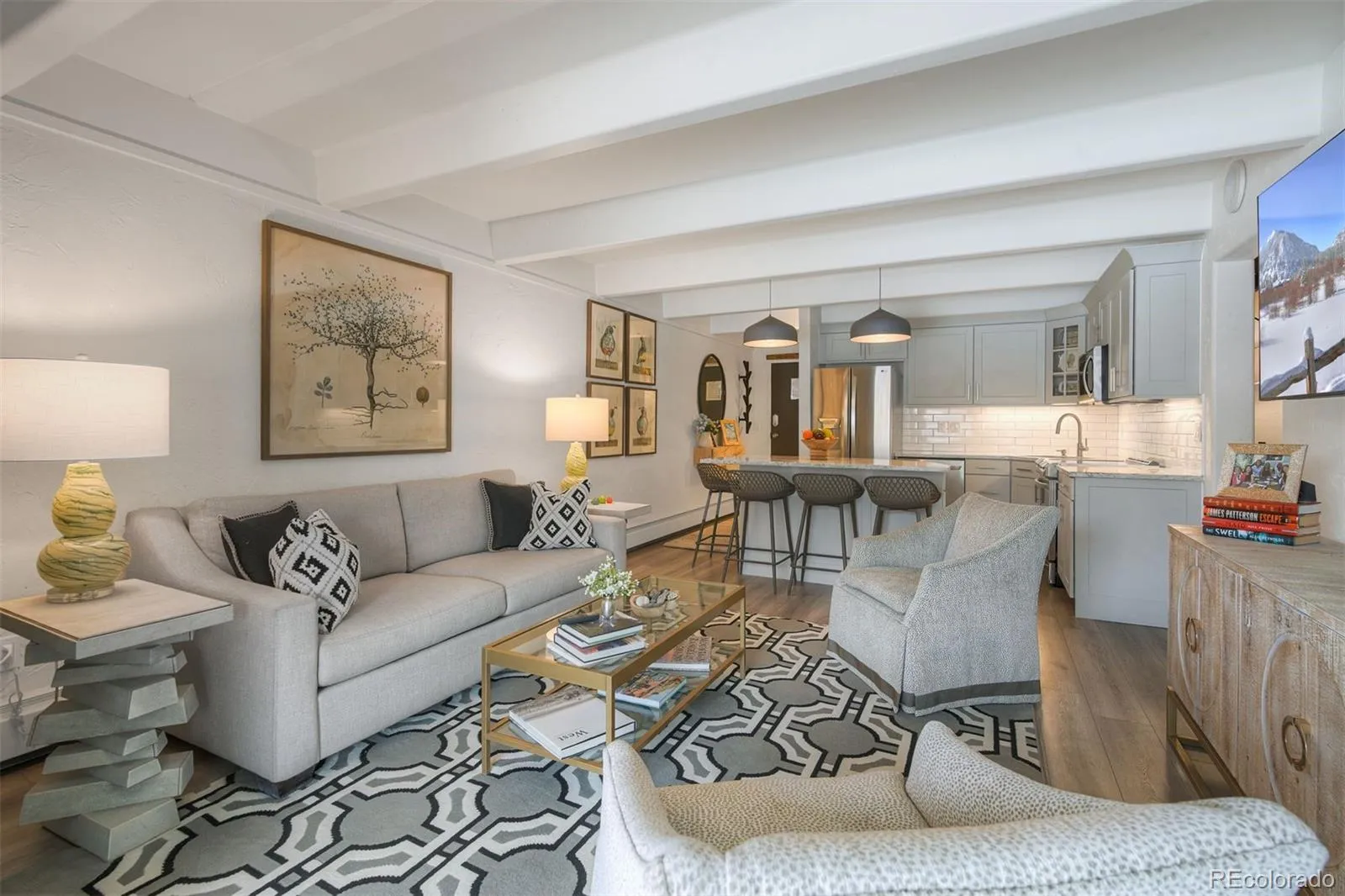 Experience elevated mountain living in this exceptional 2-bedroom, 2-bath end-unit condo with breathtaking mountain and lake views from every window. Exquisitely and thoughtfully updated, every inch of this home has been refined with quality and style in mind.