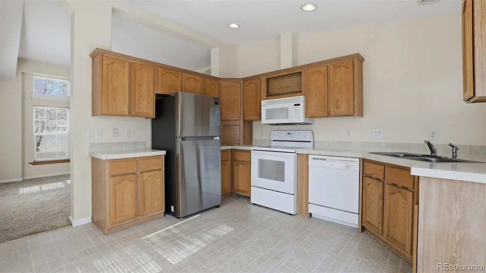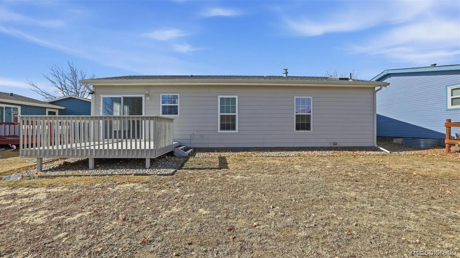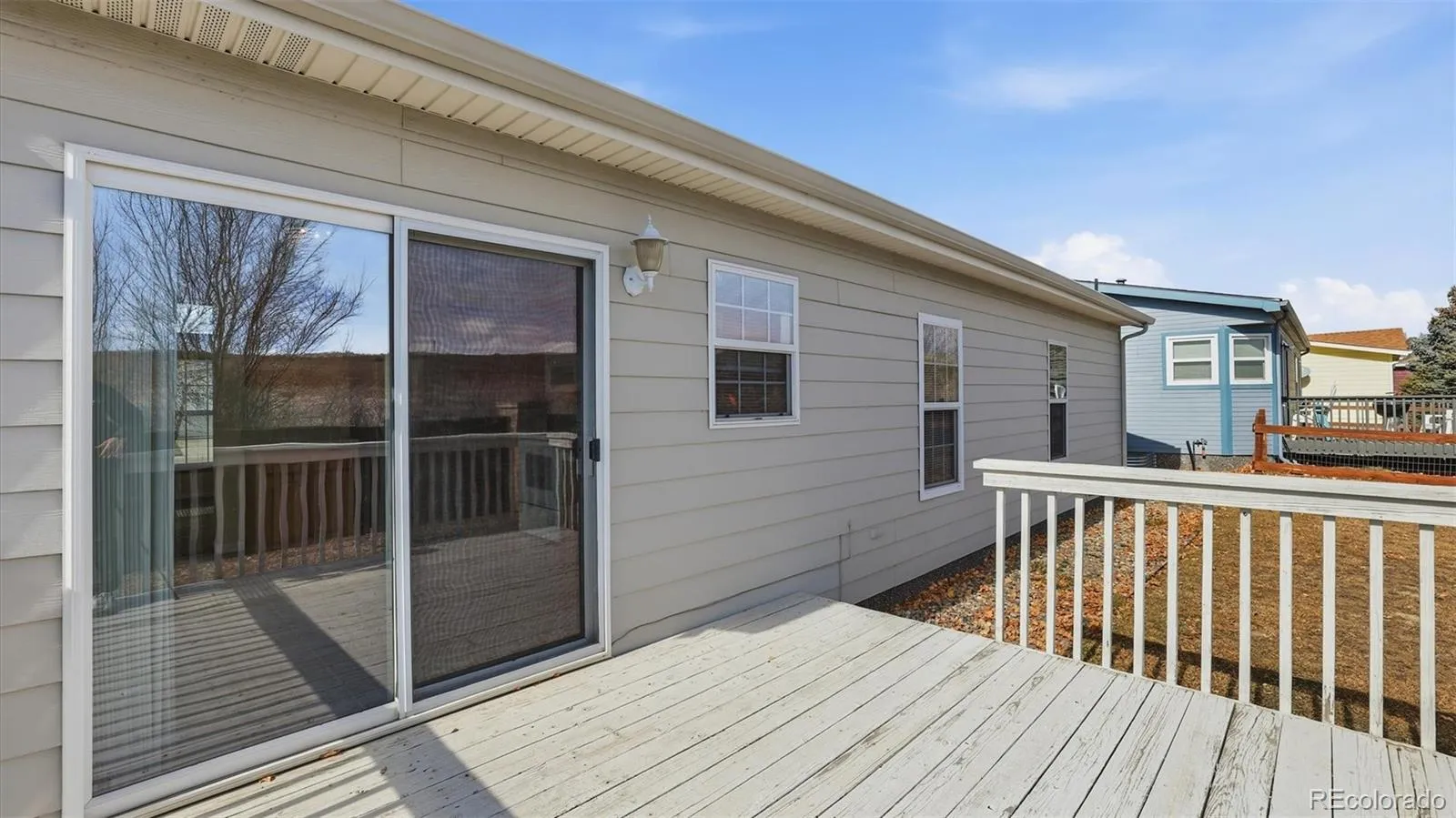 Come explore impressive, low-maintenance living in this beautifully maintained 3-bedroom, 2-bath manufactured home in the popular planned community of Chateau at Antelope Ridge. With outstanding curb appeal, the xeriscaped lot and storm-door entry set the tone for easy, low-maintenance living from the moment you arrive. Inside, you’ll find 1,080 square feet of thoughtfully designed living space, enhanced by central air and heat for year-round comfort. Abundant windows flood the home with natural light, while window blinds throughout provide privacy and style. The spacious living room features plush, neutral carpeting and an inviting layout, perfect for entertaining family and friends. The living area flows seamlessly into the eat-in kitchen, complete with durable vinyl flooring, ample wood cabinetry, and generous counter space for storage and meal prep. A full appliance package includes a smooth-top range oven, microwave, dishwasher, and refrigerator. Step outside to the backyard deck, an ideal spot for outdoor dining, morning coffee, or relaxing evenings. The primary bedroom is a comfortable retreat with plush carpeting, a mirrored wardrobe closet, and an attached shower bathroom featuring a dual-sink vanity and enclosed shower. Two additional bedrooms share a full hall bathroom with vanity, mirror, and tub/shower combination, perfect for family, guests, or a home office. Two car attached garage with door opener. Fenced backyard that backs to open space for outdoor fun and relaxation. Residents of this community enjoy exceptional amenities, including a clubhouse, fitness center, swimming pool, playground, and a variety of planned activities throughout the year. Ideally located near schools and the Powers Corridor, you’ll appreciate easy access to shopping, dining, and entertainment, along with convenient proximity to Peterson Space Force Base. Move-in ready and full of charm, this delightful home is ready for you to call it home!