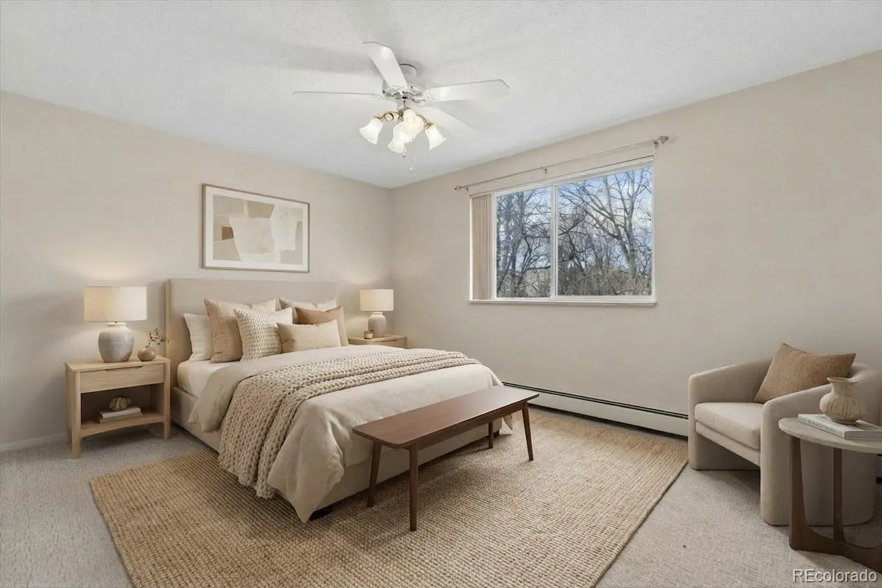 Pure Serenity is what this condo location brings- enjoy peaceful sounds of nature and mature trees overlooking Windsor West. Conveniently located on the 2nd floor- same floor as laundry, this corner condo is 945 sf, and includes 2 bedrooms, 1 bathroom, 1 detached garage, and bonus additional storage room in the building. New interior paint! Kitchen features updated cabinet fronts, corian countertops, mix of stainless and white appliances, and deco backsplash. Bathroom updated with walk-in shower, oak vanity, and medicine cabinet/mirror combo. Spacious bedrooms with ceiling fans. Updated doors and fixtures, and New wall ac unit in living room! Lanai glass/screen enclosure and double pane vinyl slider door. Short distance walk from building to Windsor West walking trail and nature preserve which sides the High Line Canal. Move right in! **Windsor Gardens is Colorado’s Largest Age 55+ Active Adult Living Condo Community. Did you know? Monthly HOA Dues include annual property taxes! And heat, water, sewer, trash, round-the-clock patrolling community responders, full time onsite association management, grounds/building maintenance, and activities department. Enjoy clubhouse amenities such as fitness center, indoor/outdoor pools, hot tub, sauna, billiards, library, craft rooms for ceramics, sewing, woodworking, and 9 hole par 3 golf course and onsite restaurant both open to the public. Stay engaged with a wide array of activities, clubs, and events scheduled every month. Additional features include garden plot program, private walking trail and nature preserve, and RV/Boat storage. The Highline Canal runs full length along south side of the complex. RTD Bus Stops located thru-out the community. FHA/VA approved. Close to restaurants, stores, shopping…Minutes to Lowry, Hwy 225, Cherry Creek…Easy access to DIA and downtown. Come see for yourself what Windsor Gardens has to offer. ©2021**