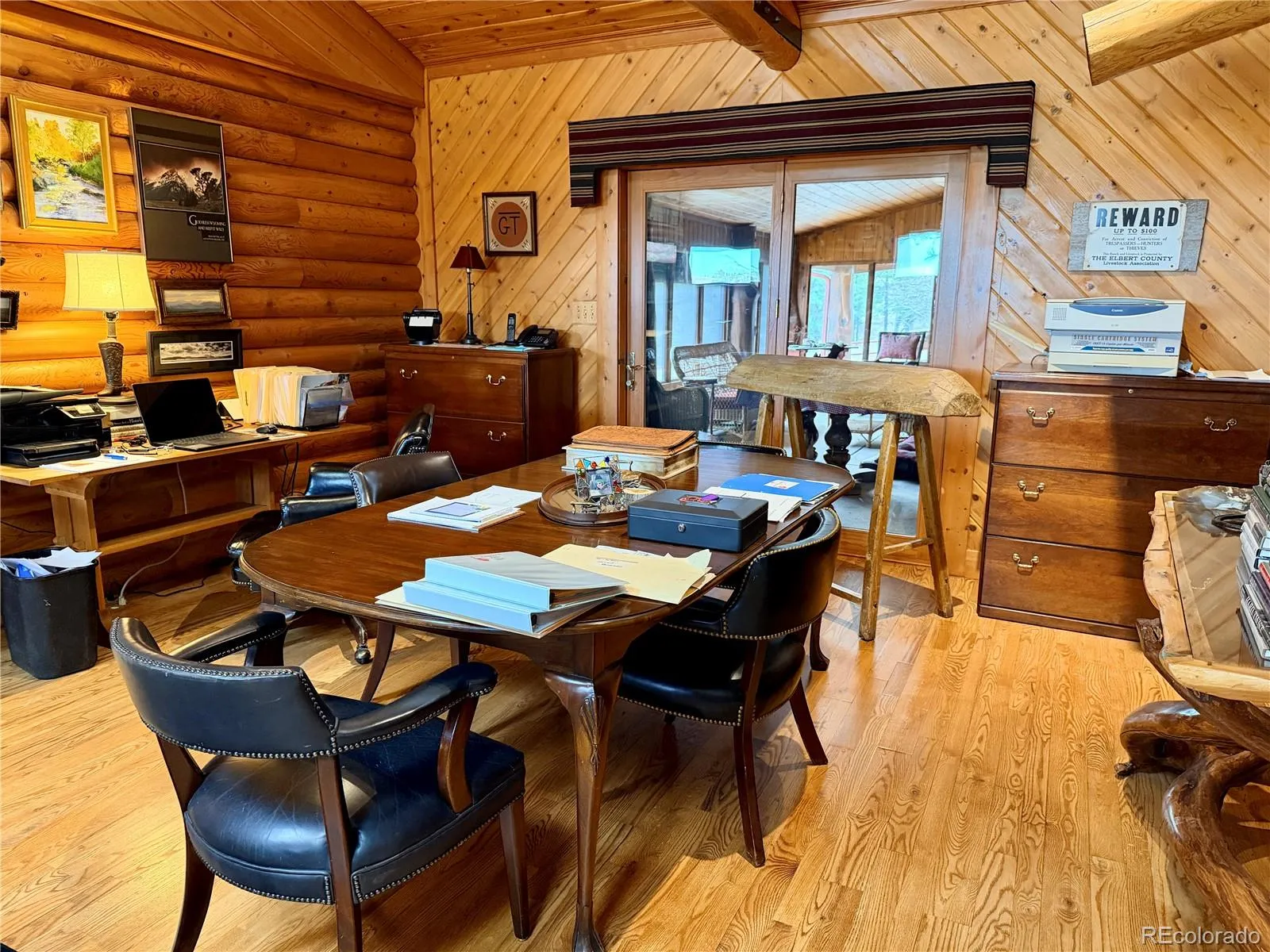 Main Home- Timeless Western elegance describes this wonderfully appointed grand western log home at the center of the ranch. The stunning ranch-style log home is nestled amid the Ponderosa Pines. Featuring warm, handcrafted log design and boasting 4,590 square feet of finished living area and 960 square feet of unfinished. The grand great room as breathtaking centerpiece with soaring vaulted ceilings with exposed beams, massive floor-to-ceiling stone fireplace, expansive walls of windows flooding the space with natural light. The design is open and perfect for gatherings and ranch living. See website for additional details.