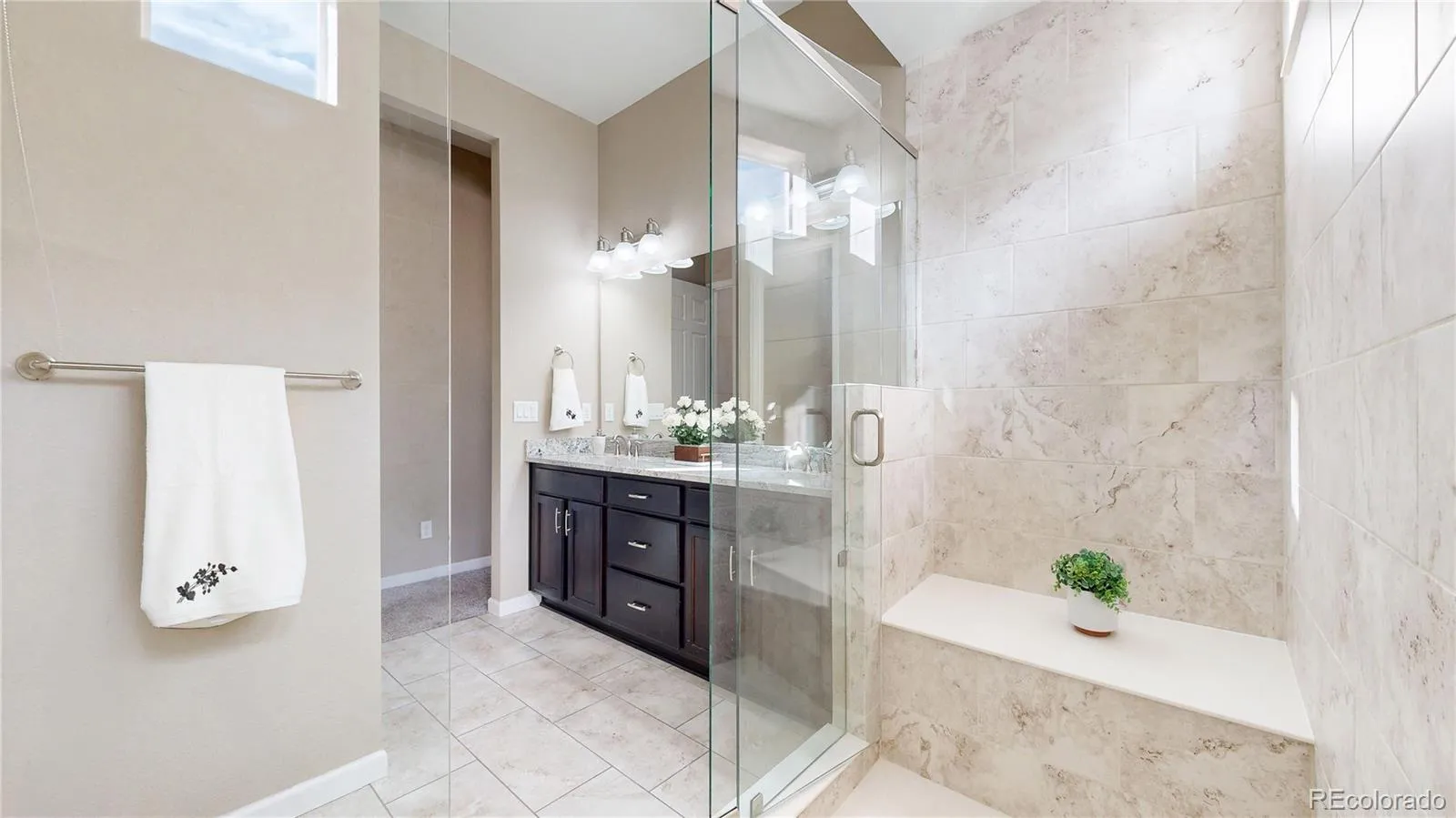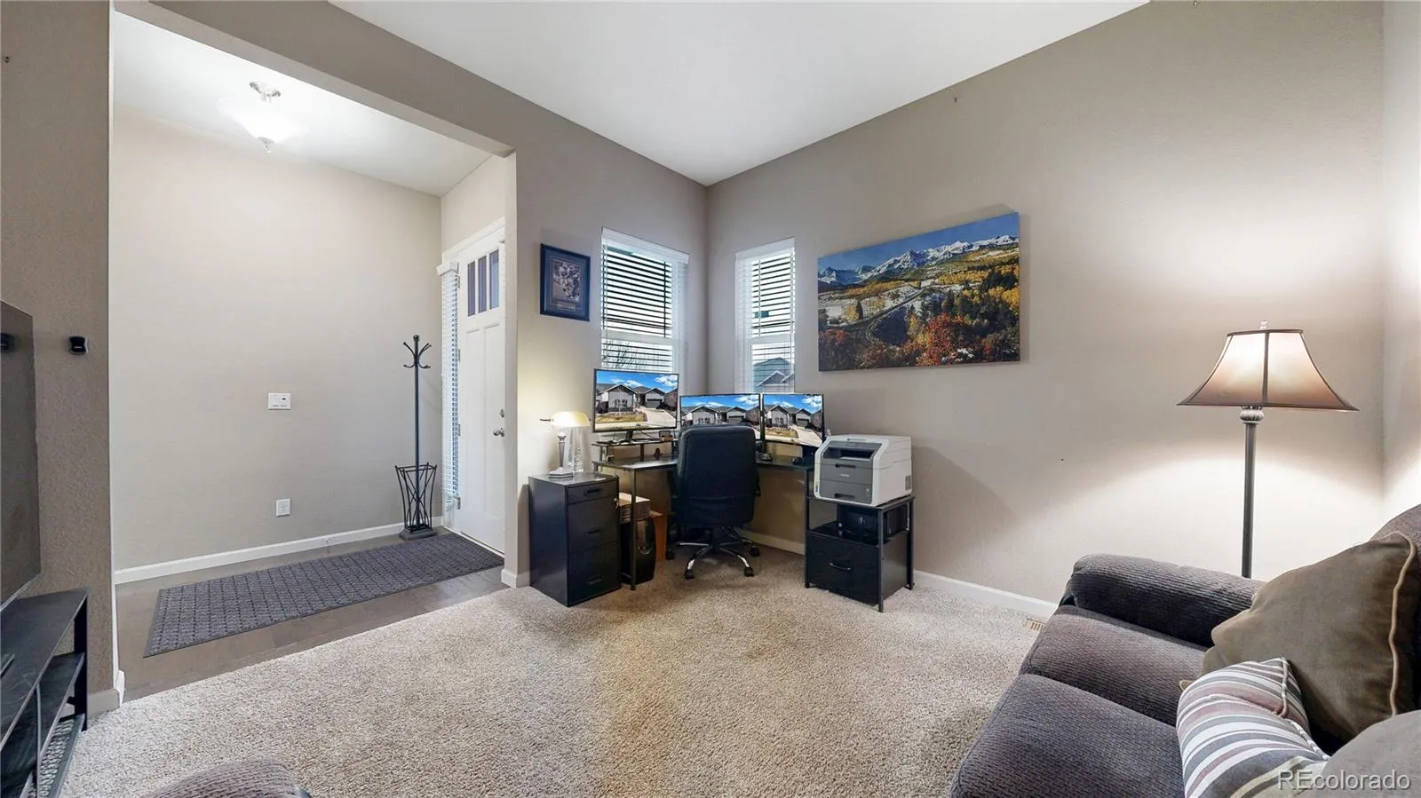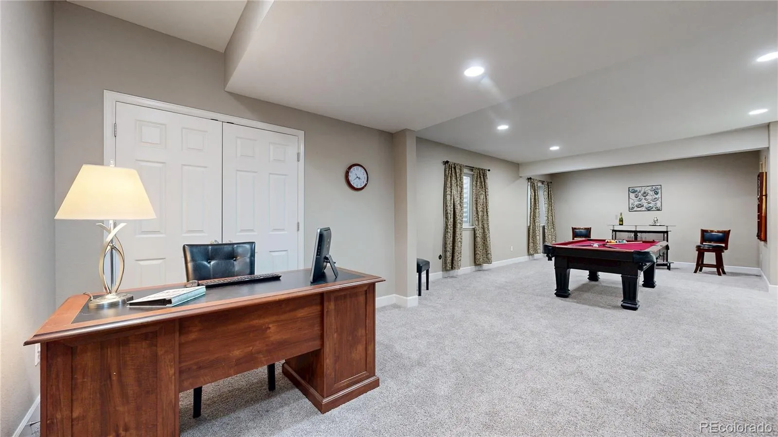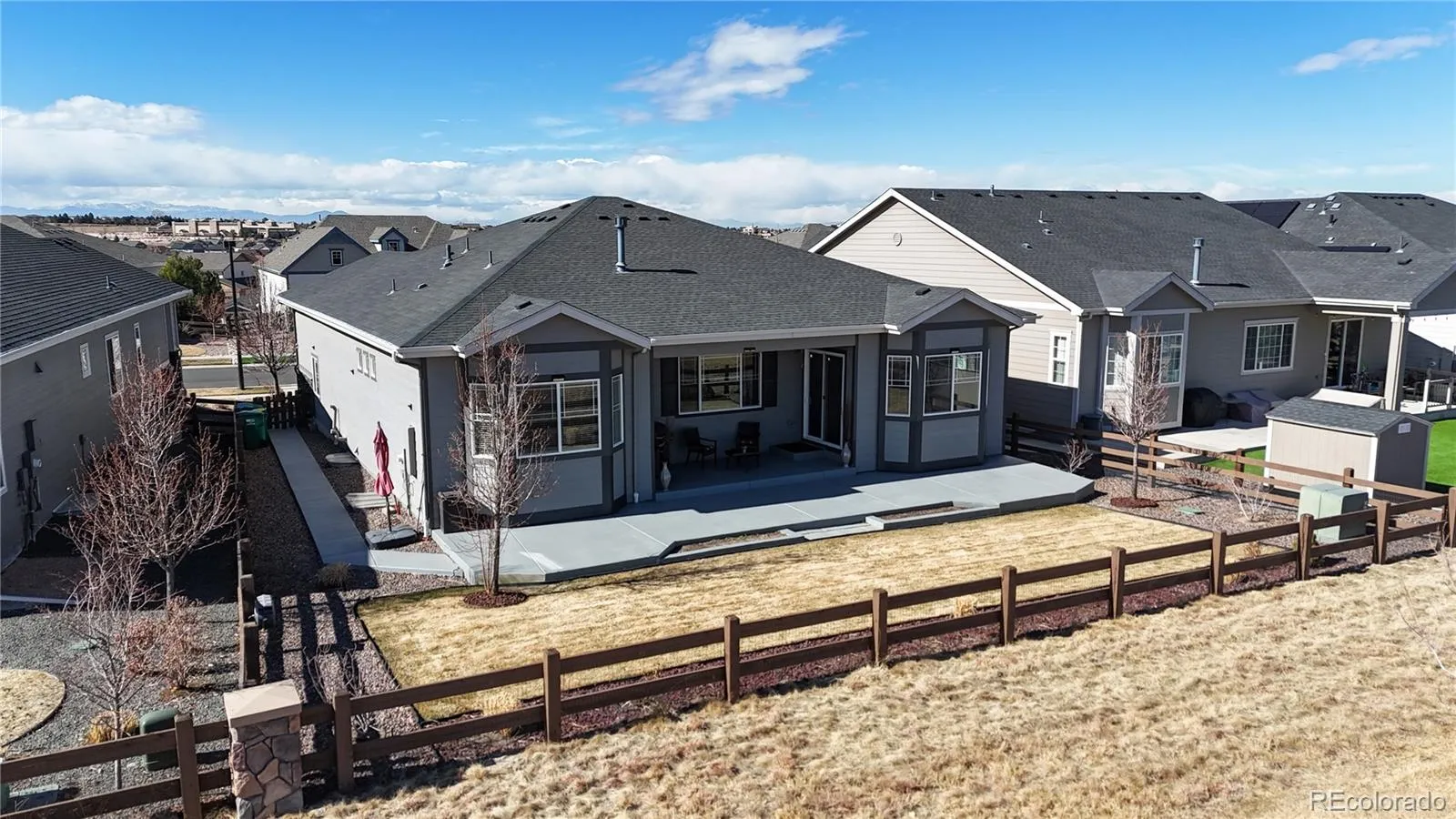 Southshore 4-bedroom, 4-bath Ranch Style home in SE Aurora with a finished basement with an open floor plan and plenty of main-level living space. Highly coveted 3-car oversized finished garages. A few blocks away from the Luxury Southshore clubhouse, pool, trails, and neighborhood parks. The backyard is fenced, professionally landscaped with garden lighting, and an oversized patio. There are neighbors on only two sides, which adds to the sense of space. Inside, the layout feels open and comfortable, with large picture windows that bring in beautiful natural light throughout the day. The main living areas feature hardwood floors, while the bathrooms and laundry room are finished with tile. Bedrooms and the lower level have upgraded carpet. The lighting throughout the home can be adjusted between two tones. The kitchen has granite slab countertops, extra cabinets for storage, and plenty of room to cook and gather. There is a flex space that works well as a home office, reading room, playroom, or whatever fits your lifestyle. The main floor primary bedroom is tucked away for privacy and features a large bay window, a spacious walk-in closet, and separation from the other bedrooms. The floor plan is designed so that guests, family or friends have their own space. There is also a grand entry to the finished basement, which makes the home feel more like a two-story home. Downstairs, the finished basement offers a very large second living area, two additional bedrooms/flex space, a bathroom, and an enormous storage room. Additional features include a three-car garage that is insulated, finished, and has upgraded flooring, an enhanced sprinkler system, exterior lighting, 9 camera security system, and a laundry room with a washer and dryer and plumbing for a future sink. Located in a top-rated school district with convenient access to E470, Denver International Airport, Southlands Mall, dining, and entertainment. Open House Sunday, February 15th 2:00 to 4:00 pm PM.