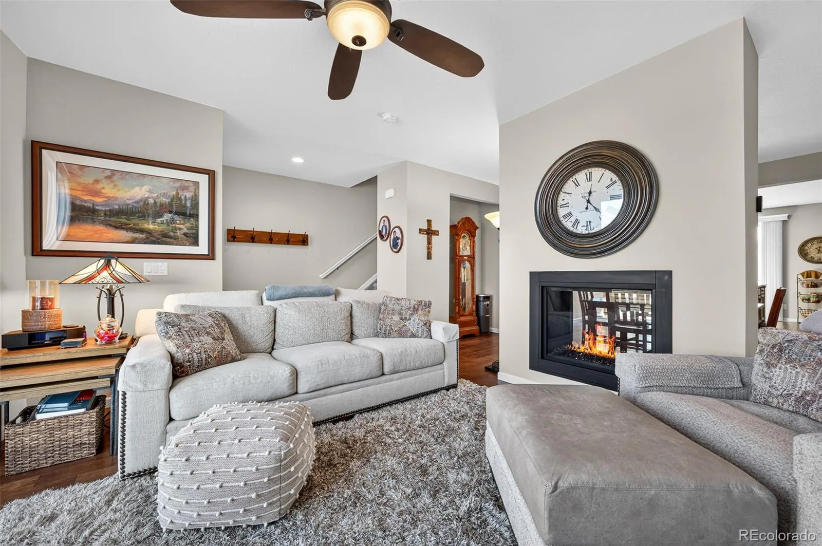 Centrally located to everything, quick access to I25, restaurants, theater, outlet mall, and outdoor recreation at the Miller Activity Center and Ridgeline open spaces. This townhome has been updated incredibly from the interior to the exterior. The two balconies give you the option sun in morning or shade in the afternoon. As you step inside the spacious kitchen with large kitchen island gives plenty of space for entertaining. Extra large pantry allows plenty of space for all your cooking needs. Excellent space in your formal dining area if you so desire. Enjoy the double sided fireplace in the family or dining room. An excellent location also for a half bath on the main level. As you venture upstairs you have three spacious bedrooms. A full bath room and a three quarter bathroom in the primary bedroom. Lots of natural light in this beautiful home. Did I mention double closets in the primary bedroom, yes you have plenty of room for all your clothing and shoes. Additional bedrooms are well sized for a guest bedroom, gym or office. Don’t miss the basement with plenty of additional space plus a half bath. This townhome is a rare find in the Meadows community. Additional details, engineered hardwood flooring, tile flooring, stainless steel appliances, water softner, radon mitigation system, ceiling fans, upgraded new carpet and padding.