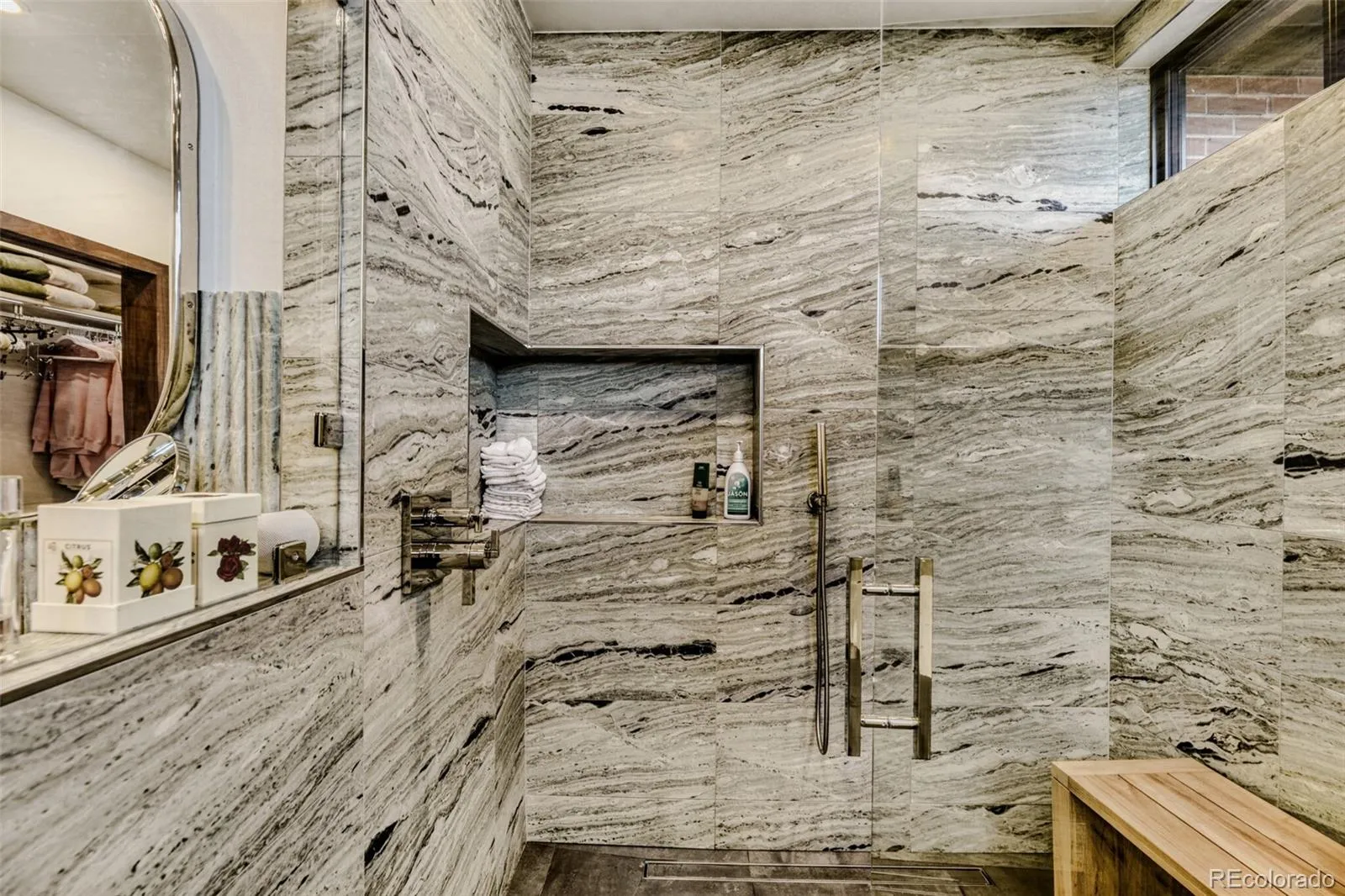 Throughout the home, global materials and refined craftsmanship define every space. Custom terrazzo slabs, Anne Sacks tile, solid walnut laminated doors, and porcelain flooring reflect a thoughtful balance of modern luxury and architectural restraint, offering both durability and continuity.