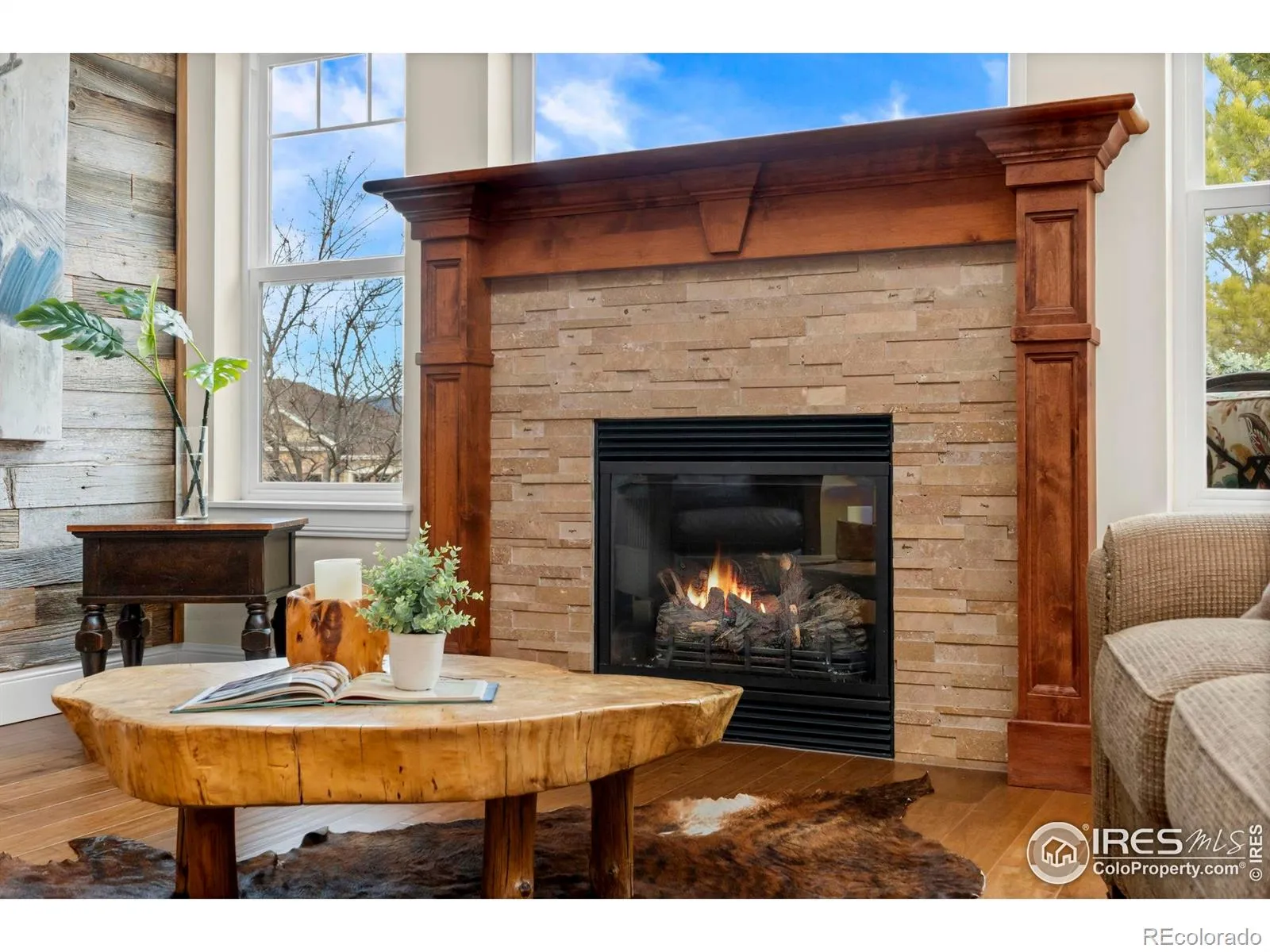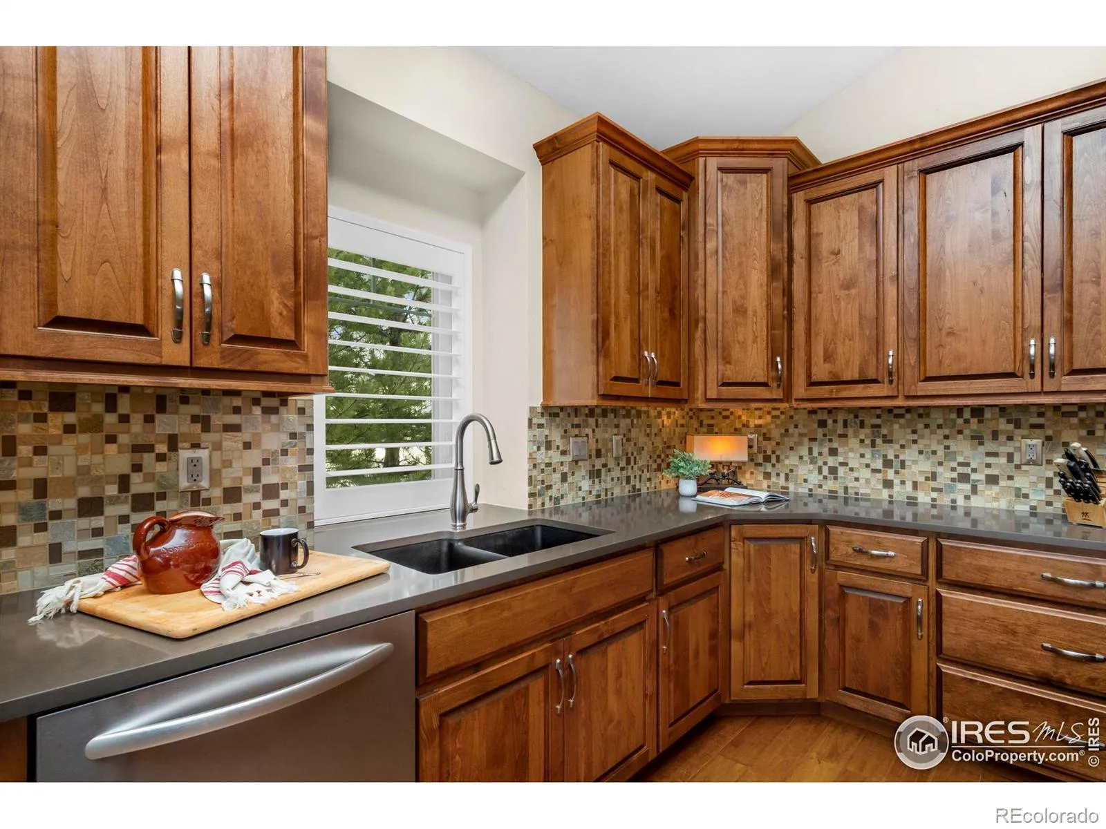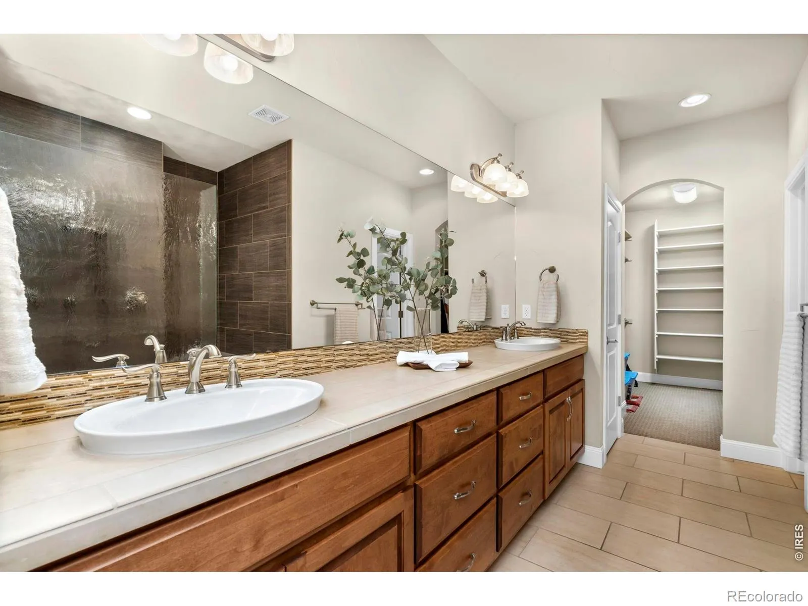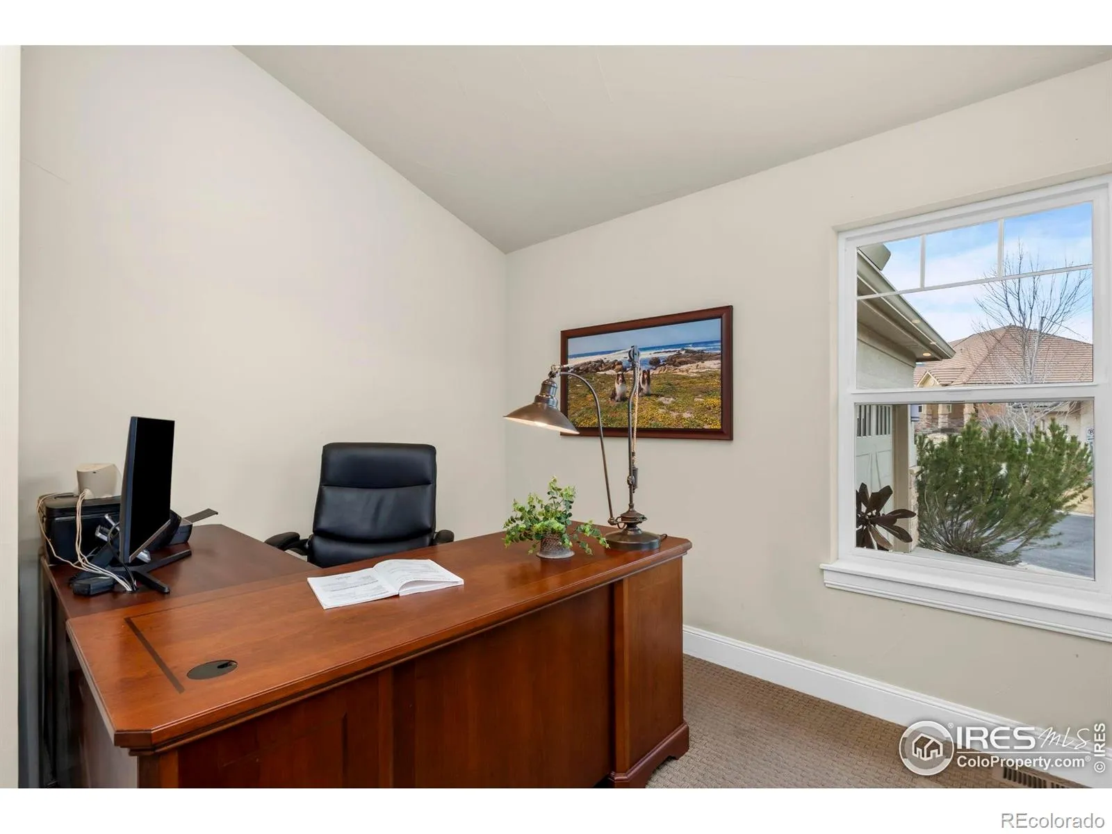 Wake up to sweeping mountain and Buckingham Lake views in this rare, maintenance-free end-unit ranch offering easy, lock-and-leave or stay-and-play living in desirable and active Mariana Butte in Loveland CO. Open and airy main level boasts vaulted ceilings, gas fireplace, expansive windows, plantation shutters, and dining area with deck access. Deck opens to green space with lovely mountain views and includes study posts for solar shades. Gourmet kitchen features quartz counters, tile backsplash, granite composite sink, built-in oven and microwave, XL gas cooktop, and large island. Gorgeous primary suite captures lake views and includes a spa-like bath with oversized designer shower, grand double vanity, private water closet, and oversized walk-in closet with custom shelving and solar tube. Main level also includes an office, powder bath, and dedicated laundry room with sink and abundant cabinetry. Well-designed garden-level basement with picturesque lake views features a spacious living room with gas fireplace. Bedrooms 2 and 3 share an upgraded bath with large tub, extended vanity, tile flooring and tub surround, ensuite access from Bedroom 2 plus hall entry. Dog run provides a convenient space for furry friends. Ample storage including basement storage room and 2-car garage.Thoughtfully designed to combine effortless, low-maintenance living with exceptional views and everyday functionality.