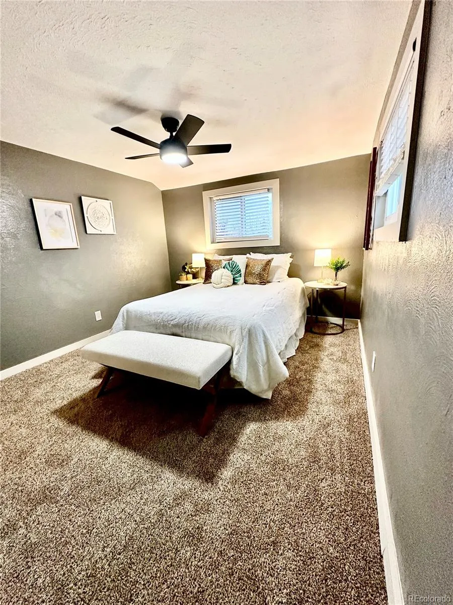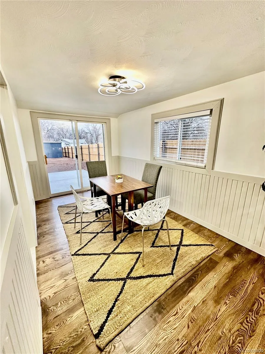Discover modern ranch living in the heart of Campion! Interior highlights include granite kitchen counters, stainless steel appliances, refinished hardwood floors, oversized jacuzzi soaking tub, custom tile shower surrounds on each level, wood burning fireplace in the living room, three basement bedrooms with egress windows provide flex spaces for whatever a homeowner desires, and a tankless hot water heater. Exterior highlights include a brand new fully permitted roof, brand new fully permitted new electrical service line mast and electrical panel, a new concrete patio perfect for entertaining in the backyard, new concrete walkway in front entry, new paint on the stucco exterior, solar array owned free and clear with no monthly payments, storage shed and chicken coop in the backyard. A .27 acre lot perfect for plenty of parking and creating your ideal space. No HOA, no metro district. Campion is centrally located between Loveland and Berthoud, with easy access to I-25.