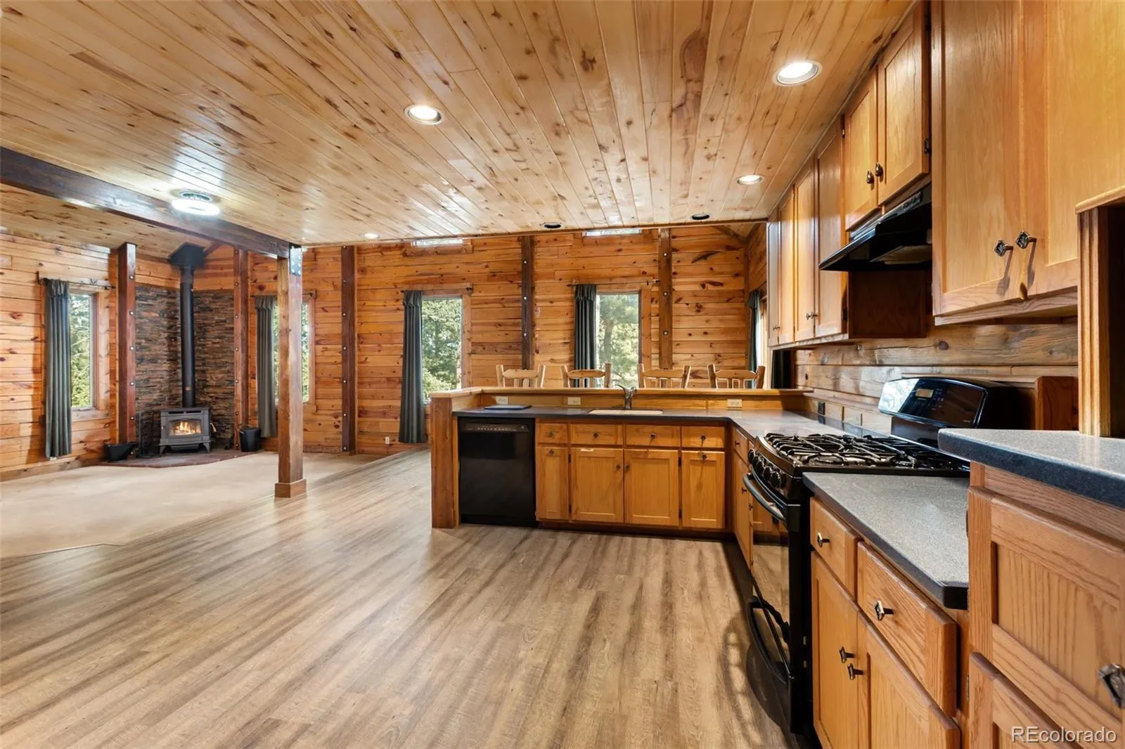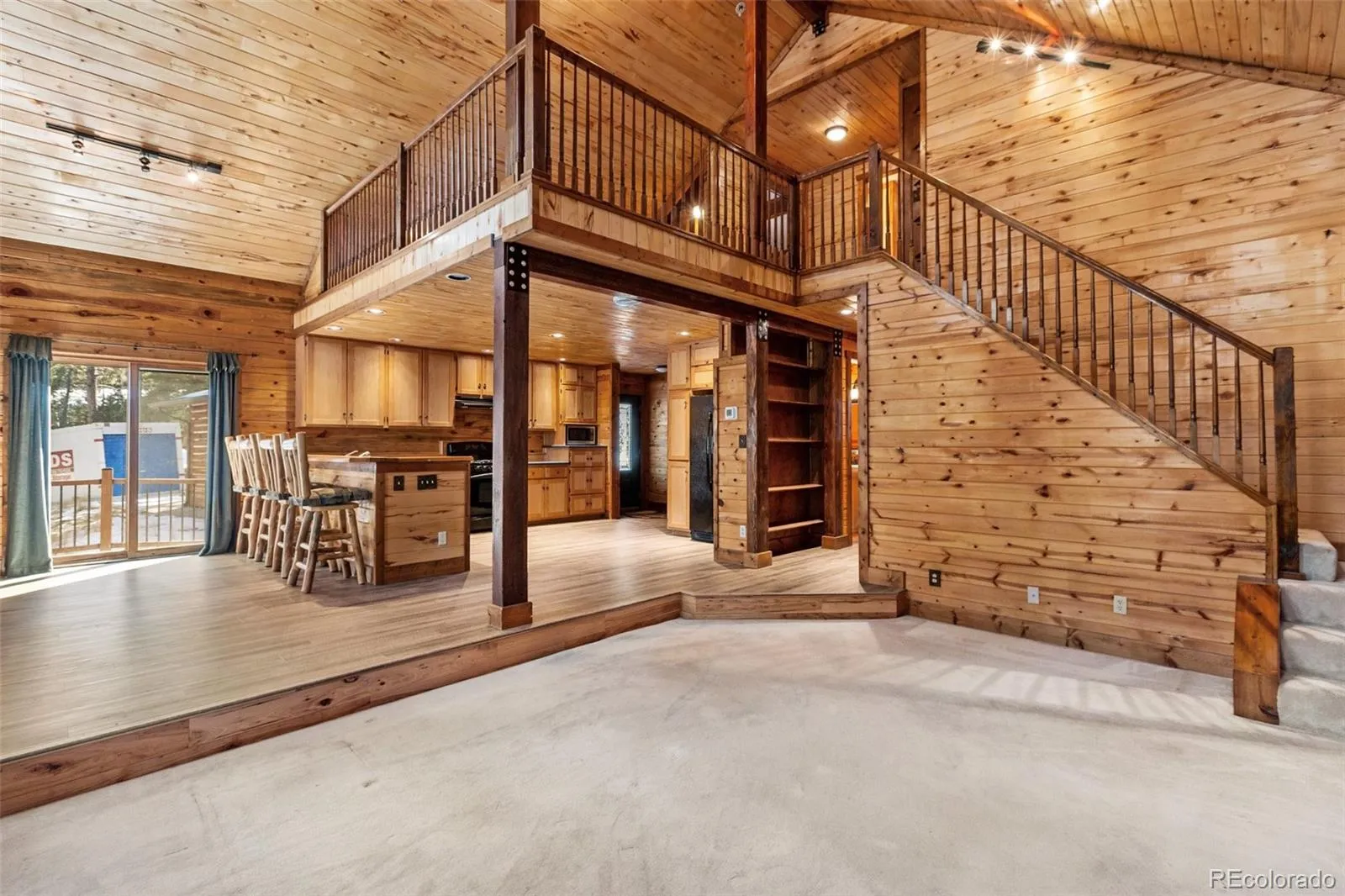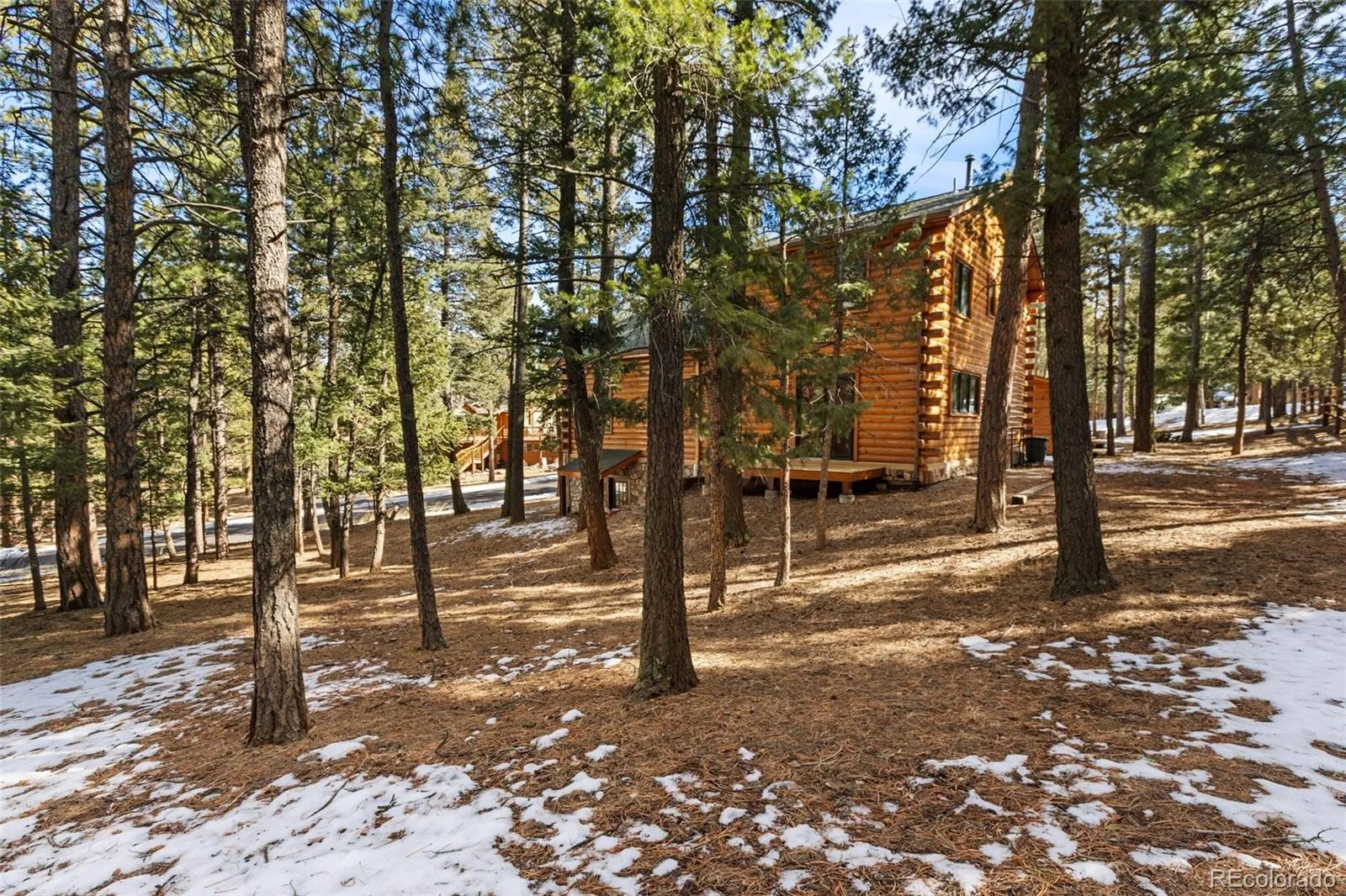 Classic full log home on a private, treed half-acre in the desirable Spruce Haven subdivision—just a short walk to downtown Woodland Park, restaurants, shopping, and everyday conveniences. This 4-bedroom, 3.5-bath home offers over 3,000 square feet of warm, authentic mountain living with a dramatic vaulted great room, exposed log interior, and wood-burning stove that anchors the space.