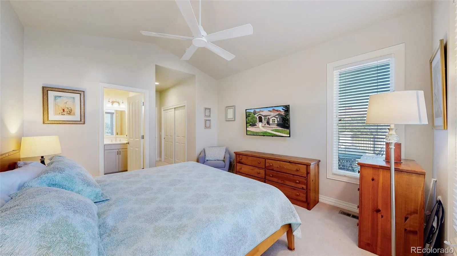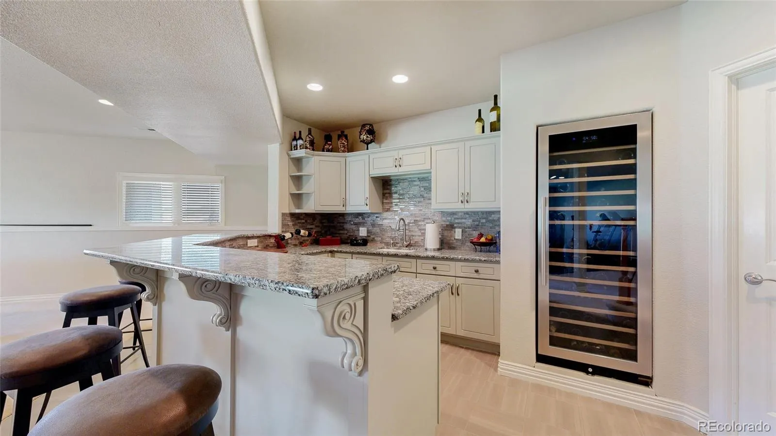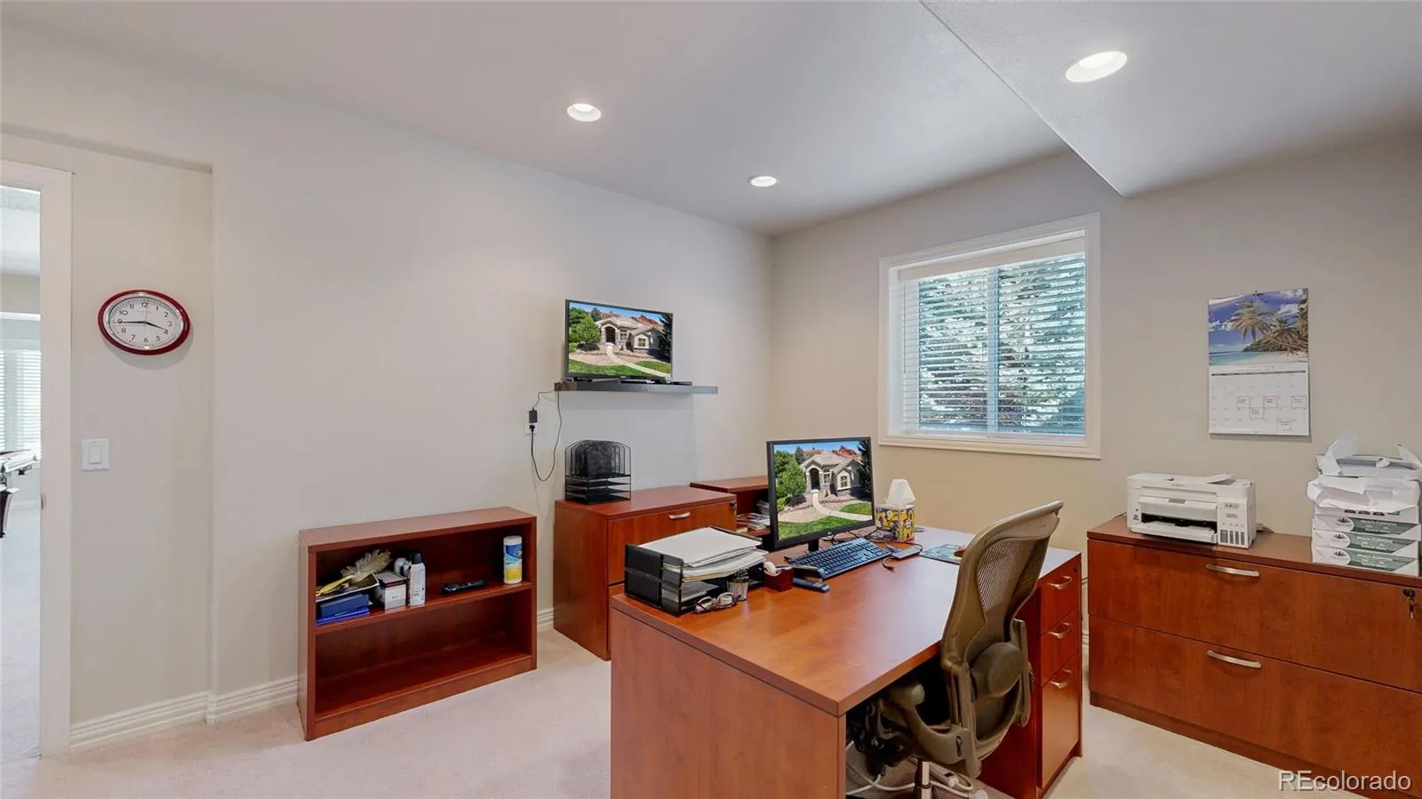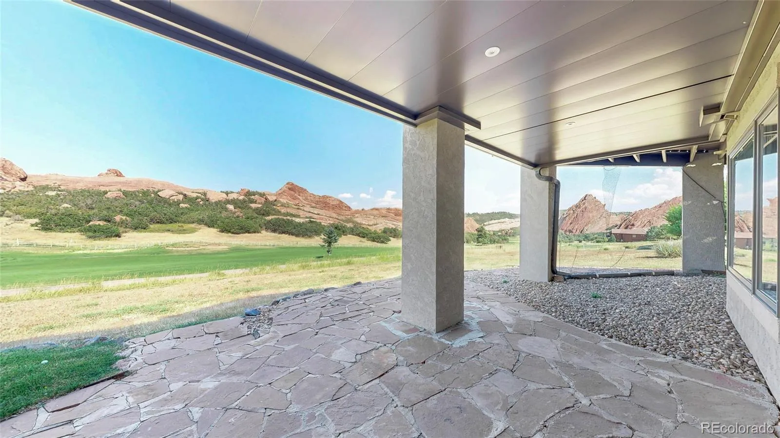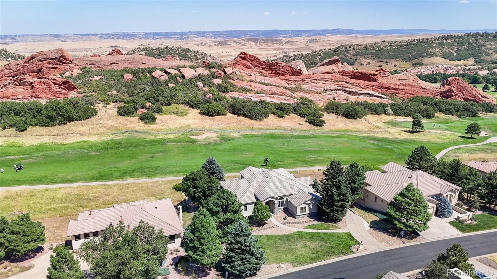 Located on the prestigious Arrowhead Golf Course, this stunning home offers breathtaking views! Step into the oversized great room featuring a cozy gas log fireplace, hand-scraped engineered hardwood floors, built-in shelving, and expansive windows that perfectly frame the scenic golf course and red rock vistas. The updated kitchen is a chef’s dream, equipped with premium Thermador appliances, slab granite countertops, and a tile backsplash. Just off the kitchen, a new expanded composite deck—positioned on the east side of the home—offers a peaceful evening retreat overlooking the fairway. Entertain in style in the formal dining room, which includes a built-in sideboard with a slab granite top and elegant glass-front cabinetry. The study is outfitted with custom built-in bookshelves and large windows that fill the space with natural light. The expansive primary suite is a true sanctuary, showcasing stunning views, gas fireplace, dual walk-in closets, and a newly remodeled spa-like bathroom complete with a freestanding tub, frameless glass shower, and a heated towel bar. A newly updated guest bathroom with a quartz-topped vanity serves the main floor, along with a secondary bedroom located on the opposite side of the home—perfect for privacy—featuring its own brand-new ¾ bath. The spacious main floor laundry room includes built-in cabinetry, a utility sink, and washer/dryer. Downstairs, the walkout level is designed for entertaining. The family/recreation room features a fully equipped wet bar with a large wine refrigerator, granite countertops, tile backsplash, and even includes the pool table and theater seating! A secondary bedroom on this level offers a great option for a home office, while a large workout/flex space provides endless possibilities. Two additional bedrooms share a beautifully remodeled full bath. There is a flagstone patio with a dry under system for those rainy days. The oversized 3-car garage provides ample space for vehicles, gear, and toys.
