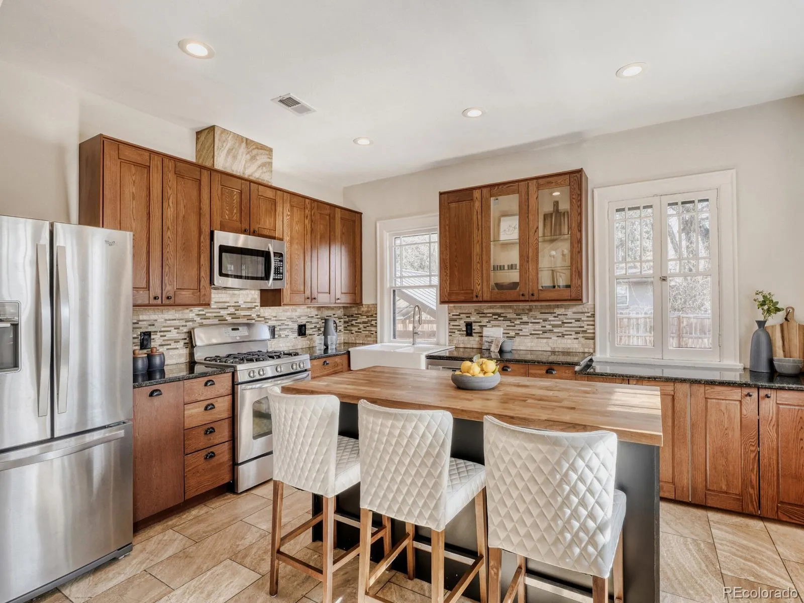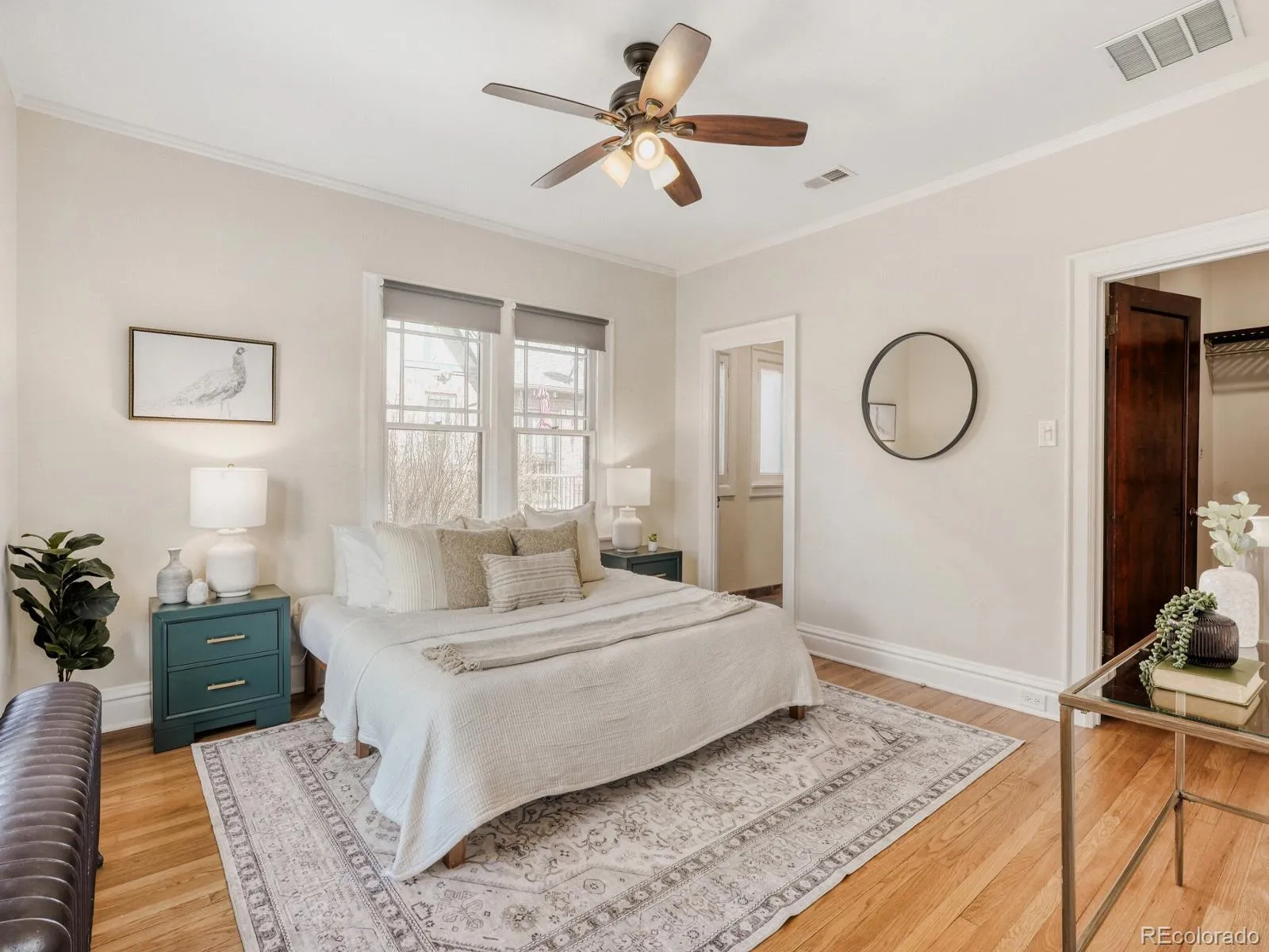 Timeless character meets modern luxury in this beautifully remodeled 5-bedroom, 3-bath home in a classic 1925 Denver residence. Thoughtfully updated while preserving its historic charm, this home features rich wood floors, crown moulding, original Craftsman woodwork and an exceptional kitchen complete with stainless steel appliances, granite countertops, and handsome cabinetry—perfect for everyday living and entertaining alike. The kitchen and main floor bathrooms all enjoy radiant floor heating. The spacious primary suite offers a true retreat with a huge walk-in closet and a superb en suite bathroom.