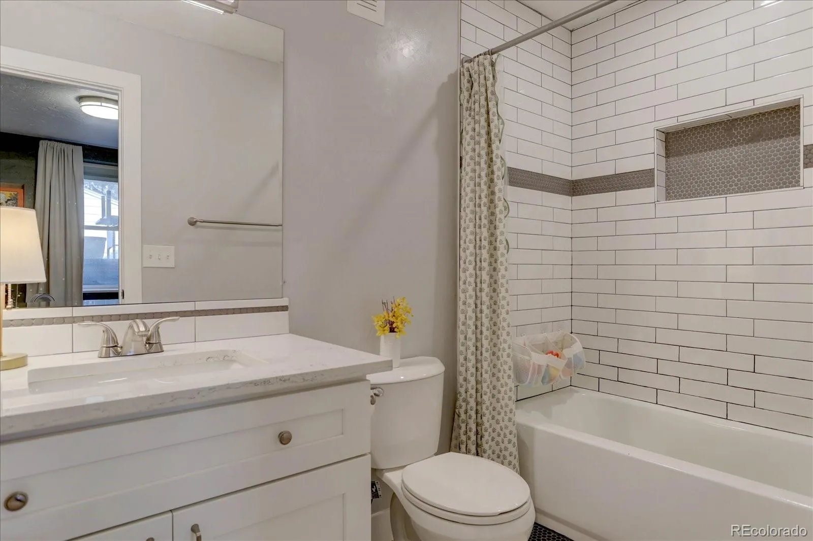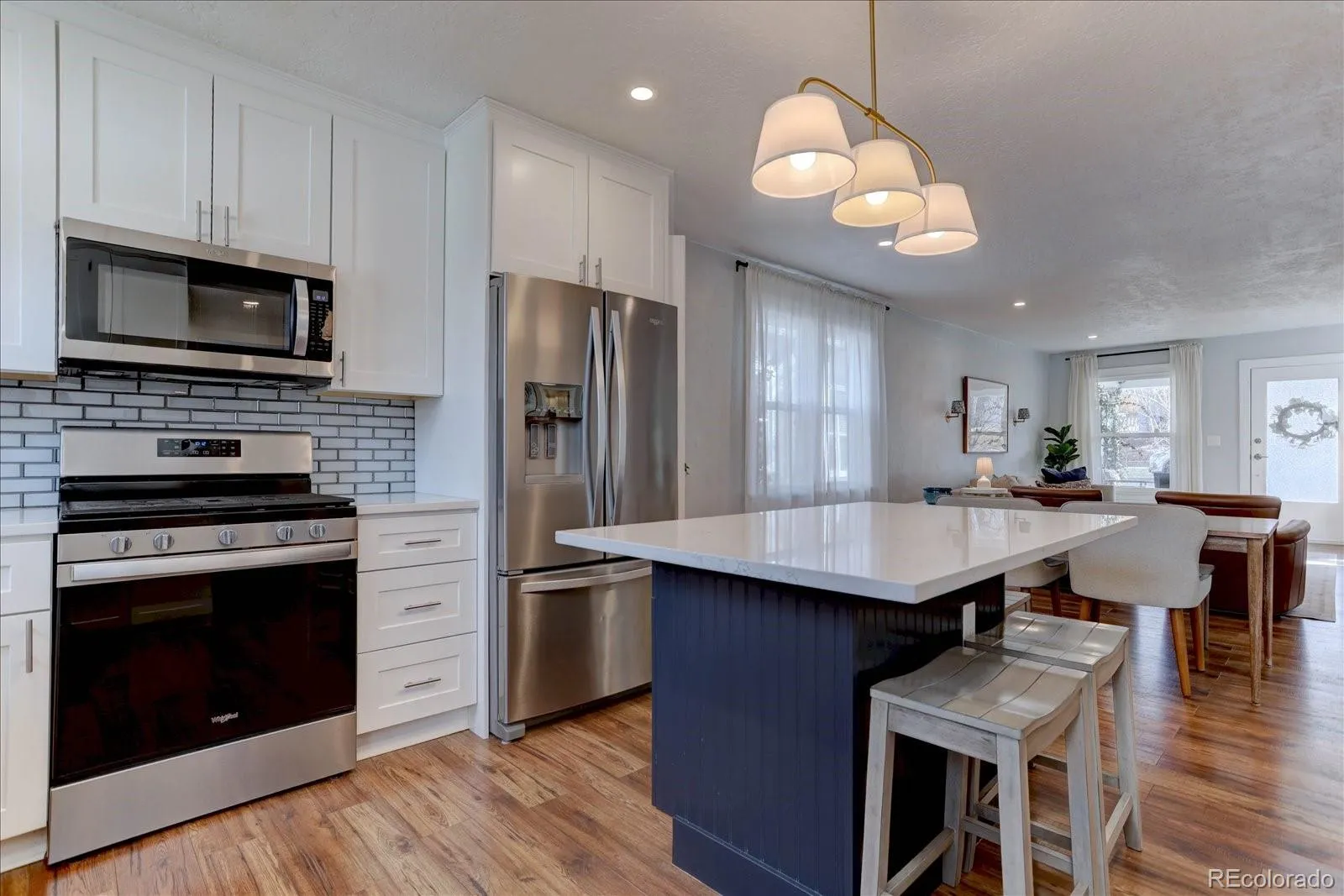Come see this charming bungalow in the highly sought-after Harvard Gulch subdivision of Englewood! Meticulously re-done from top to bottom, this home features all-new electrical, plumbing, new HVAC and duct work, and new main sewer line. The interior welcomes you with a bright and open floor plan that flows through the living room and dining room, and naturally draws your eyes to the gourmet eat-in kitchen, featuring beautiful quartz countertops, stainless steel appliances, soft-close cabinets, a kitchen island, and a designer backsplash that ties the space together. The main floor also features a spacious primary bedroom complete with a private balcony, walk-in closet, and a gorgeous ensuite bathroom with custom tile and double vanities, alongside a large second bedroom