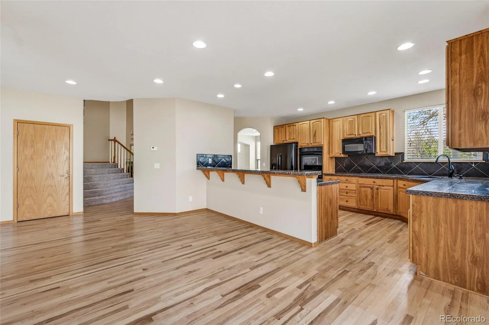 Recent improvements include fresh interior paint, brand-new carpet, and updated LVP flooring, creating a clean, modern feel and a truly move-in-ready experience. Throughout the home, you’ll find quality finishes such as hickory flooring and cabinetry extending into the kitchen, bathrooms, and laundry room, along with 9-foot ceilings that enhance the open feel.