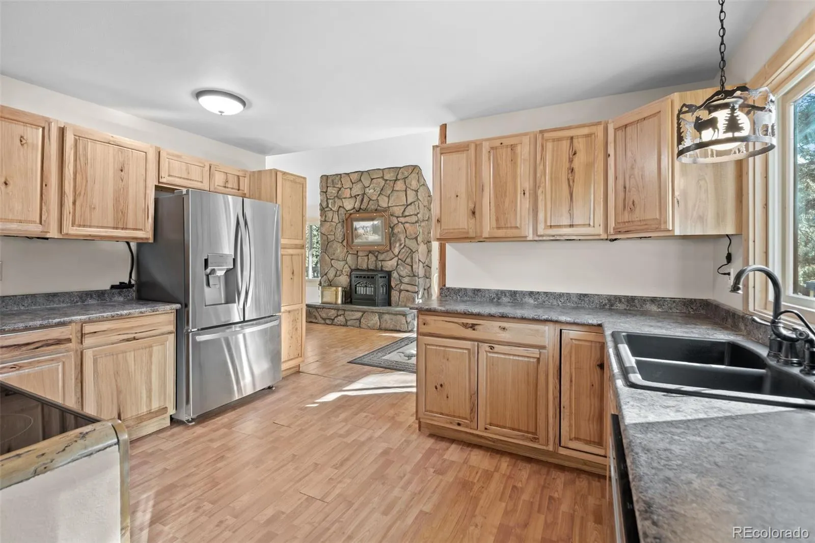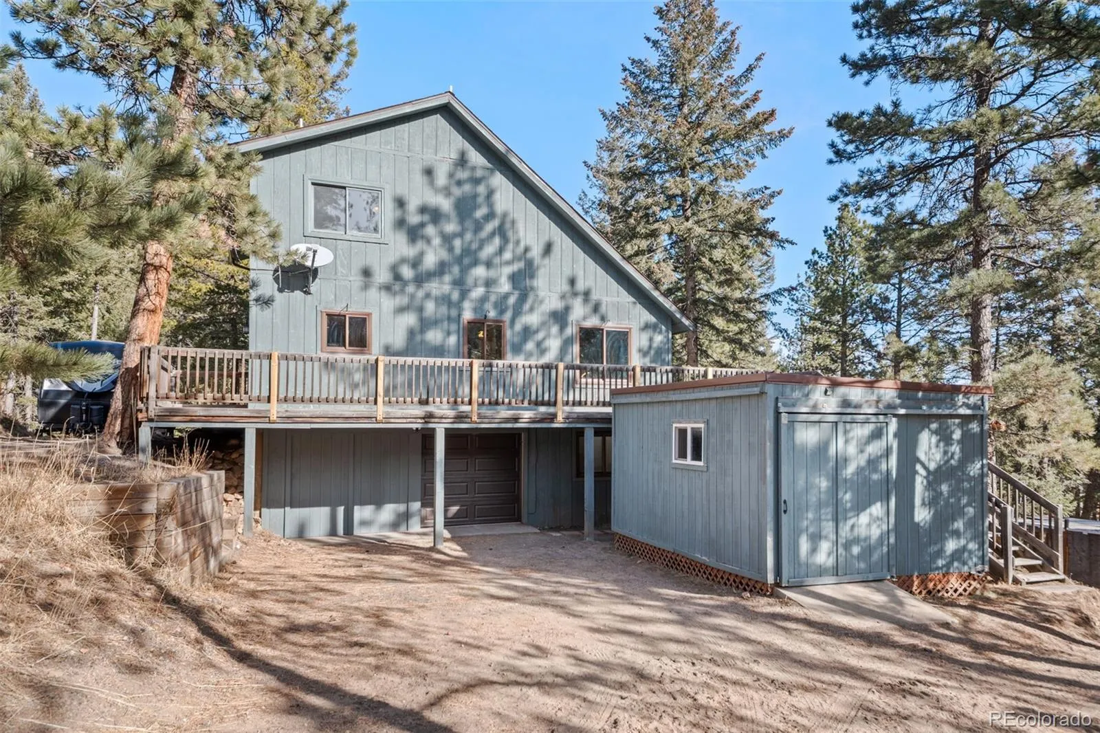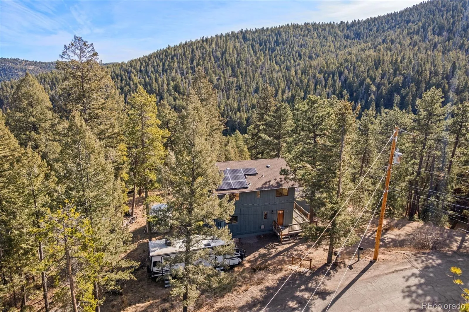 Welcome to your private mountain escape in Evergreen—an updated 3-bedroom home that lives large with open surroundings and a direct border to Arapahoe National Forest. With undeveloped land behind you, sweeping forest views, and Maxwell Falls within walking distance, this property delivers that rare “more land than the deed” feeling. The setting shines from the start: RV parking with 30-amp service, fire mitigation, a secluded backyard, horseshoe pits, and a quaint kids’ clubhouse. Outdoor lovers will appreciate the large shed with a wood loft plus room for recreational toys and more. Inside, mountain character meets smart upgrades—log/wood accents, fresh interior paint, and updated lighting. The remodeled kitchen features newer stainless-steel appliances. The main bath offers new tile, a corner shower, and a stacked high-efficiency front-load washer/dryer. The open dining/living area includes vaulted ceilings and a centrally located pellet stove for cozy, efficient heat. One spacious bedroom sits on the main floor. Upstairs, enjoy a renovated full bath and two large bedrooms with newer carpet. The walk-out lower level has new stair carpet and luxury vinyl tile, a family room with a wood-burning fireplace, and a true hobby/crafter’s paradise with counters, cabinets, and a bonus room. A generous attic provides exceptional storage. Extras include a newer water heater and updated filtration/softener system. Served by Brook Forest Water District, you’ll have peace of mind—water flows even during mountain power outages. Just 10 minutes to downtown Evergreen. Multiple big decks and a hot tub make forest days last longer. Soak under the stars, host easily, and step out into the forest—right from your yard. Sip coffee as elk and deer pass by, then unwind under the stars—this is Colorado mountain living with modern comfort and room to roam. Welcome home.