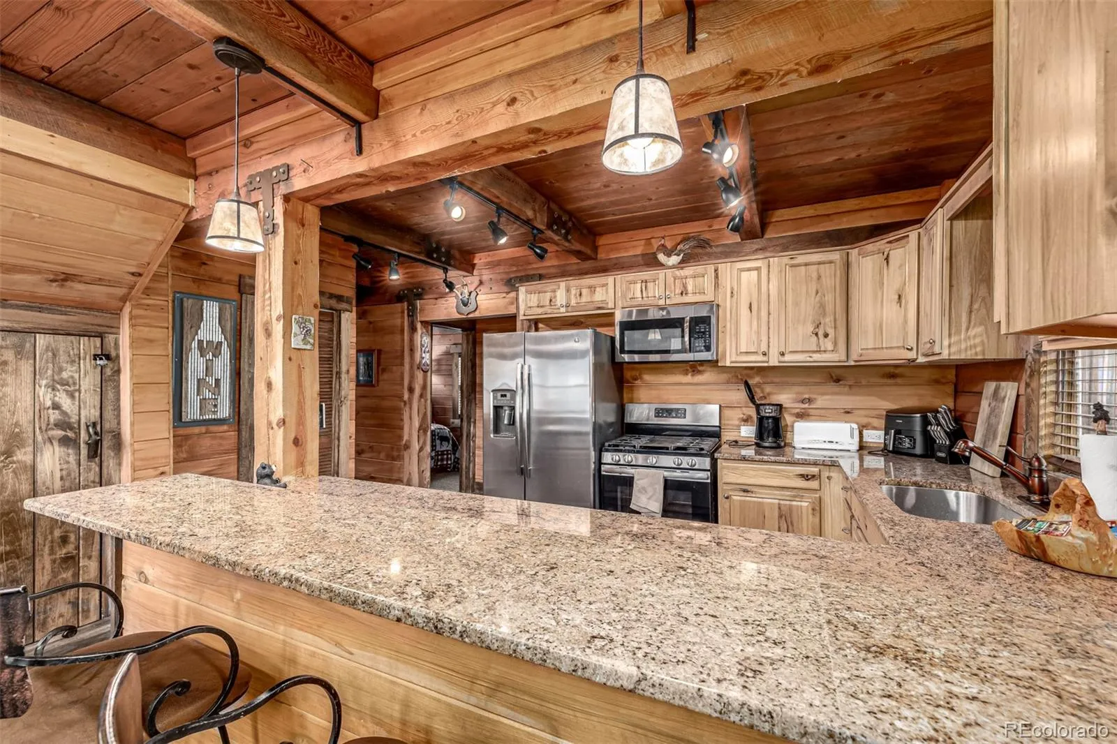 This is the getaway you’ve been looking for! 116 Dakota Path is nestled among the forest in Eleven Mile Village, a quiet and secluded community just seconds from Eleven Mile State Park & Reservoir. This mountain home welcomes you with its expansive front deck that is the perfect place for your morning cup of coffee while you take in the sounds of the forest. That peacefulness is only matched by the unbelievable star gazing the deck provides at night. Enter the double doors to the great room with vaulted ceilings and 6 large windows that allow natural light to pour in. The wood burning stove stands on a raised stone platform and offers a fantastic and relaxing way to heat the home thoroughly. Off the great room, the open kitchen with connected bar top allows everyone to gather. Stainless steel appliances, a deep basin sink, and ample granite counter space make it ideal for a quick breakfast before heading down to the lake or a gourmet dinner party, perhaps featuring your days catch. The two bedrooms on the main floor allow guests their own private spaces to unwind. The two rooms are just off the full bathroom on the main floor, separated so that guests can also access. Finally, head up the stairs to an eave that overlooks the great room and enter the two French doors to the primary bedroom. With plenty of space to decompress and its own half bathroom, this room feels like a retreat within your retreat. This property sits among the best Colorado has to offer, with world class fishing, boating, hiking and endless exploration, right at your doorstep.