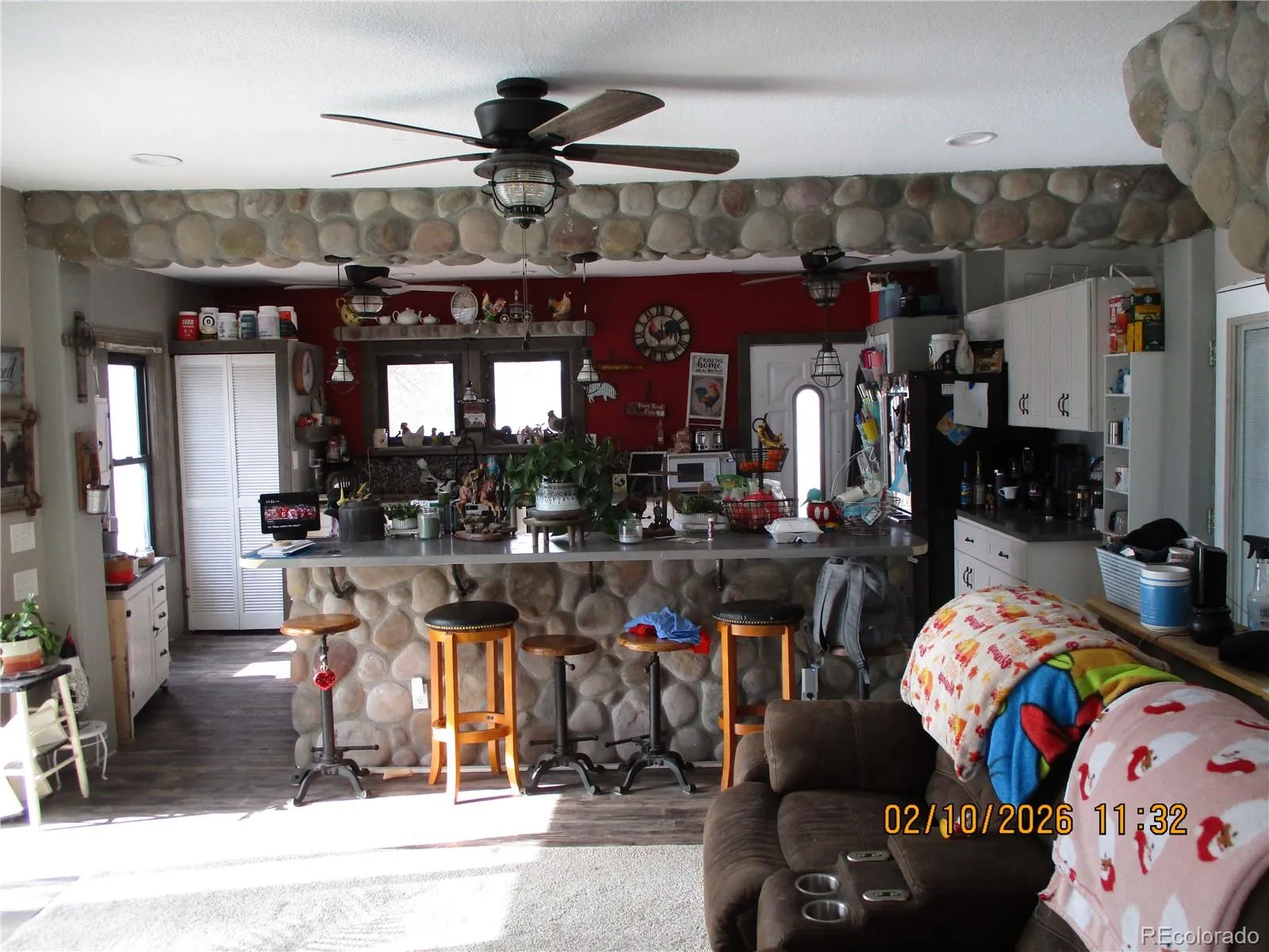 This 3-bedroom, 2.5-bath home in Limon offers an open kitchen/living area with island and stainless appliances, a large backyard with covered patio, and a utility room on the main level. The unfinished basement includes new electrical, stud walls, a second laundry room, and is ready for drywall and flooring. Other updates include a new furnace and A/C. The garage has a workshop, and the backyard features a pond, garden, and partial fencing. The owner offers a $25,000 concession to complete remodeling.
