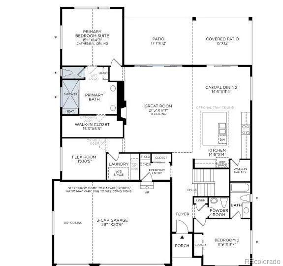 The Talbott epitomizes luxury and comfort within its beautifully designed floor plan. An inviting foyer flows into the open-concept living area, seamlessly connecting the kitchen, casual dining area, and the great room, which extends to a covered patio ideal for outdoor entertaining and relaxing. The kitchen is well-appointed, boasting an oversized center island and a walk-in pantry. Secluded off the great room, the primary bedroom suite makes an immediate impression with a cathedral ceiling and elegant appointments like a large walk-in closet and an opulent private bath with dual sinks, a luxe shower with seat, and a private water closet. The secondary bedroom is located in the front of the home, offering a private bath and roomy closet. Additional features of the home include a versatile flex room, a convenient everyday entry, easily accessible laundry, a powder room, and plenty of storage.