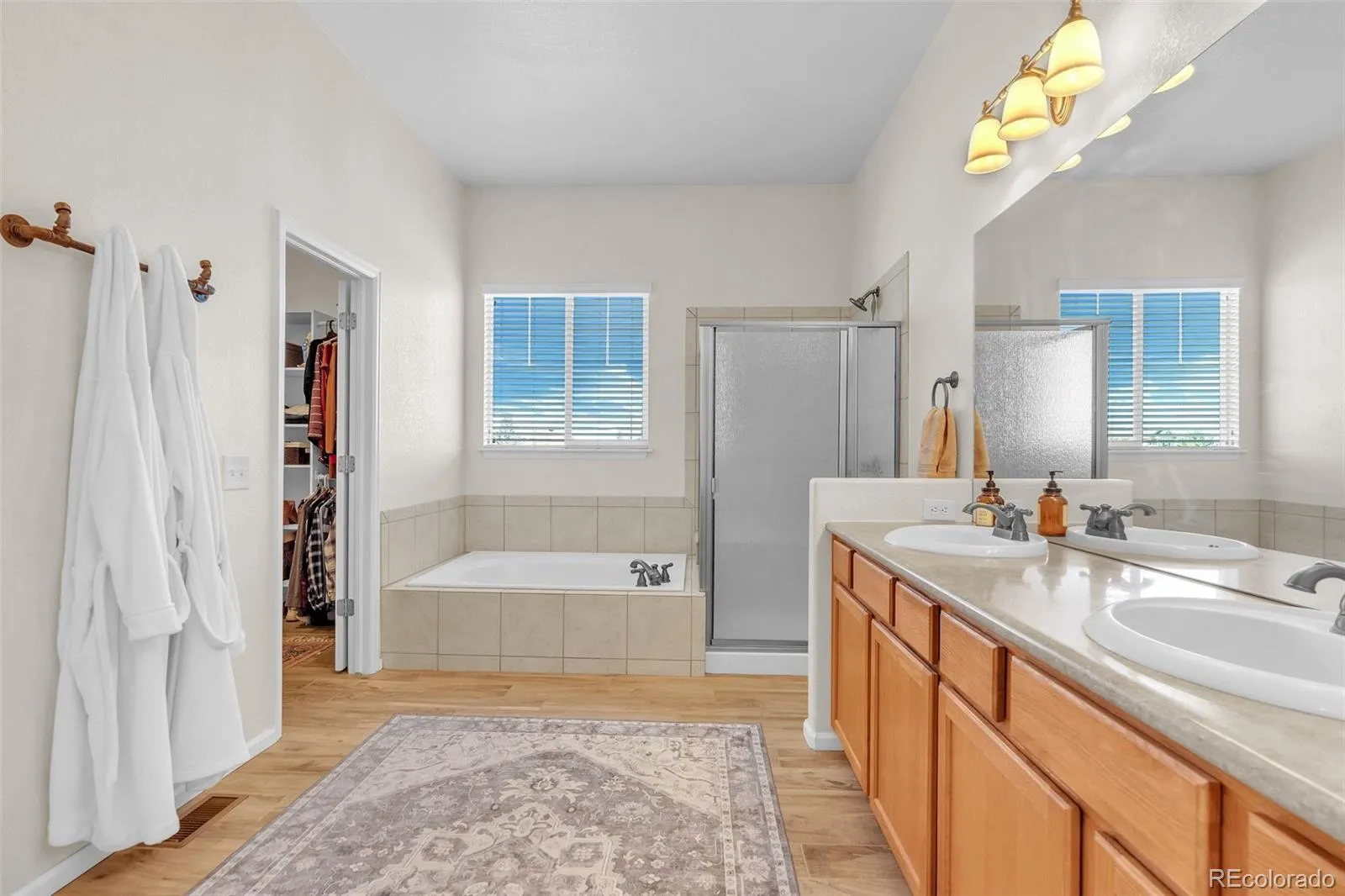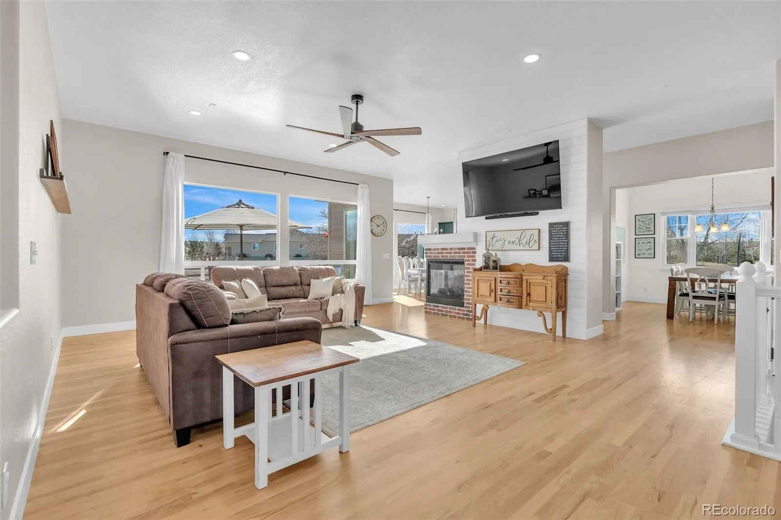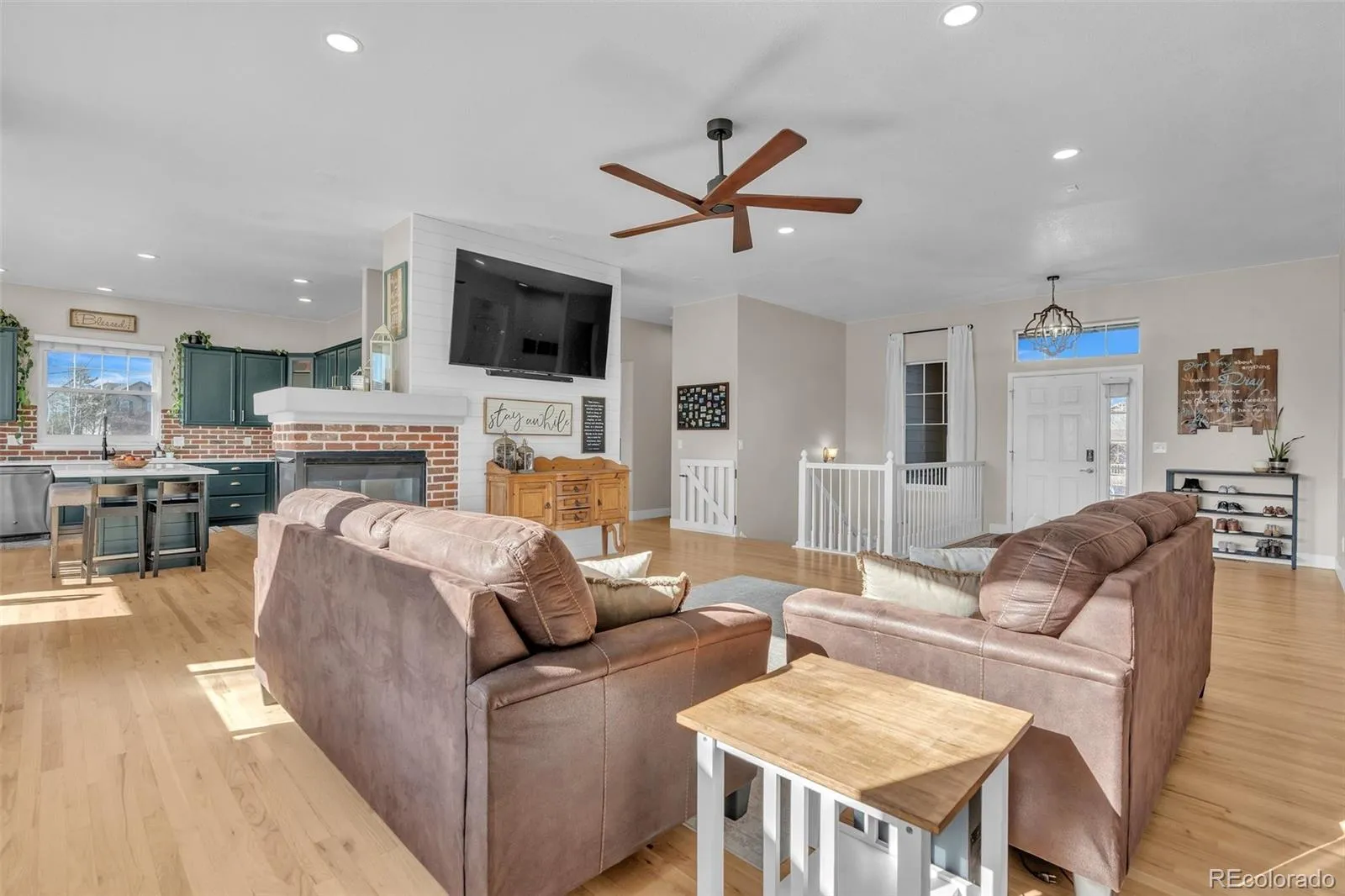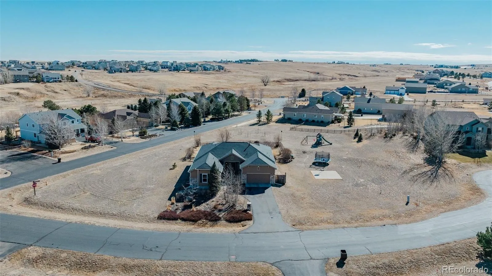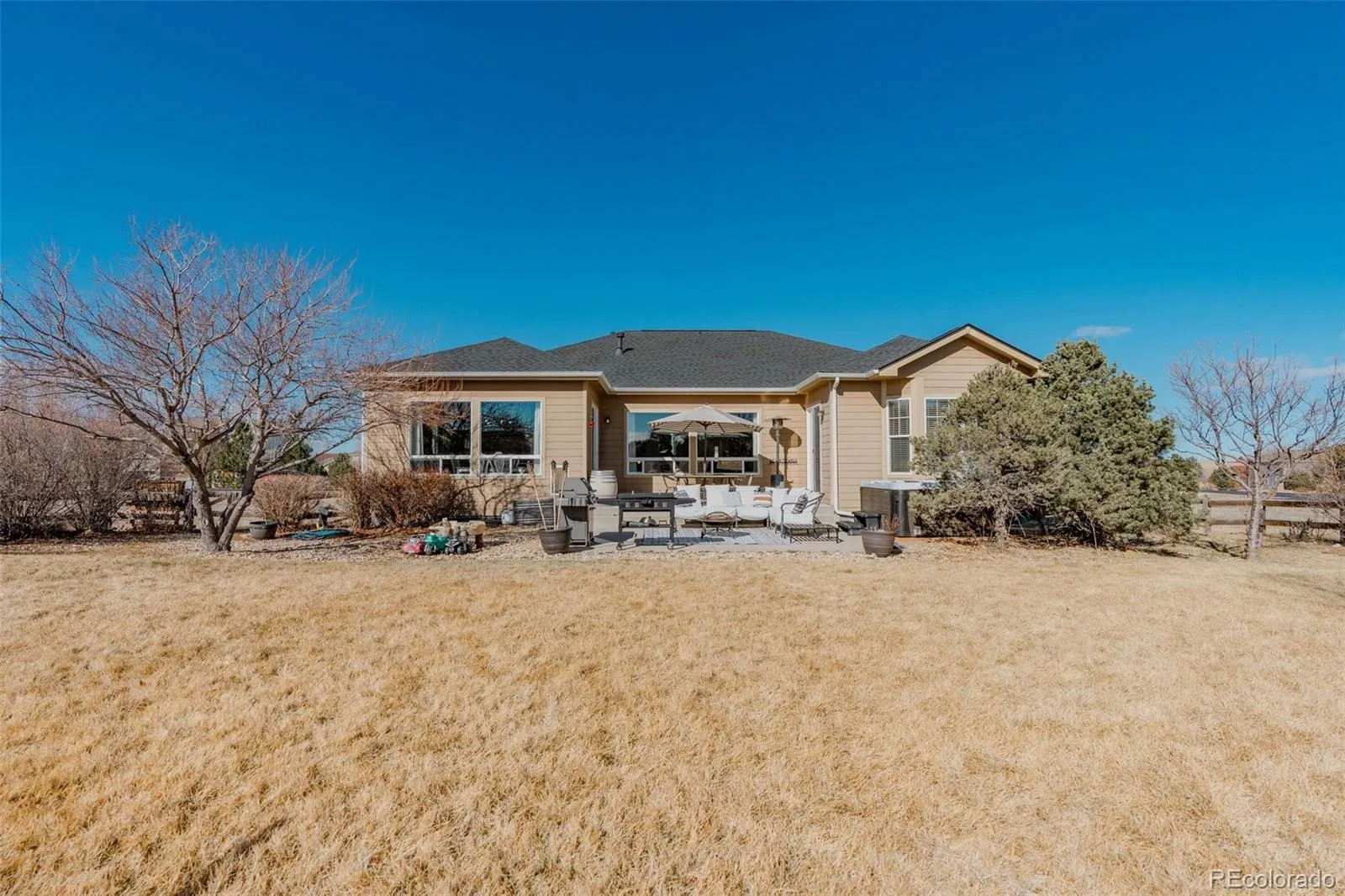 Gorgeous rancher on 1.5 ACRES in the golf community of Spring Valley Ranch! Welcome home to a large home with stunning updates and room to roam on one of the largest corner lots in the area, plenty of room to build that dream outbuilding if you are looking for more than 3 car attached storage. No dirt roads here, paved county roads and private driveway. Step inside to a terrific floor plan with gorgeous solid refinished oak hardwood floors, tons of natural light from dramatic windows, newer paint and carpeting and a dual sided fireplace. The gourmet custom kitchen is perfect for entertaining with lots of countertop and cupboard space and large breakfast nook (new quartz counters). The formal dining room can be anything even a main floor office, conveniently located off the kitchen but tucked in away from the activity of the house. The large primary suite and huge bathroom is cozy and quaint with wood grain real tile flooring and patio access. Two other bedrooms on the main level plus laundry room put everything you could need with no stairs. Full newly finished basement is the haven for privacy; tall ceilings, big rooms and home theatre concept for the family room is where you’ll spend your evenings. You’ll love the modern bathroom and basement finishes! There is nothing left to do in this one except move in; Newer Roof, Newer Furnace, Newer Paint, New 75 Gallon Hot Water Heater and so much more. Step outside for space and privacy, fenced back yard, mature landscaping and equipped for kiddos with a swing set and basketball court. This home is a great location just minutes from the country club and golf course, an easy drive from Parker or the town of Elizabeth. So much to love here, Seller must relocate so their loss is your gain. A real MUST SEE in a safe and quiet neighborhood where everyone enjoys the country living without being too far from modern amenities!