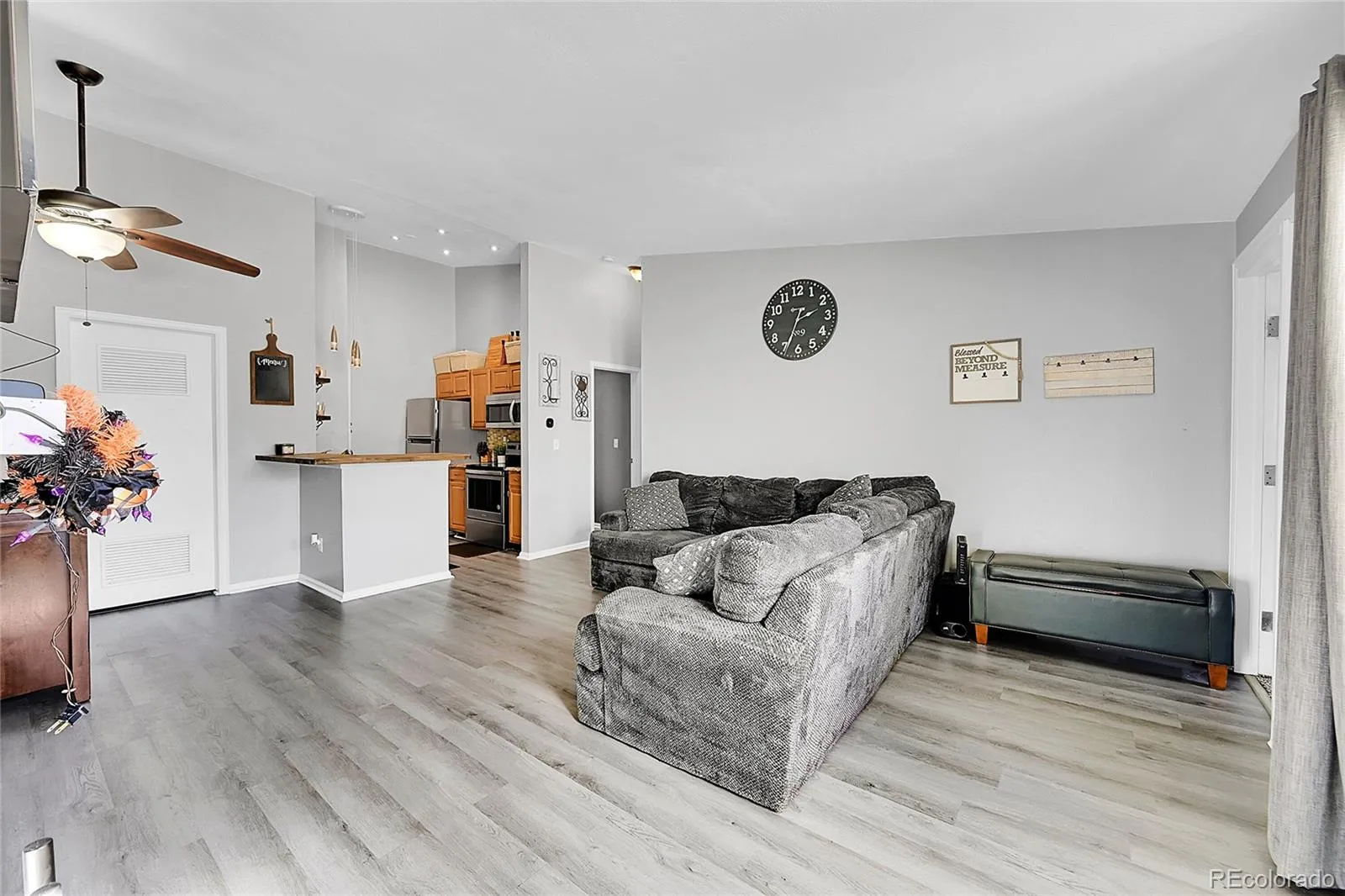 Welcome home to this favored penthouse unit at The Advantage at Stony Creek! This beautifully maintained 2-bedroom, 1-bathroom condo shines with thoughtful updates and a wonderfully open feel throughout. The vaulted ceilings make the space feel large, bright, and airy, creating a warm and inviting atmosphere from the moment you walk in. Enjoy a light-filled, open layout with new vinyl flooring, fresh paint, and smart storage solutions. The kitchen features new countertops and butcher block bar, stylish backsplash, added shelving, and stainless steel appliances. The spacious primary bedroom includes a great walk-in closet/dressing area, while the updated full bath offers new double sinks, countertop, and toilet. Step outside to your private balcony with a storage closet and take in the beautiful Colorado mountain views, the perfect spot for morning coffee or evening sunsets. Additional highlights include in-unit laundry with shelving, custom entry storage, and a new water heater. Set within a peaceful, quiet community, you’ll love the relaxing atmosphere and friendly neighborhood vibe that make this home feel like a retreat from the everyday. Enjoy an unbeatable location near C-470, Wadsworth, Santa Fe, Chatfield State Park, and Downtown Littleton; close to scenic trails, shopping, and dining. This penthouse condo truly combines comfort, convenience, and charm in one perfect package! *Assumable FHA loan at 3.25% – please contact listing agent for more details*