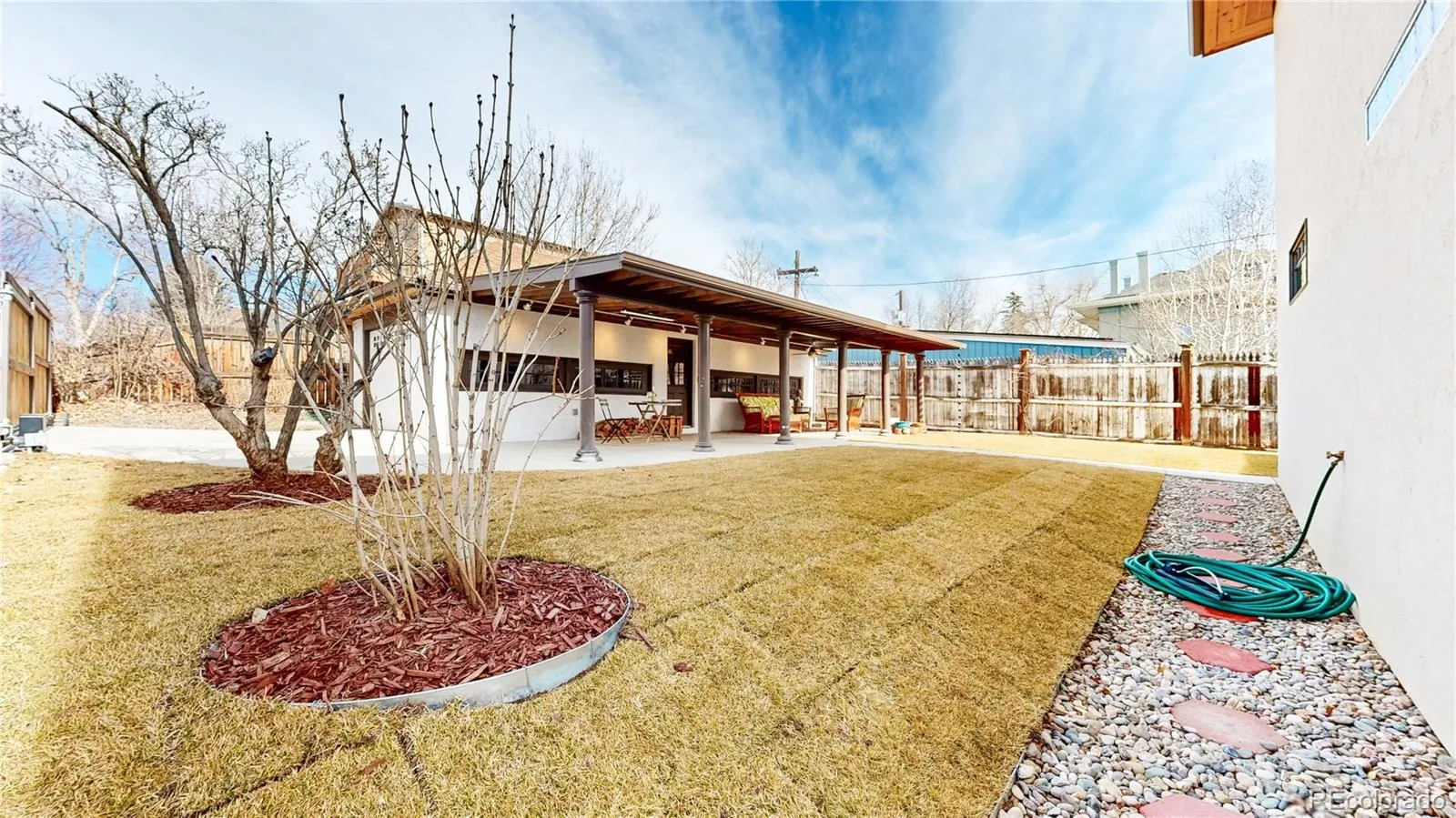 Outdoor living is a true highlight. A welcoming front porch, expansive patios, and a spacious, fully fenced yard create multiple settings for relaxing or entertaining. The two car detached garage provides the ultimate convenience with access via an automatic gate and electric wiring for workshop, studio or EV use.
