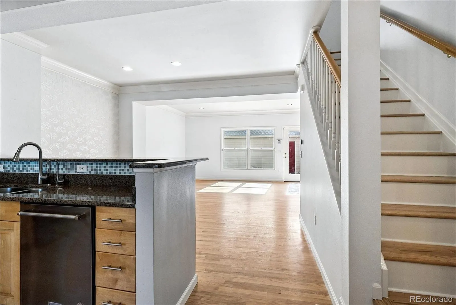 Spectacular location directly across from Mayfair Park! This charming two-story townhome welcomes you with an open floor plan ideal for relaxed, everyday living. Natural light flows throughout the home, creating a warm and inviting atmosphere. The spacious kitchen features stainless steel appliances, granite countertops and maple cabinets – perfect for home cooked meals and gathering with friends. Upstairs, unwind in the generous primary suite complete with a double vanity, large shower, and walk-in closet. The second bedroom also offers its own private en-suite – ideal for guests or a home office. The partially finished basement provides a cozy finished bonus area, while the separate storage space offers room to expand with an egress window and stubbed out plumbing – easily converted into a conforming 3rd bedroom or additional living space. Enjoy outdoor living on the private back patio and the convenience of a two-car detached garage. Featuring hardwood floors, central a/c, fresh interior paint, new carpet in the basement.