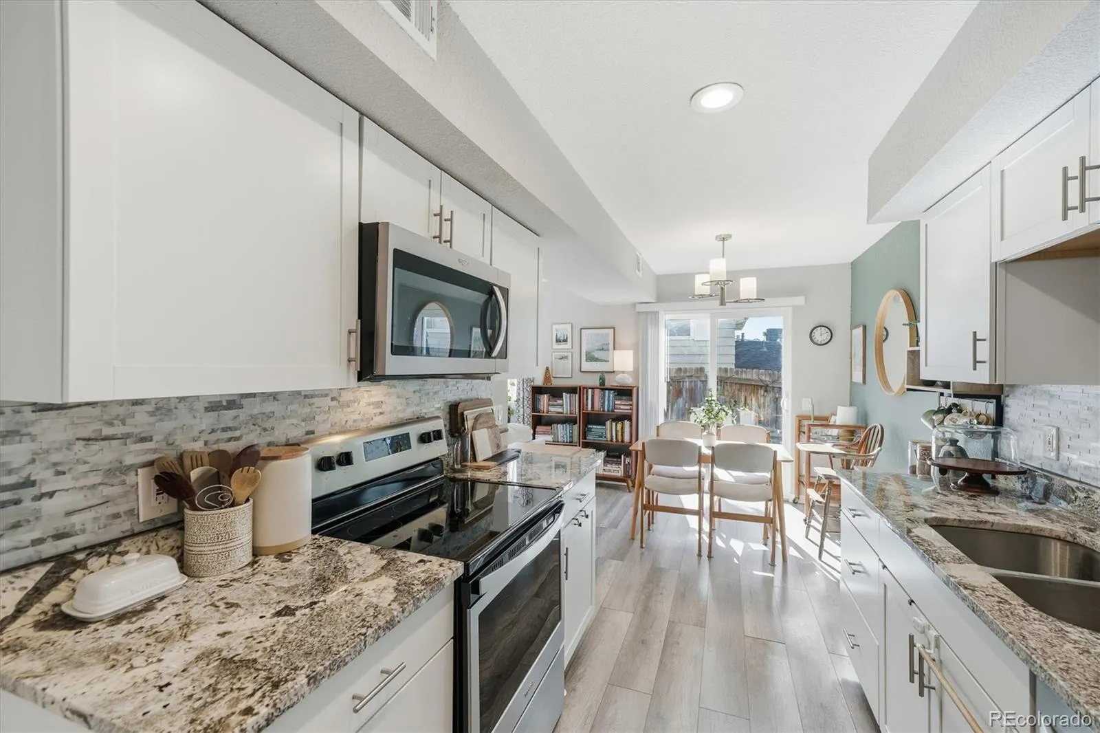 Welcome to this beautifully updated two-bedroom, two-bath condo offering stylish finishes and functional living across two levels. The main floor features durable luxury vinyl plank flooring, a thoughtfully updated kitchen with granite countertops, a spacious pantry, and a dedicated dining area—perfect for everyday living and entertaining. A convenient half bath and main-floor laundry add to the home’s practicality. Upstairs, you’ll find a generous primary bedroom with a large walk-in closet, a bright secondary bedroom filled with natural light, and a full bathroom along with a large hall closet perfect for linen storage. Brand new hot water heater so you can check that off your list! This home also includes access to a shared attached garage (serving four units total) and a private storage locker for added convenience. The HOA includes exterior maintenance including the roof, water and trash, snow removal and landscape maintenance as well as access to the community clubhouse! The clubhouse is a perfect spot to enjoy a summer day by the pool, and features a rentable space for parties, a gym, pool tables, tennis courts and so much more! This property is move-in ready and thoughtfully updated— low-maintenance living at its best! This home offers unbeatable convenience with quick access to I-25, E-470, and major commuter routes—making travel to Denver, Boulder, or DIA a breeze. You’re just minutes from shopping, dining, parks, and everyday essentials, while still enjoying a quiet residential setting. Whether you’re commuting for work or heading out for weekend fun, this location truly puts you close to it all!