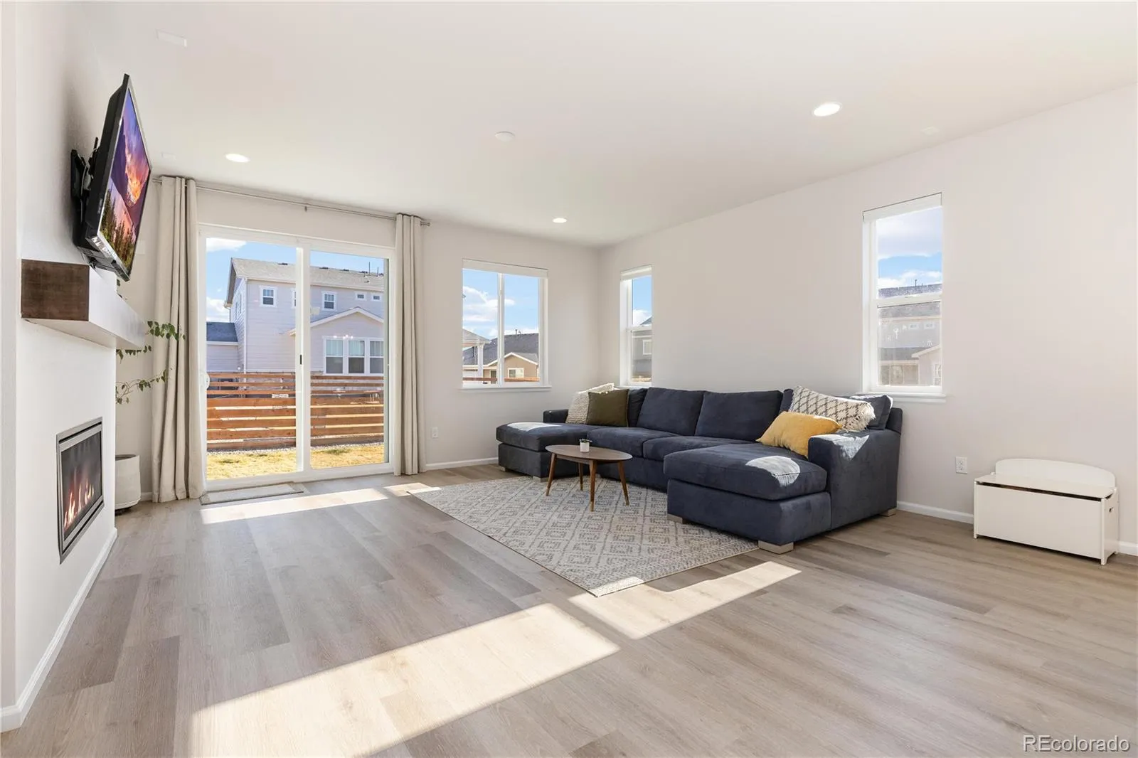 Outside, enjoy a fully fenced yard with a sunny patio, landscaping, and plenty of lawn space to relax or play. Located in an exciting new community featuring modern homes, open park spaces, playgrounds, and miles of trails for walking or cycling, Aurora Highlands offers a peaceful setting with easy access to everyday conveniences. Community parks host events that bring neighbors together, and Denver International Airport is just 15 minutes away—making this home as convenient as it is inviting.