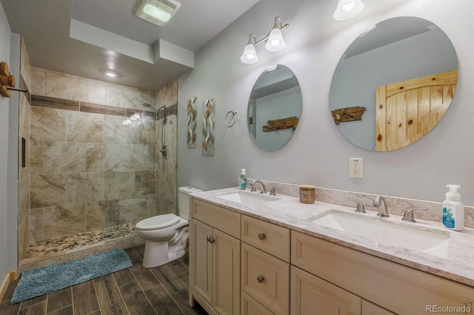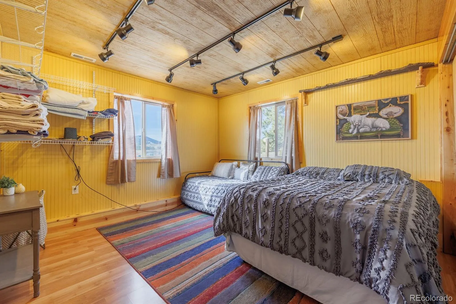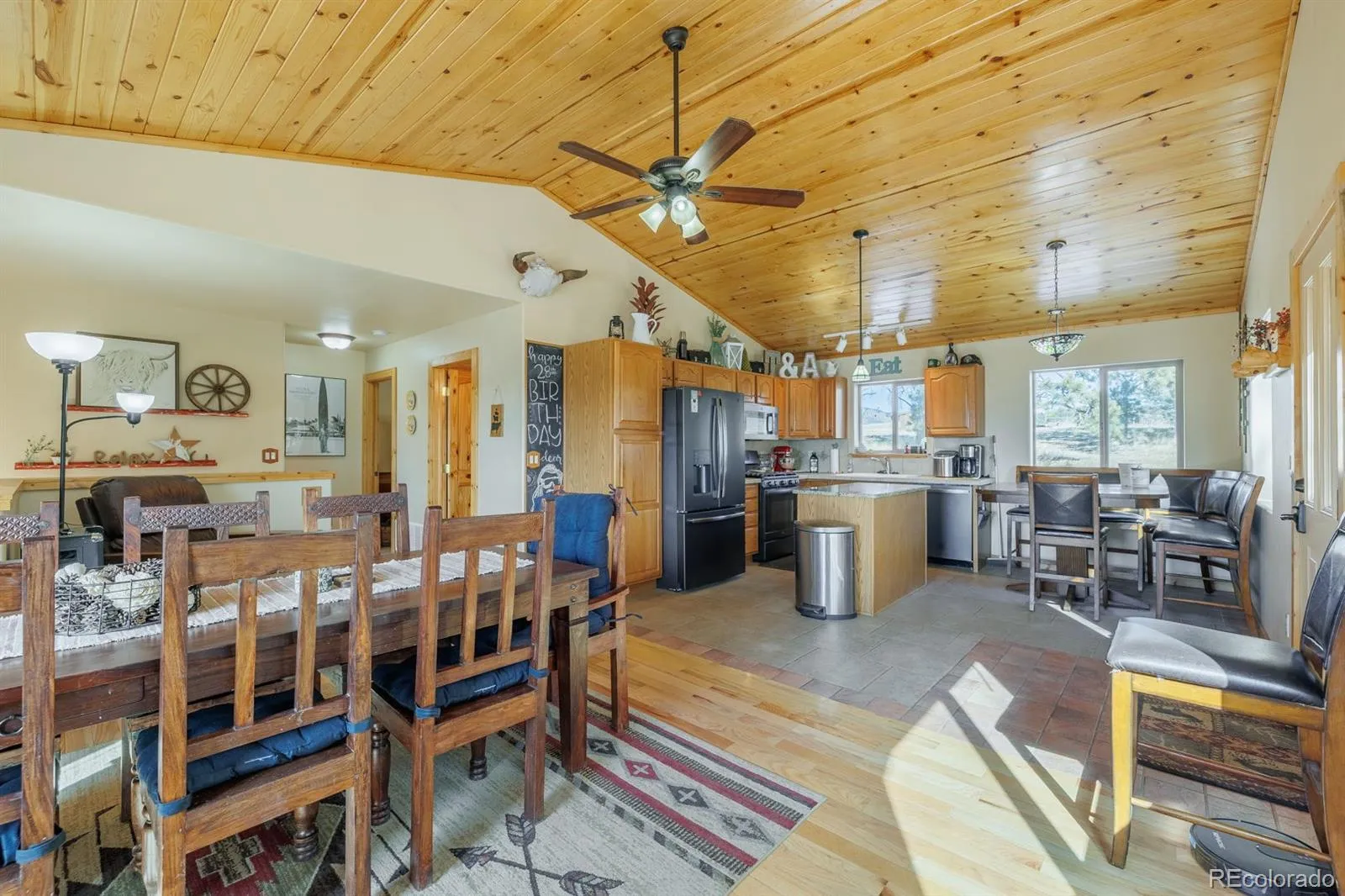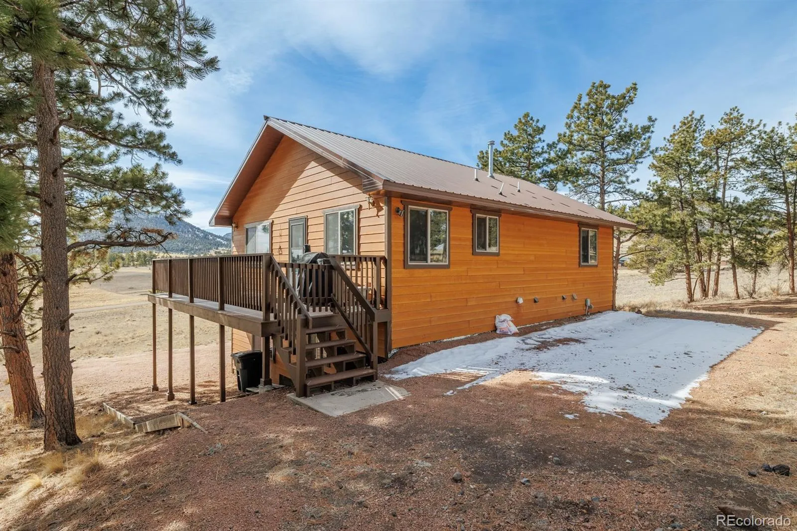 Nestled in the heart of the Mountains of Colorado, this well-built stick-frame home blends mountain charm with everyday comfort. Warm wood floors and beautiful tongue-and-groove ceilings create an inviting Colorado feel, while the open floorplan allows for easy flow between living spaces — perfect for both relaxing and entertaining. The spacious kitchen is designed to impress, featuring newer stainless steel appliances, a gas stove, granite countertops, and a large island ideal for gathering. Whether hosting friends or enjoying a quiet meal at home, this kitchen offers both style and functionality. The generous primary bedroom provides a peaceful retreat and connects conveniently to the main-level bathroom. The bathroom includes double vanities and a custom walk-in shower for added comfort and convenience. A cozy main-level living room — currently set up as a dining room — is anchored by a freestanding wood stove, creating the perfect atmosphere for cool Colorado evenings. Step outside to take in wonderful mountain views, including stunning sights of Pikes Peak. Situated on over 7 acres consisting of two separate lots, the property offers privacy, space, and flexibility for future possibilities. And to top it all off, there is a 3-stall horse barn on the property already to go. Well maintained and in great condition, this property offers quality construction, scenic views, and room to roam in a beautiful mountain setting.