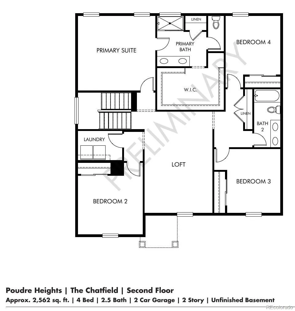 The Chatfield is a spacious two-story home featuring a versatile flex space, open-concept kitchen and great room, and four bedrooms including a serene primary suite. With 2.5 baths and a two-bay garage, this design blends style and functionality for modern living.