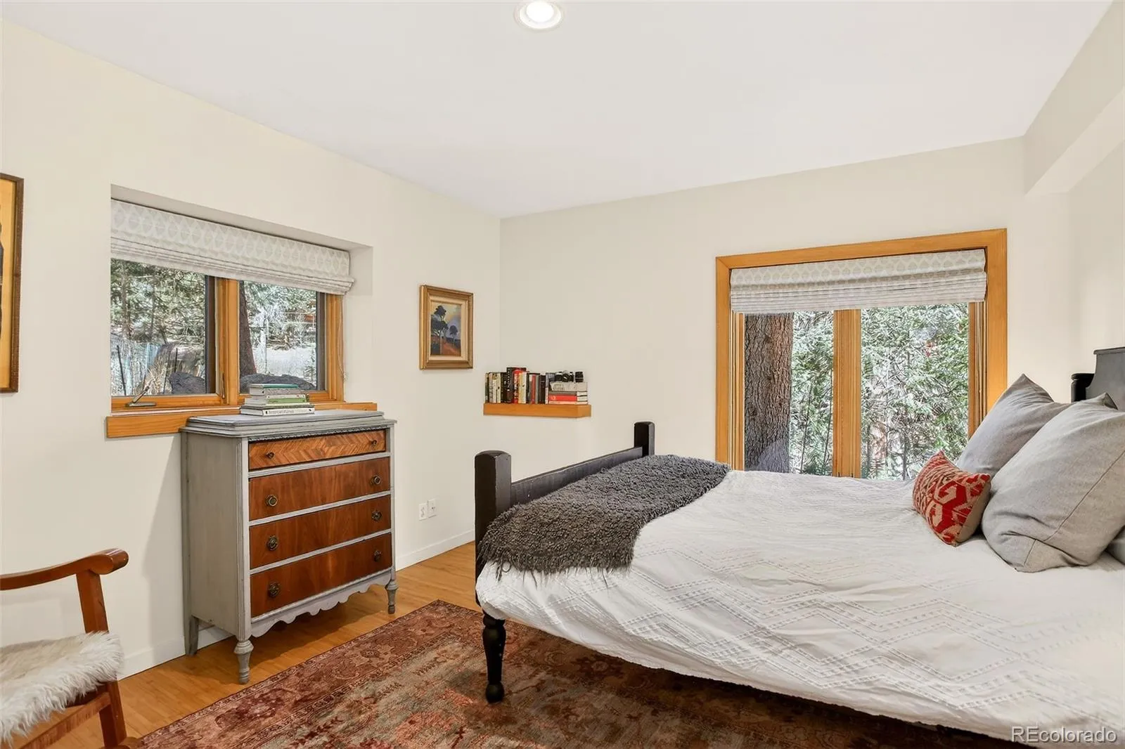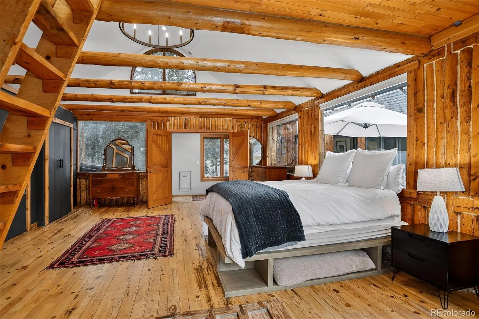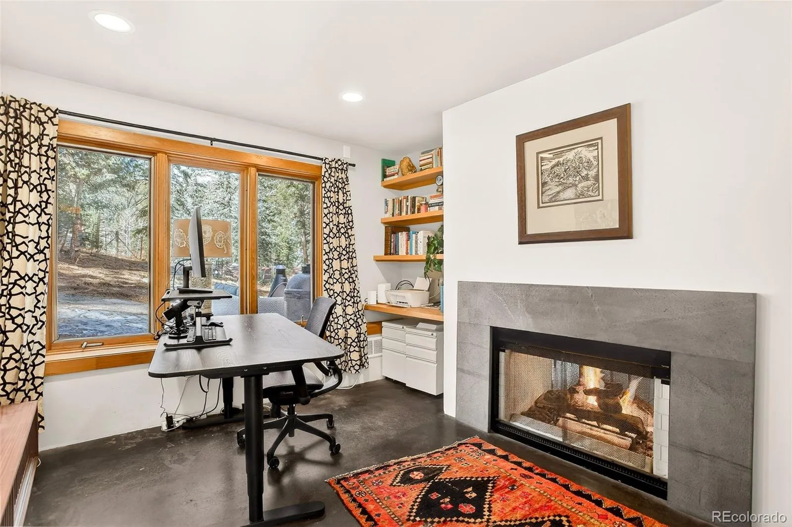 Mountain living meets modern luxury in this truly one of a kind creekside retreat. Listen to the soothing sounds of Turkey Creek and enjoy breathtaking views from every room. From the minute you pull up to this home, you will fall in love. Designed for both comfort and entertaining, the open-concept floor plan is filled with natural light. The chef’s kitchen is a showpiece, featuring a commercial grade double-oven range, stainless steel appliances, an abundance of cabinets, and stunning soapstone countertops. The living room is impressive with vaulted ceilings, a cozy fireplace and a new Pella sliding glass door that opens to a spacious new deck with a built-in outdoor dining space, private, peaceful, and perfect for enjoying Colorado’s outdoor lifestyle. You will love the year round creek location, the sound is so relaxing. Bedrooms are thoughtfully placed on every level, offering privacy and flexibility for family and guests. The upper-level primary suite is a spa-like sanctuary with a loft, private deck, and tranquil ambiance. The primary suite was part of the original cabin before this property underwent a complete renovation. This space blends historic charm with a complete modern transformation. Work from home buyers will appreciate the dedicated office space, plus a versatile bonus area currently used as a family room, ideal as a second office, yoga studio, or fitness room. Renovated bathrooms also feature soapstone countertops, and polished concrete floors with radiant heat, adding warmth and character. Pet friendly features include an invisible fence and a three panel dog door, allowing convenient indoor-outdoor access while keeping pets safely on the property. This property is special. The views from every room are unbelievable. Serene and beautiful, the perfect retreat and just 10 minutes to Downtown Evergreen and close to Denver for the buyer who needs to commute for work. Don’t miss seeing this one of a kind property.