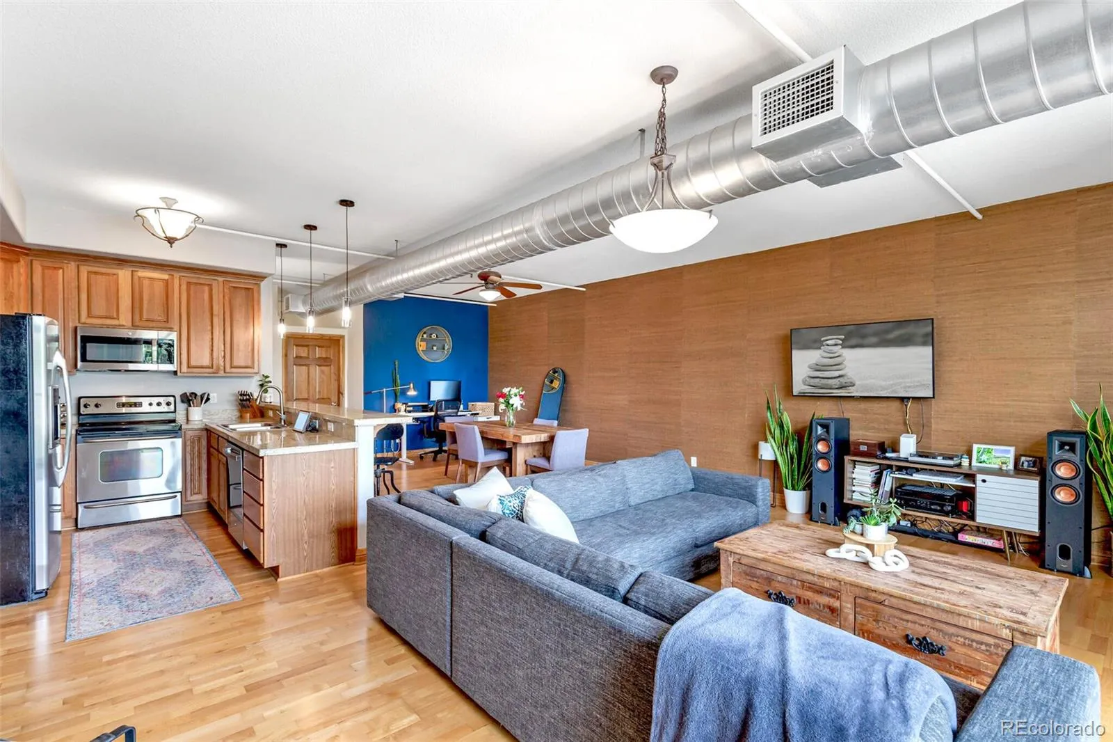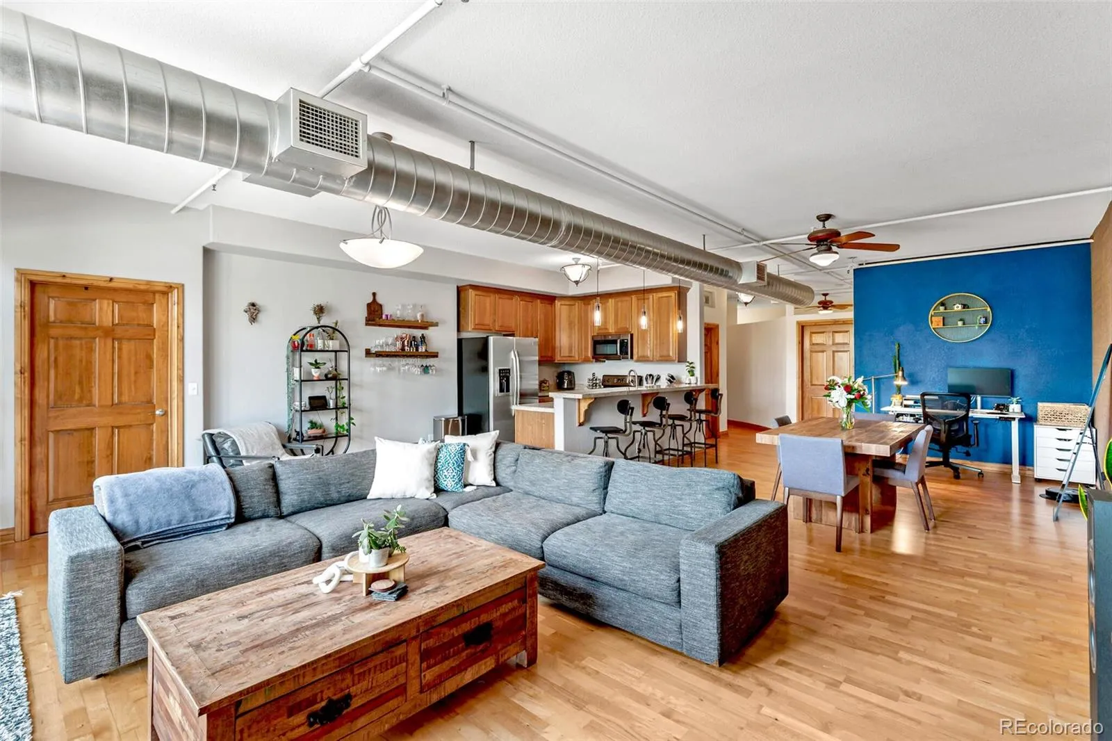 NEW PRICE + $2,000 SELLER CREDIT FOR PAINT OR CLOSING COSTS ~ USE AS YOU CHOOSE! Capture the best value and space in the heart of Highlands Square in this sunny loft-style contemporary condo! Step inside and immerse yourself in the modern industrial loft vibes, accented by high ceilings, wood floors, and exposed ductwork. The sweeping great room entertains with ease and lives beautifully with an open concept layout that connects the kitchen, dining, and living areas. Huge windows deliver treetop views of the Highlands and incredible natural light that fills the space. The great room offers a massive space where you can lounge, entertain, and dine, with room to spare for your work-from-home office area and a wall of glass that opens to invite in fresh air. The efficient kitchen features granite counters, ample cabinet and counter space, and a breakfast bar with seating for casual day-to-day dining. In-unit laundry is a huge bonus, and the laundry room is equipped with incredible extra storage that feels like a walk-in pantry, PLUS plenty of space for all your gear and goods. Your king-sized bedroom features a nicely appointed walk-in closet, built to accommodate the wardrobe of any outdoorsman or fashionista! If that wasn’t enough, the entryway offers a nicely sized coat closet, too! Additional private storage space and owned parking in the attached secure underground garage add to the convenience. Step outside to the best of Highlands Square — yoga, breweries, coffee, dining, shopping, and community events like the Highlands Farmer’s Market are all just seconds away. Location is unmatched! Easy access to downtown Denver and onto the highways for your work commute or to the foothills is a breeze from this superstar location. Make this one yours today!