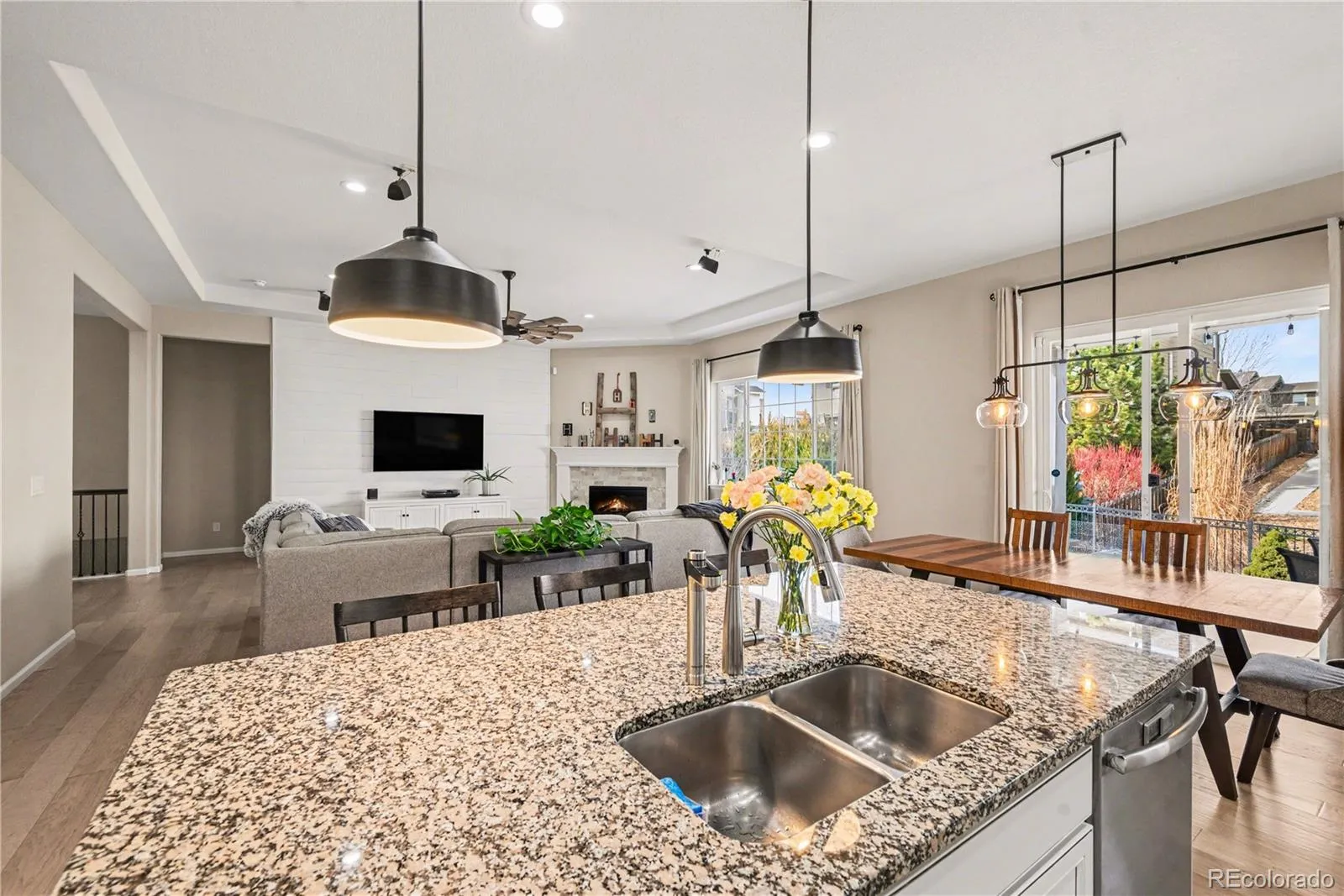 A rare opportunity to call this meticulously maintained model quality ranch style home…yours! Perfectly perched on one of the most beautiful and professionally maintained lots in Southshore, this spectacular home is loaded with fine features and quality upgrades. You will love the elegant courtyard style entry with a split 3 car garage with stunning stone and stucco elevation. Upon entry you will immediately be immersed in true elegance and peaceful tranquility with soaring 9″ ceilings, dramatic architecture, and a true open floor plan. The gourmet kitchen is a Chef’s dream with a perfect combination of Granite counters, stainless steel appliances, quality cabinetry, custom tile backsplash, gas cooktop, upgraded lighting, walk-in pantry, extended wide plank laminate wood floors, and more – Spectacular! The spacious family room has a stunning coffered ceiling, shiplap wood entertainment wall, cozy corner gas fireplace, recessed lighting, statement sized ceiling fan, and is flooded with natural light. The main floor living area is complete with an inviting entry, guest bathroom and private office. The luxurious and relaxful primary suite features a custom barn door leading to the spa-like en suite. Here you will find a double vanity with Granite top, walk-in shower, large soaking tub, and more! This amazing and spacious floor plan offers two additional large bedrooms and a full bathroom. The full unfinished basement is perfect for storage or bringing your finishing ideas to life. Summer is coming and the extended and fully covered patio is ready for entertaining or simply relaxing and enjoying the beautifully landscaped and fully fenced yard. Southshore is one of Aurora, Colorado’s most premiere neighborhoods. Enjoy world class resort quality community amenities including two swimming pools, walking distance to award winning Cherry Creek Schools, swim, fish, boat or recreate at scenic Aurora Reservoir, or shop till your drop at the Southlands Marketplace.