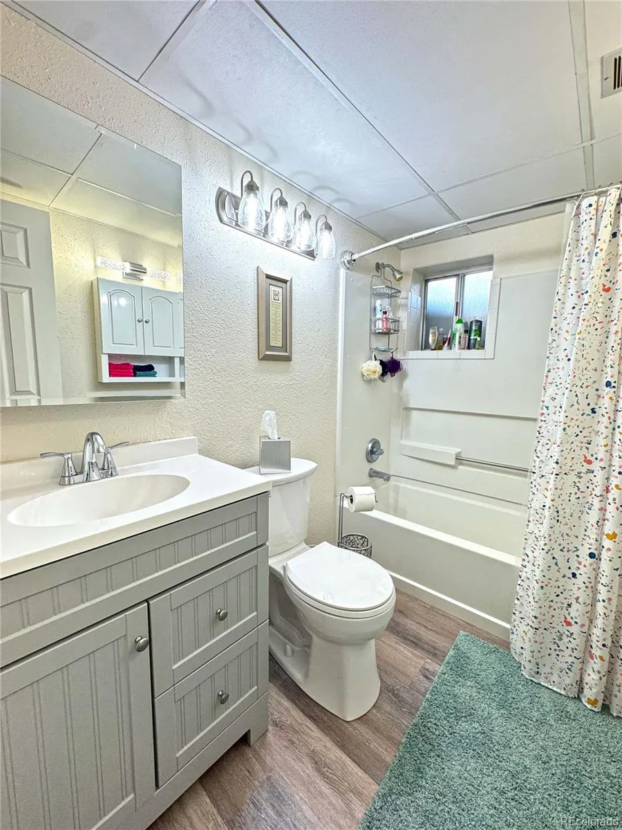 Beautifully updated ranch-style home with a fully finished basement offering space, comfort, and exceptional storage throughout. The main level features a large living room with vaulted ceilings and a cozy gas fireplace, creating an inviting central gathering space. The spacious kitchen is equipped with solid cherry wood cabinetry and an abundance of counterspace. The centralized office and a formal dining area are ideal for both everyday living and entertaining. The primary suite is conveniently located on the main floor and features a large walk in closet and a beautifully updated en-suite bath featuring a stunning tiled shower designed for both comfort and relaxation. One additional bedroom and the half bath is also on the Main floor. Downstairs, the finished basement provides even more living space with a large family room, two spacious bedrooms, a full bath, and a laundry room complete with a convenient laundry chute. Exterior features include durable vinyl siding accented with stone, a large covered patio perfect for outdoor relaxation, and a beautifully maintained backyard with lush lawn, timed sprinkler system, privacy fencing, and a storage shed. This well-maintained home offers abundant storage, functional living space on both levels, and thoughtful upgrades throughout.