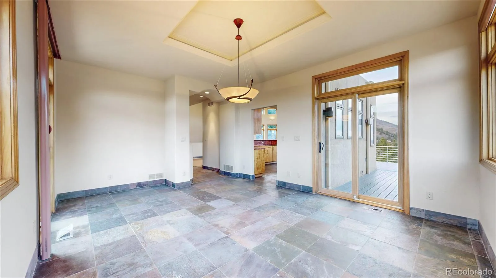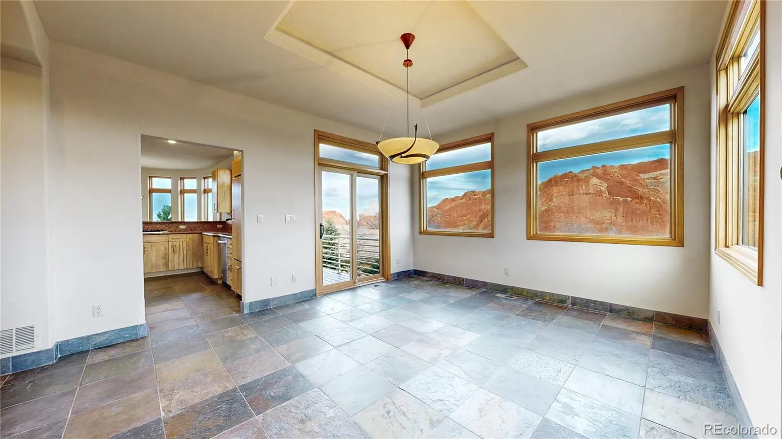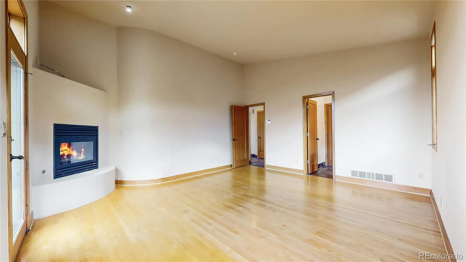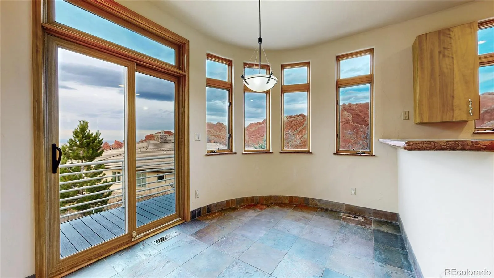 Views, views, views! Sweeping vistas of the city skyline, dramatic red rock formations, rolling foothills, and endless Colorado skies. From the moment you enter, your eye is drawn to the stunning great room featuring a curved wall of windows that perfectly frames the panoramic backdrop. Gleaming hardwood floors, soaring volume ceilings, a gas fireplace, and an open-concept layout create a light-filled and inviting living space.