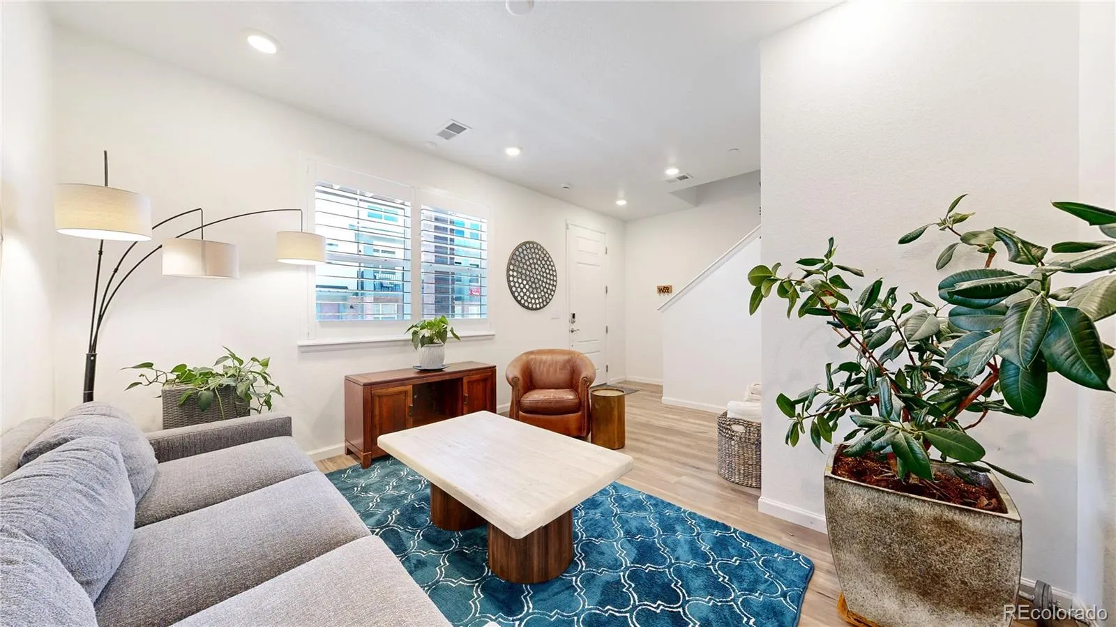 Townhome with many upgrades including new flooring/carpet and luxury vinyl plank, window coverings, and more. On the lower level you enter into a family/media room with luxury vinyl plank flooring. The high traffic carpet on the stairs doesn’t show wear. The main level is wide open with an eat in kitchen with a breakfast bar, oversize island, quartz counters, and stainless appliances. The comfortable living space accommodates a sectional, large TV set, along with plenty of room for all of your house plants. There is a private balcony perfect for your gas grill. Up to the bedroom level, there is a primary suite with a bathroom and a walk in closet. The 2 additional bedroom share a full hall bathroom. This home shows like new, but you don’t have to buy window coverings or change out the flooring. There is a 2 car attached garage, and this is one of the rare homes that has a fenced area in the front, just right for a dog run. It faces a greenbelt, another feature other properties are lacking.