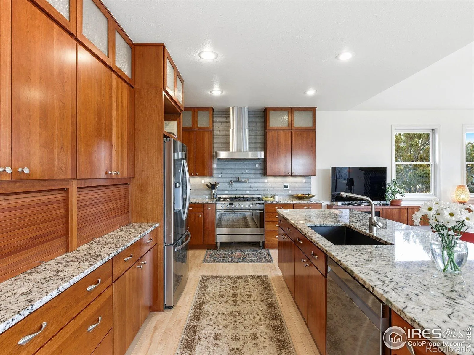 Experience the best of North Boulder living at 4796 6th Street! A light-filled contemporary retreat just moments from trails, parks, & local favorites. Soaring ceilings & a thoughtfully designed open floor plan create effortless flow. Fresh interior/exterior paint, newly refinished Maple hardwood floors, designer lighting & curated updates deliver a crisp, modern aesthetic. Expansive walls of windows flood the home w/ natural light & frame iconic Flatiron & foothill views, seamlessly blending indoor & outdoor living. 3 private balconies, front & back patios & an oversized deck off the kitchen nook extend your living space outdoors, all set on a lush 1/4 acre lot surrounded by mature trees offering privacy. The Chefs kitchen anchors the main level, designed for gathering & everyday living. High-end stainless appliances, custom Cherry cabinets, granite counters & seamless connection to living & dining spaces make entertaining effortless. Upstairs, the Primary retreat captures sweeping Flatiron & foothill views from both bedroom & generously sized private balcony. A luxurious 5-piece bath w/ soaking tub, custom cabinetry & generous closet space elevate the suite. 2 add. spacious bedrooms w/ hardwood floors share a Jack-and-Jill bath; 1 offers its own private balcony. A convenient upper-level laundry area serves this level. The finished daylight basement provides exceptional flexibility w/ private side entrance – ideal for guests, multi-generational living etc. Oversized garden-level windows, 2 bedrooms, full bath, expansive living area, kitchenette w/ sink, refrigerator drawers & cooktop, plus 2nd laundry room create a fully functional extension of the home. Backstage access to open space & miles of trails connect you directly to Boulder’s outdoor lifestyle. Minutes from Wonderland Lake, Foothills Park, Lucky’s Market, Dagabi, Bellota, Moxie Bread, North Boulder Arts District & short drive to Pearl Street. This is North Boulder living at its finest!