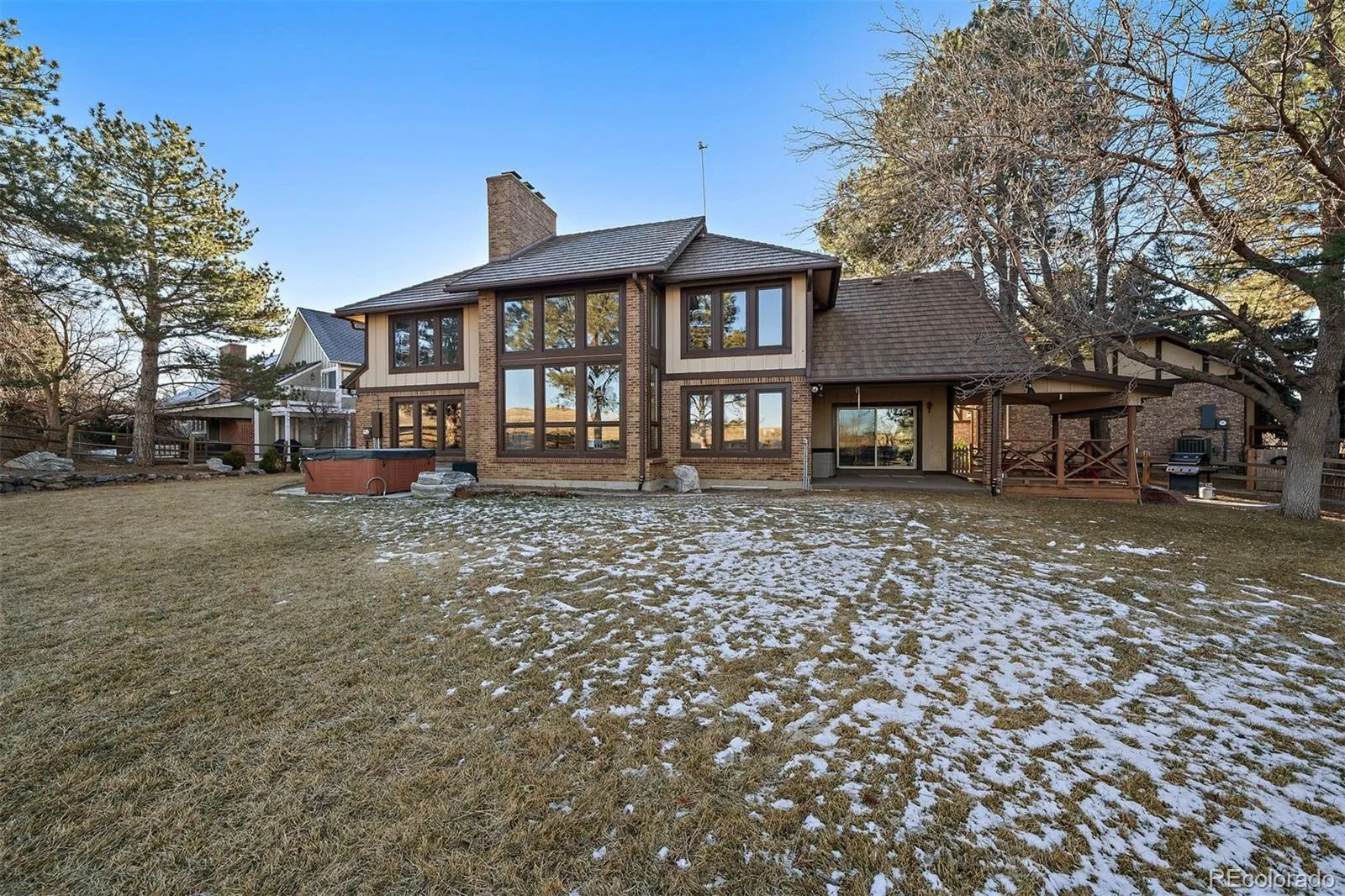 Welcome Home to Arapahoe Estates! Perched on a quiet cul-de-sac in a desirable neighborhood, this traditional two-story home is one you don’t want to miss! Pride of ownership shines throughout, it’s well-maintained & offers an opportunity to own a unique home that backs to open space. This classic 4BR/4BA home was beautifully updated, while maintaining its warmth, character, and charm. Upon entering the home, you will be captivated by soaring vaulted ceilings, expansive windows that showcase stunning mountain views, skylights, wood beams & beautiful brickwork. From the foyer, the formal living room draws you in with its sky-high ceilings, huge windows, wood-burning fireplace with floor to ceiling brickwork, and an open concept. Adjacent to the living room, is the main floor primary suite, which makes everyday living a breeze. Retreat to the primary bedroom with a cozy wood-burning fireplace, five-piece ensuite bathroom, skylights, stained glass windows, french doors, a big walk-in closet, views of the backyard & hot tub. The kitchen is the heart of the home and was tastefully remodeled with granite countertops, solid wood cabinets, soft close drawers, a large pantry with storage, coffee bar & modern stainless steel appliances. The kitchen seamlessly flows into two dining rooms, multiple spaces to gather around the table with your family. Upstairs are 3 large bedrooms, 2 full bathrooms and a loft. The unfinished basement is a blank canvas, with your finishing touches offers more space to entertain, live & work. Hang out in the private backyard, no neighbors behind you, just views of mountains & open space. Relax & unwind in the hot tub on the new back patio after a long day of work. Desirable South-facing driveway, melts snow quickly. Great school district, LPS: Lenski, Newton and Littleton. Ideally located, just 1/2 mile to Newton Middle School, 1 mile to The Streets of Southglenn, convenient access to DTC, Downtown Littleton, Goodson Rec Center, deKovend Park, etc.